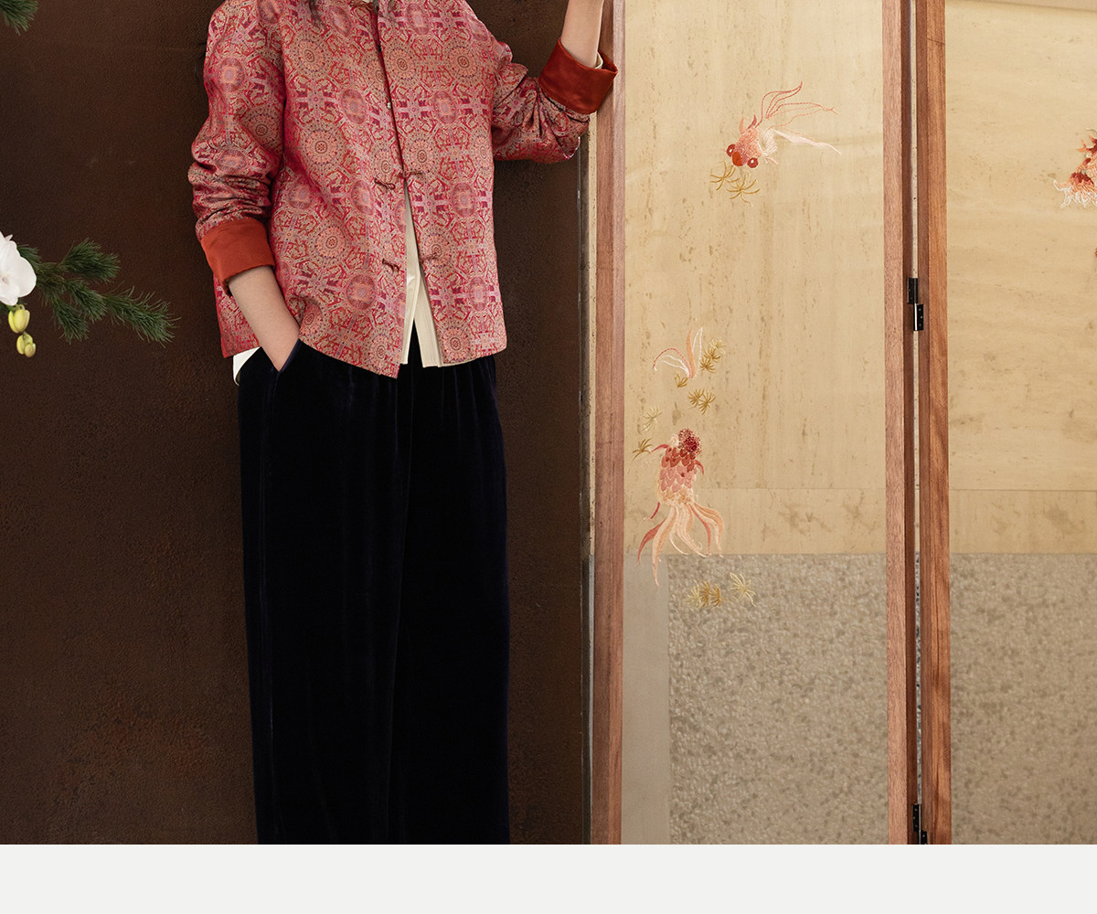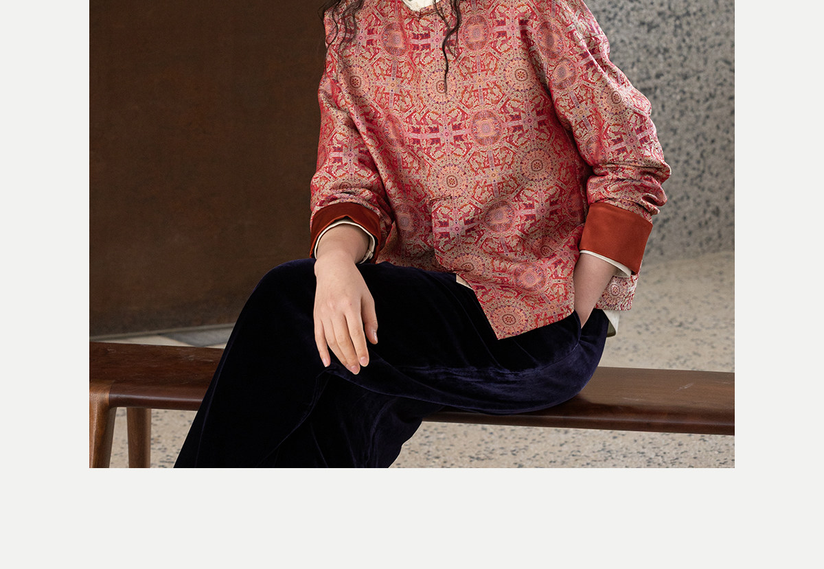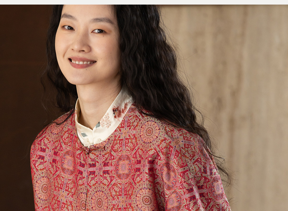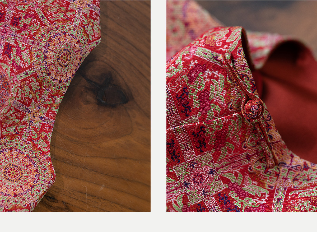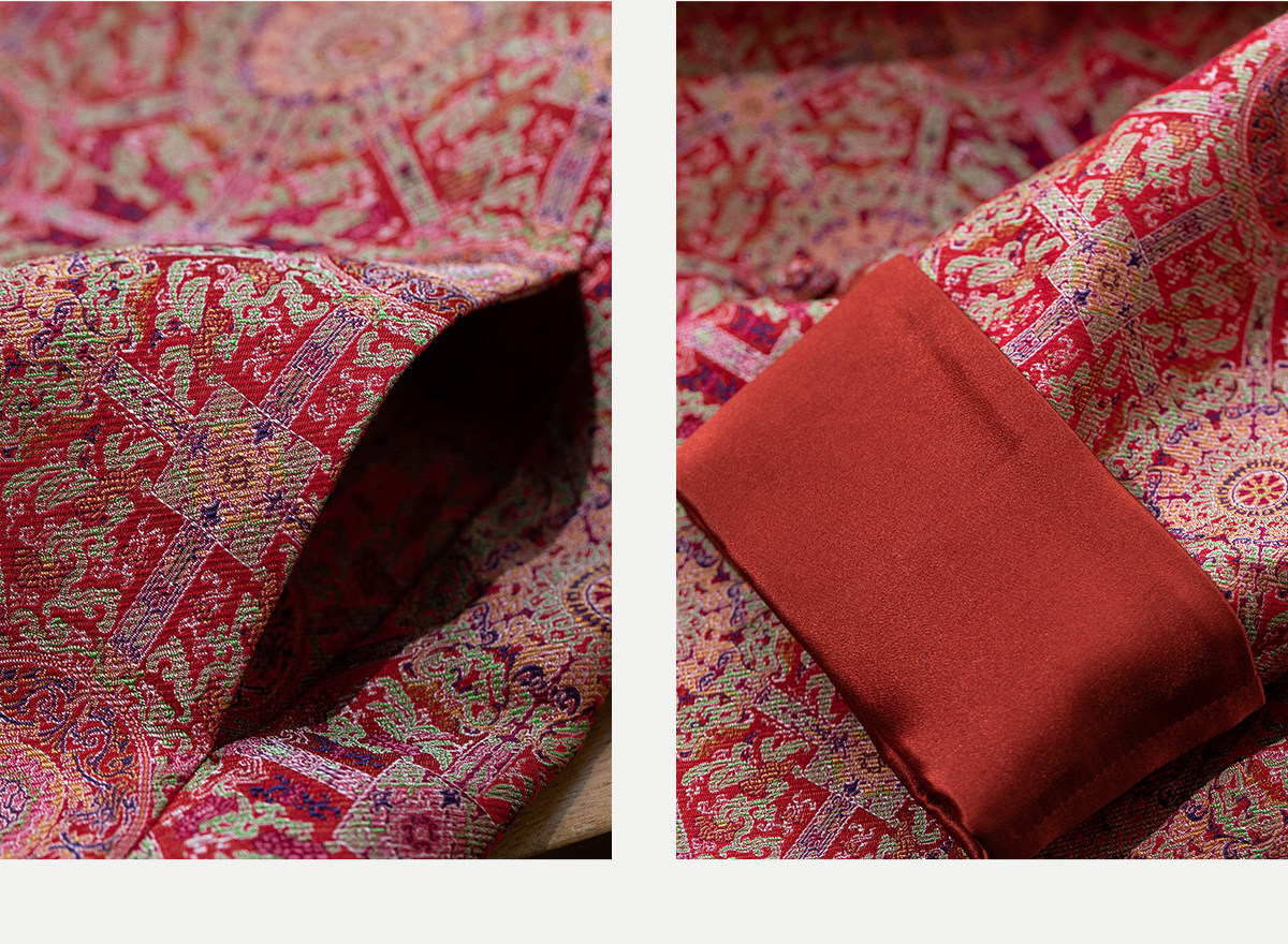 牧衣游原创 48姆米重磅织锦八达晕桑蚕丝外套红色复古东方 墨香