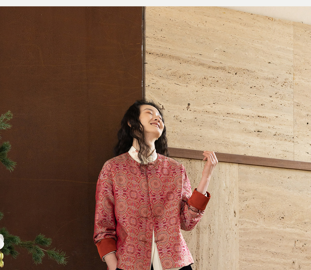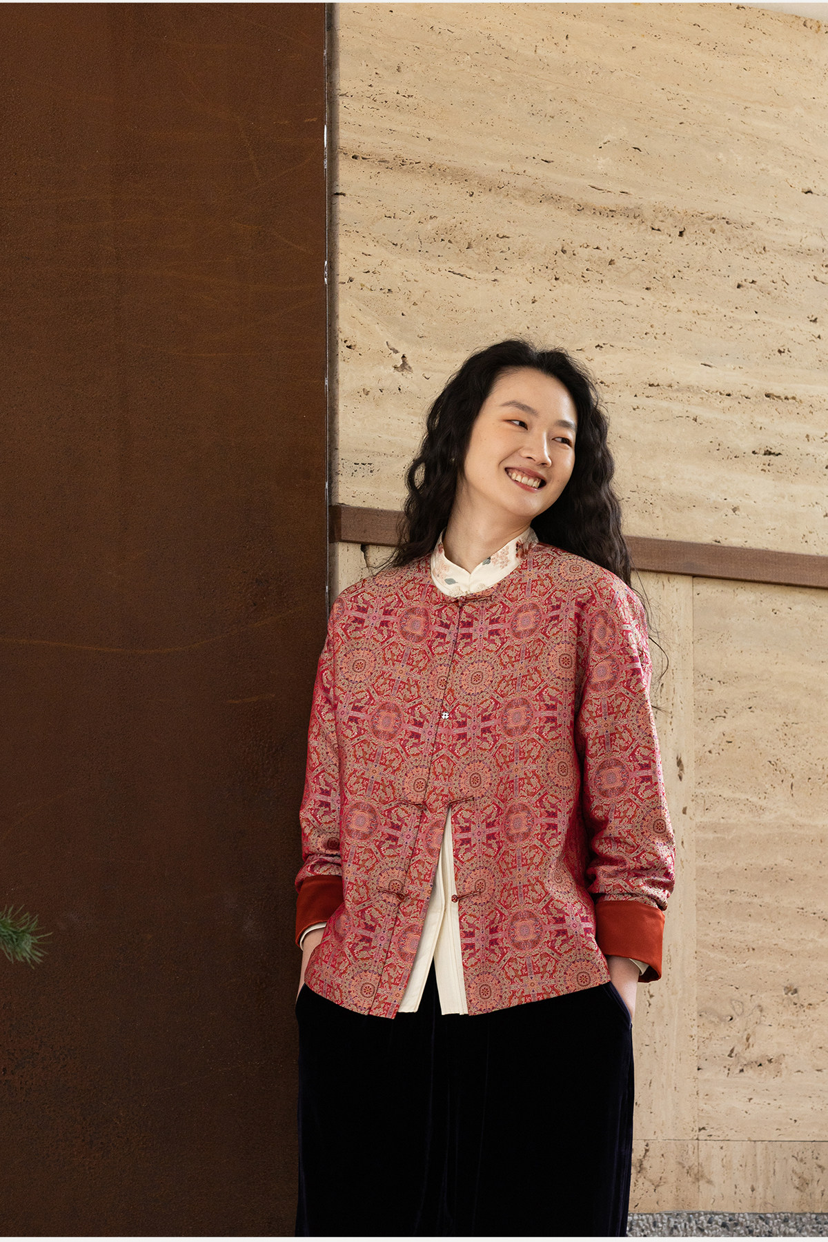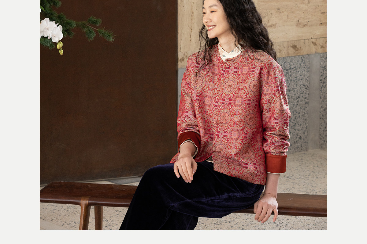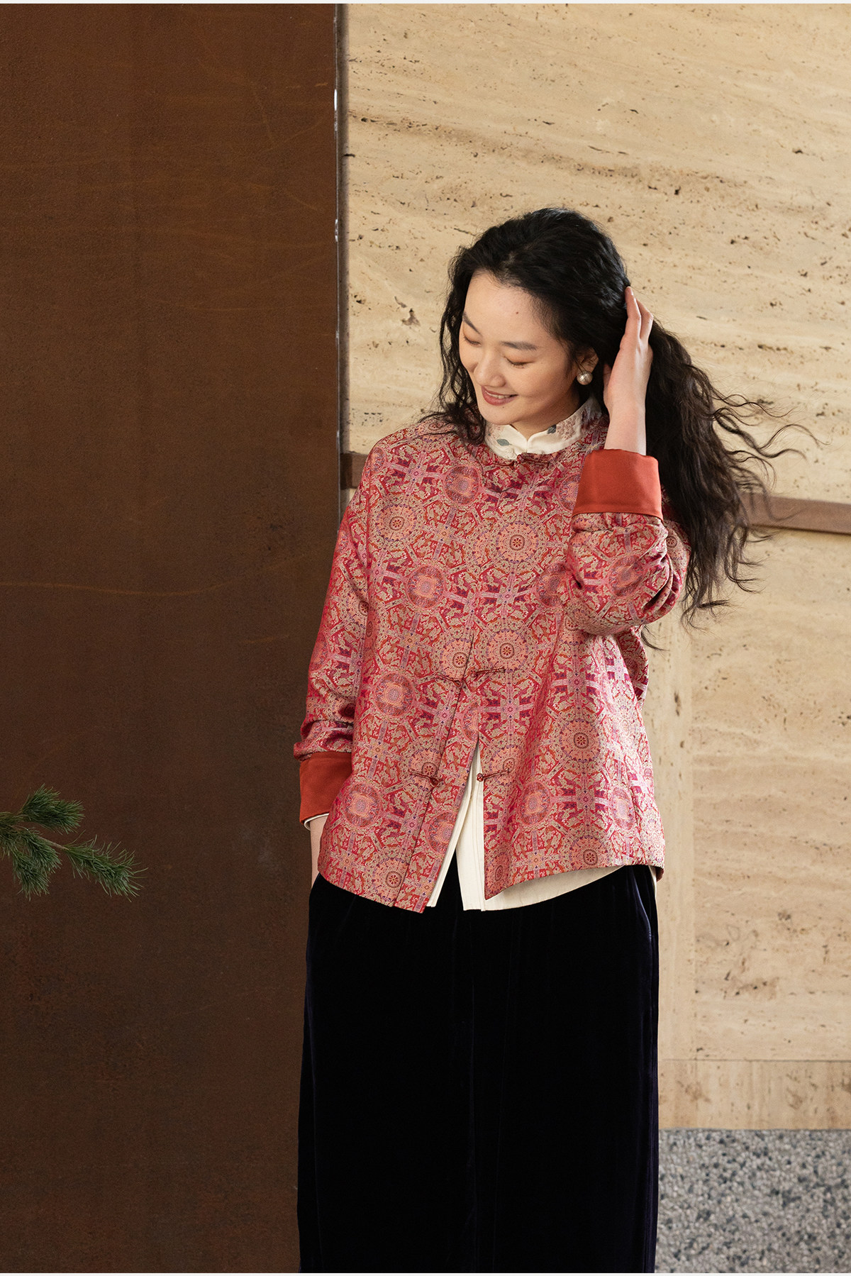 牧衣游原创 48姆米重磅织锦八达晕桑蚕丝外套红色复古东方 墨香