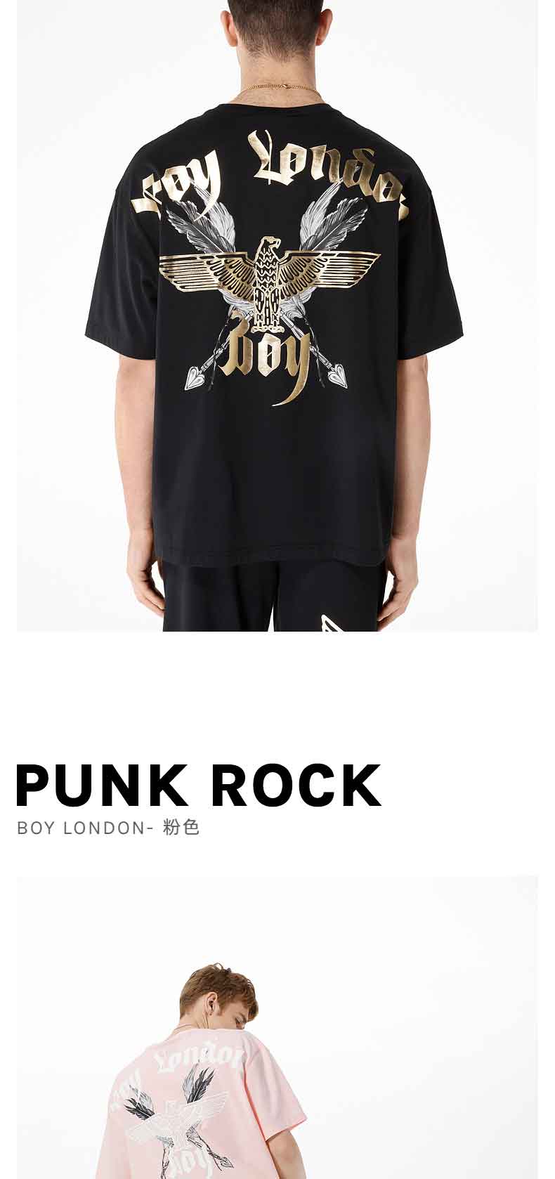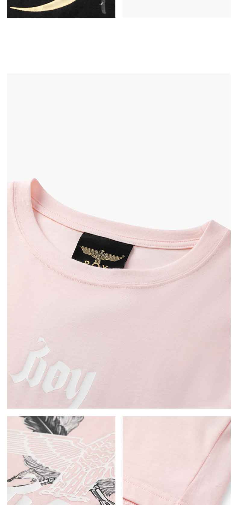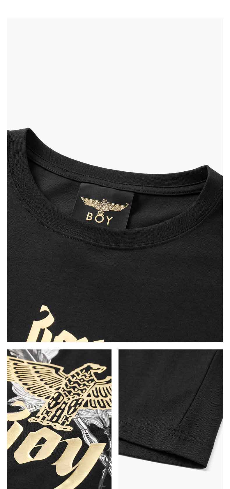 BOYLONDON情侣短袖22春夏新品上衣鹰翼烫金印花黑色休闲T恤B221N01024