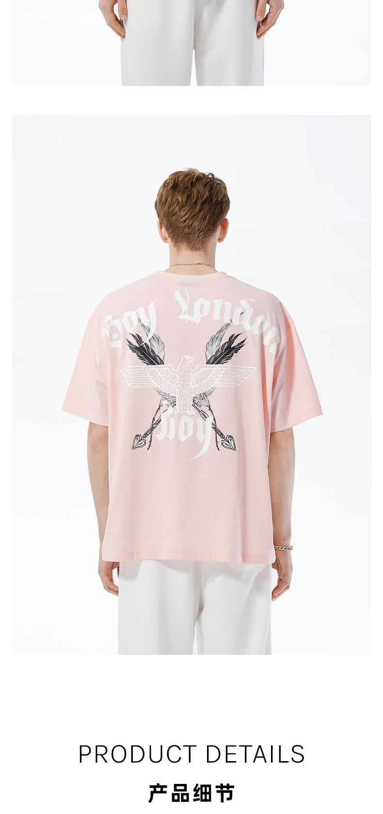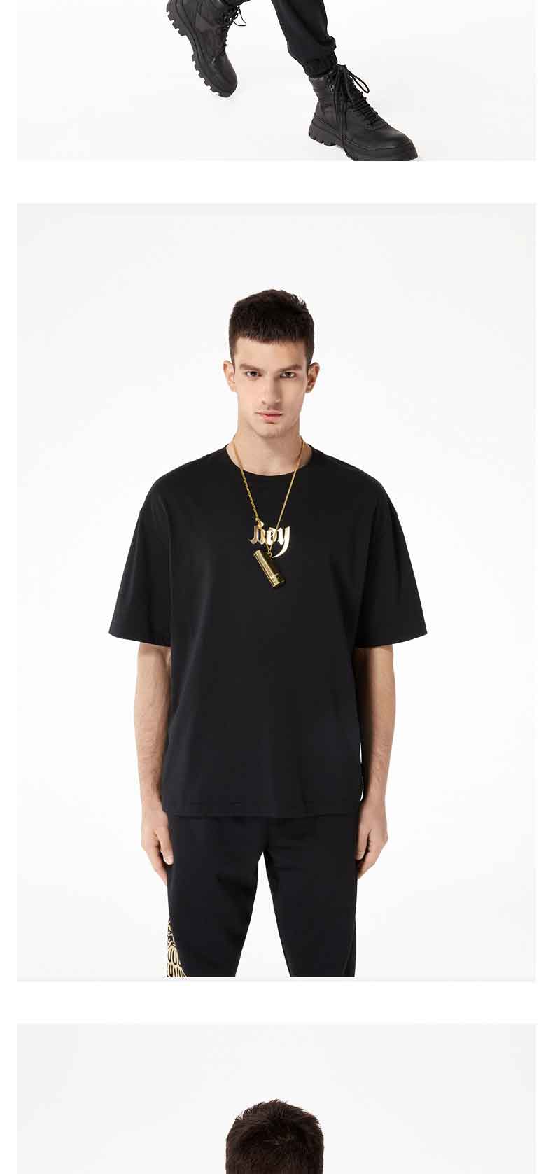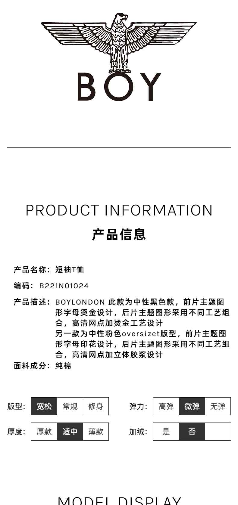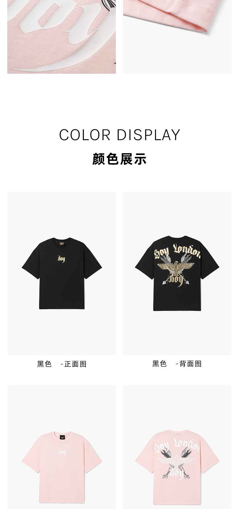 BOYLONDON情侣短袖22春夏新品上衣鹰翼烫金印花黑色休闲T恤B221N01024