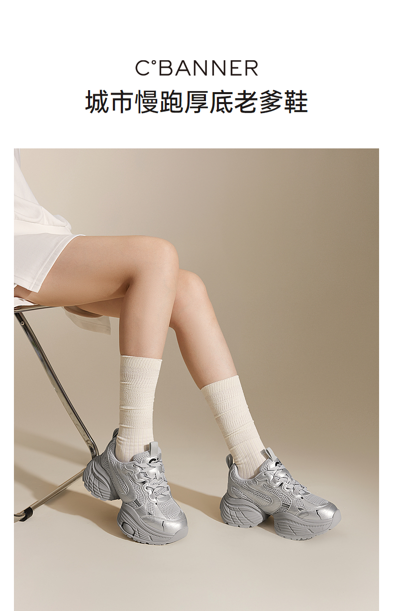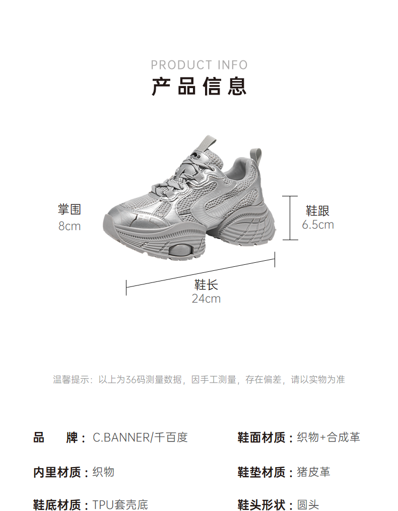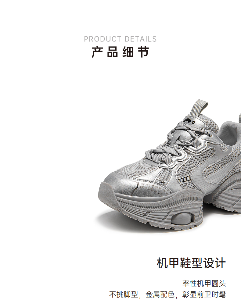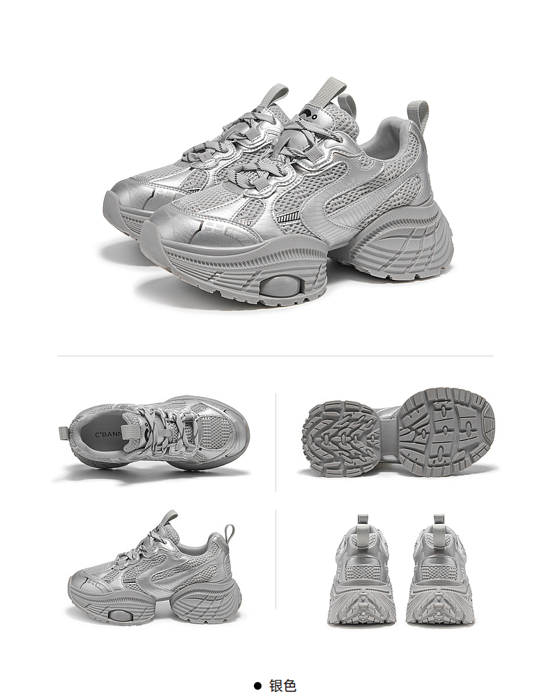 千百度银色厚底老爹鞋女春季百搭防滑网面鞋休闲运动鞋舒适A24488604