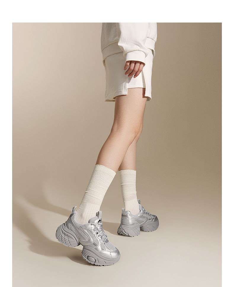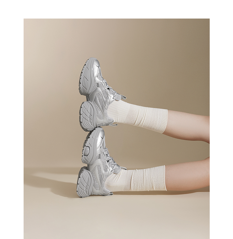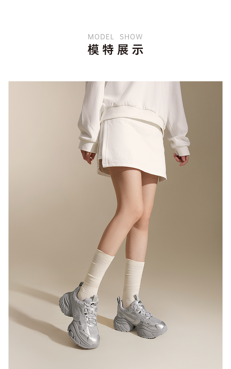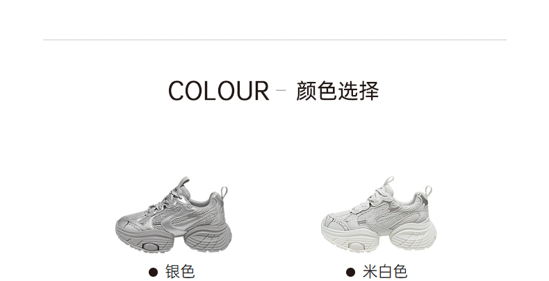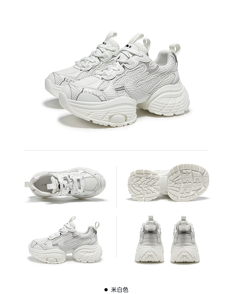 千百度银色厚底老爹鞋女春季百搭防滑网面鞋休闲运动鞋舒适A24488604