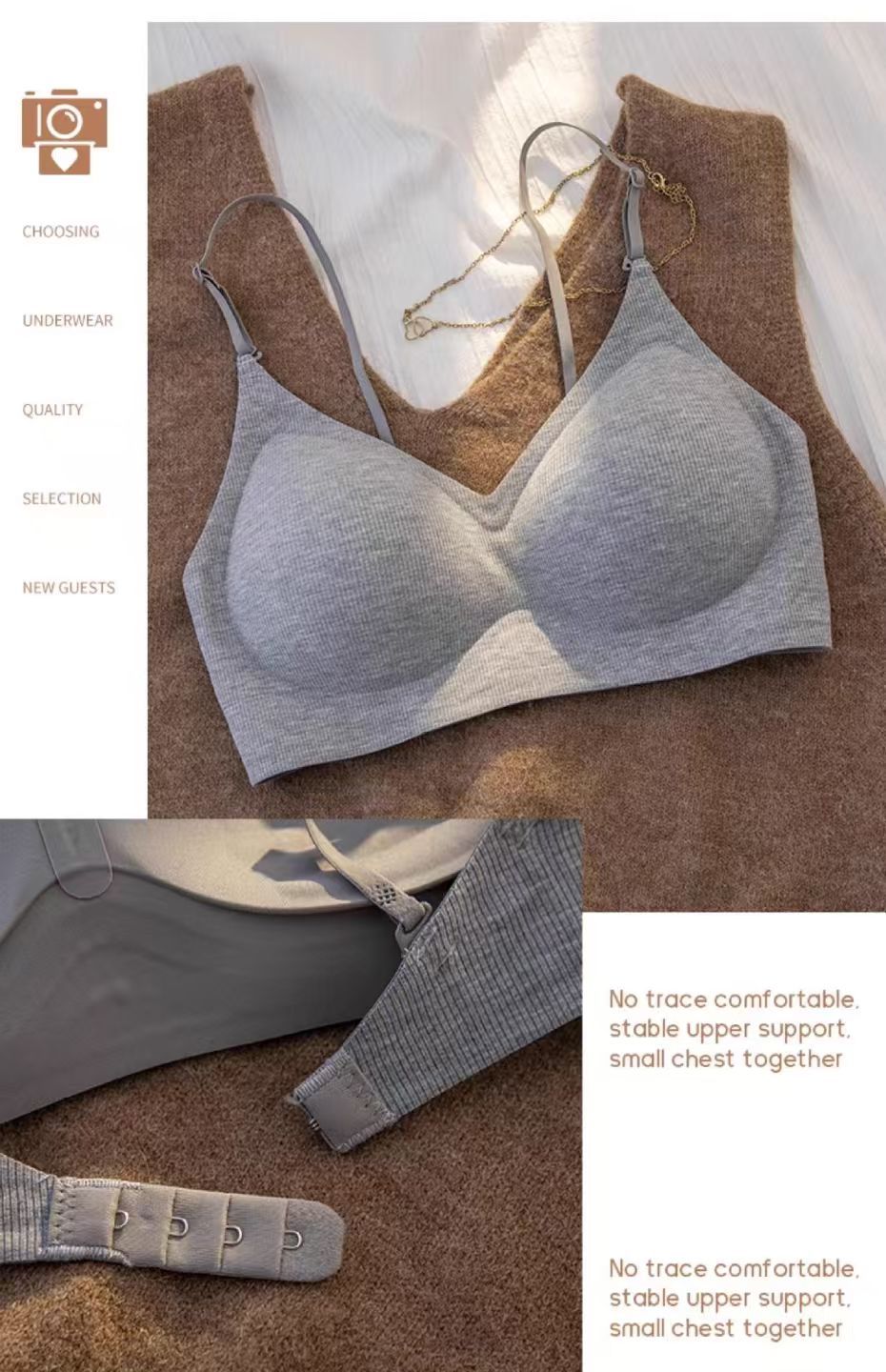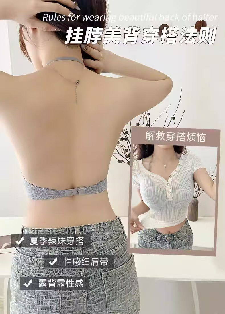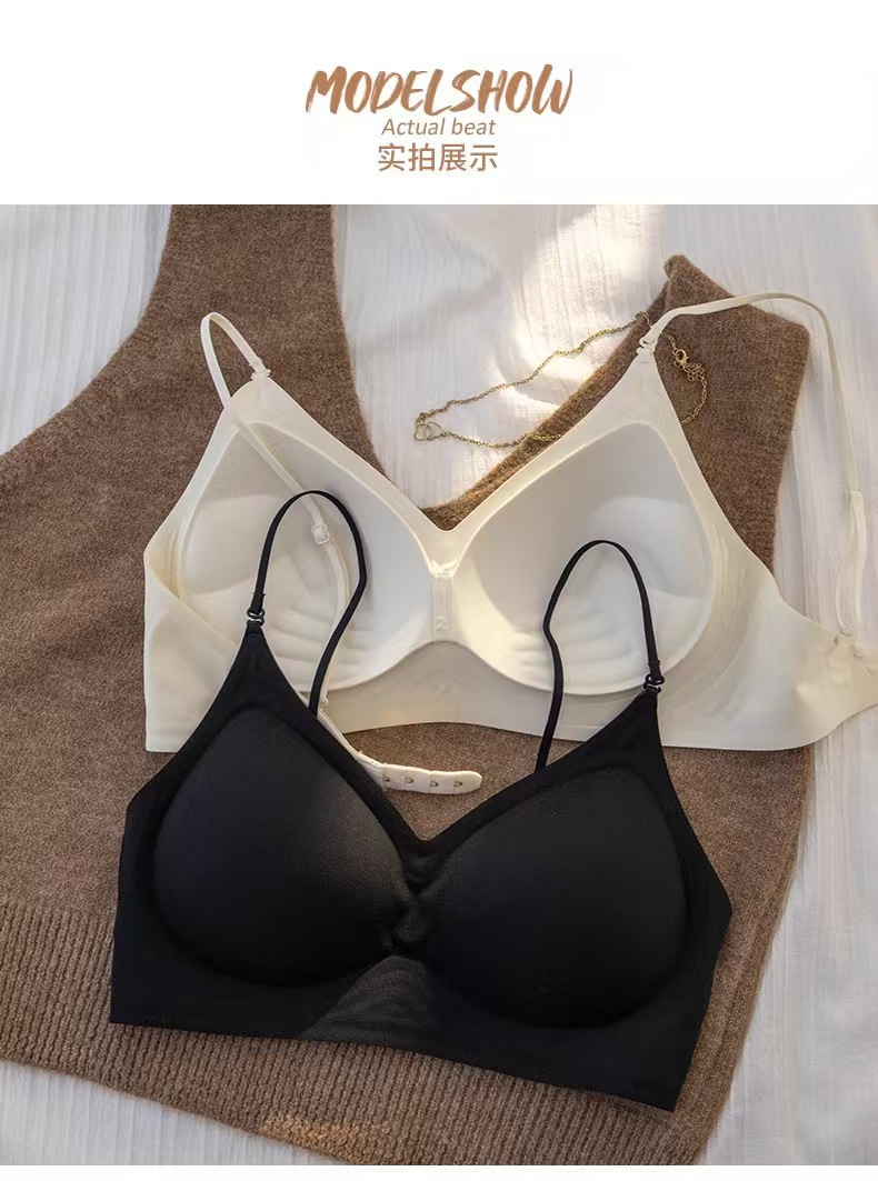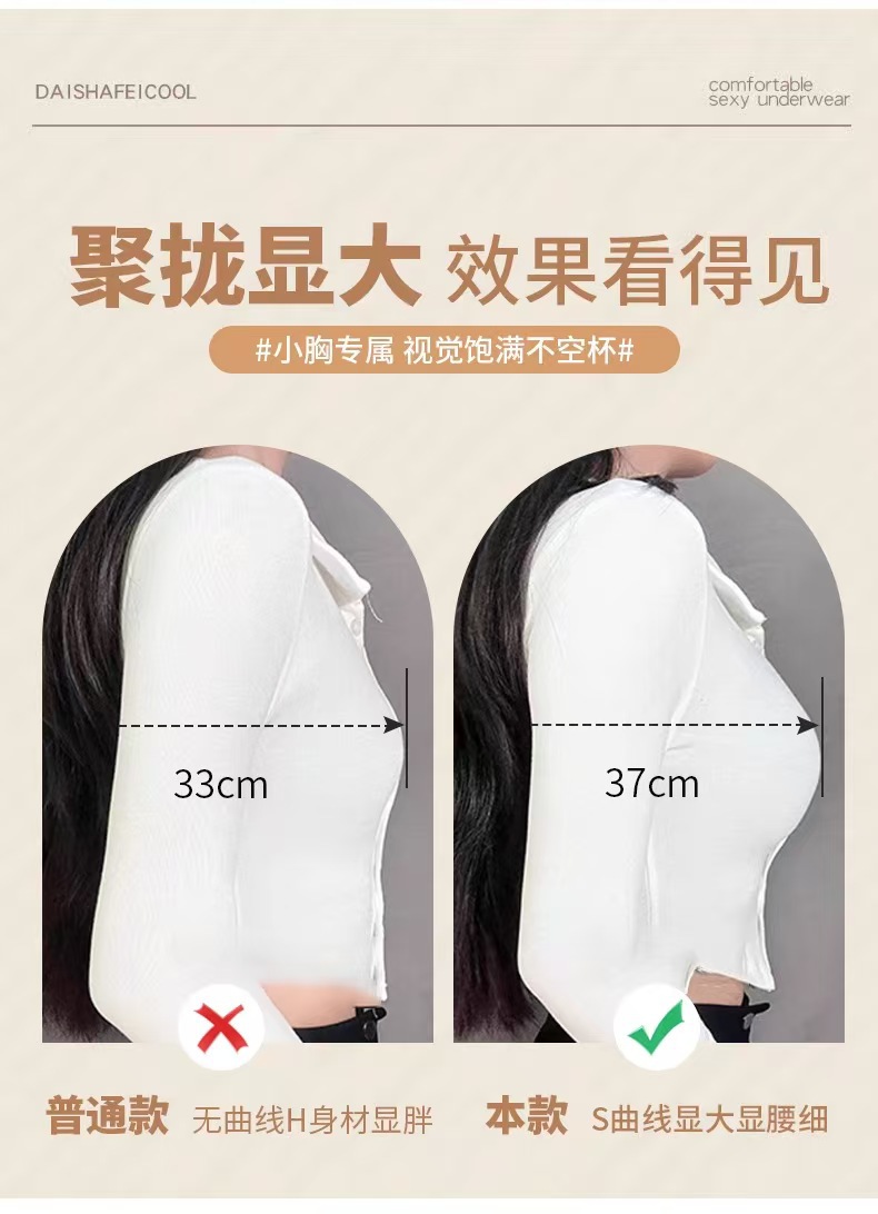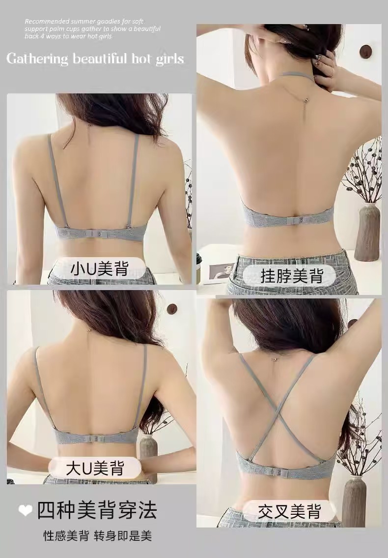 无痕外扩内衣女漫画胸细肩带显腰细1cm厚固定手掌杯无钢圈文胸罩