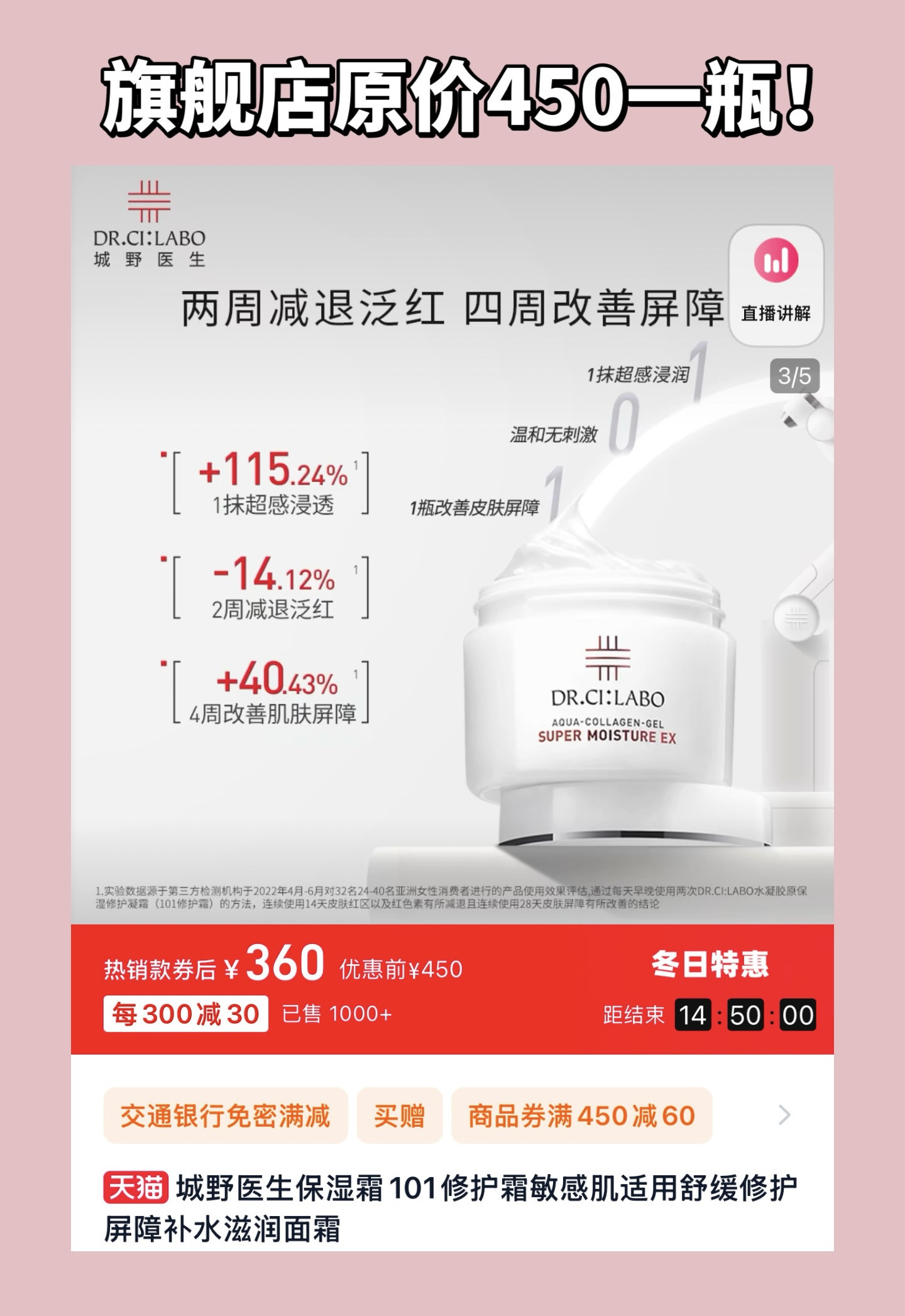 【清仓好价】城野医生101修护霜水绷带舒缓保湿面霜50g
