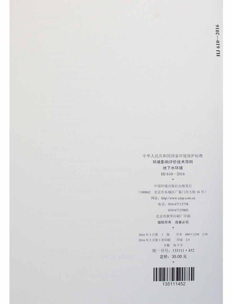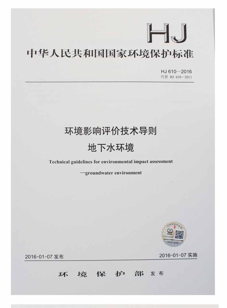 HJ 610-2016 代替 HJ 610-2011 环境影响评价技术导则 地下水环境 国家标准 GB环境保护中国环境出版社 135111452