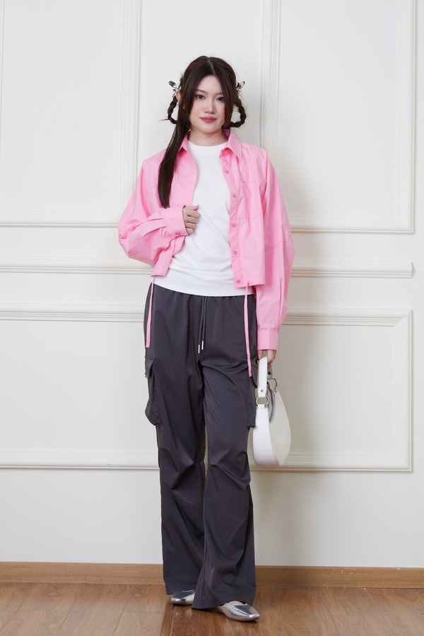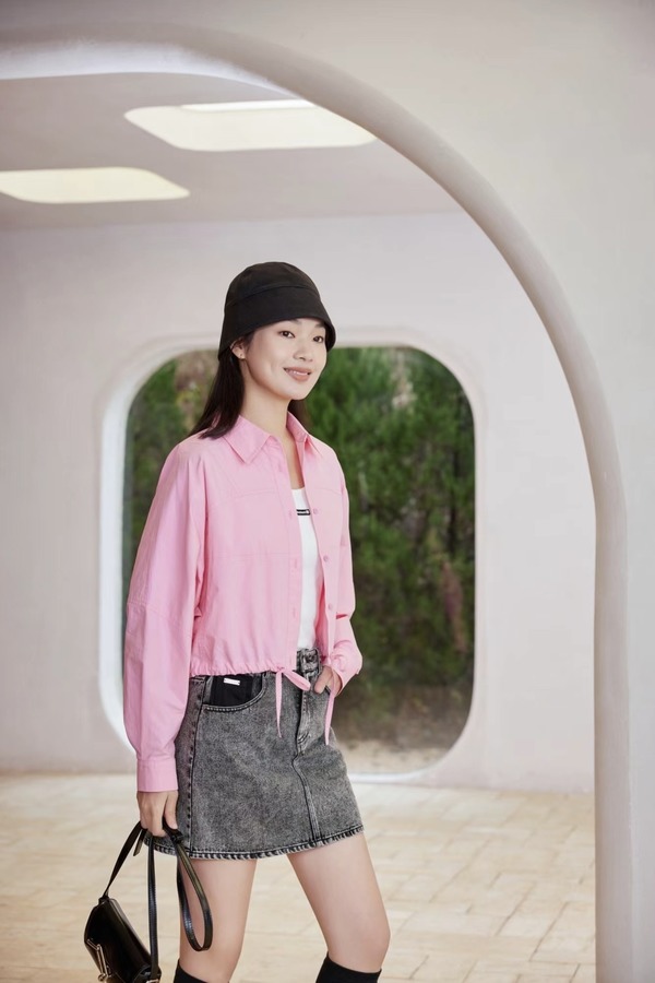 WHO KNOWS 休闲百搭粉色抽绳长袖上衣 20091