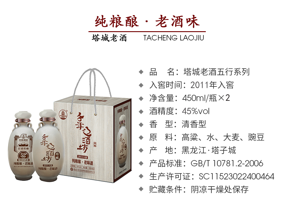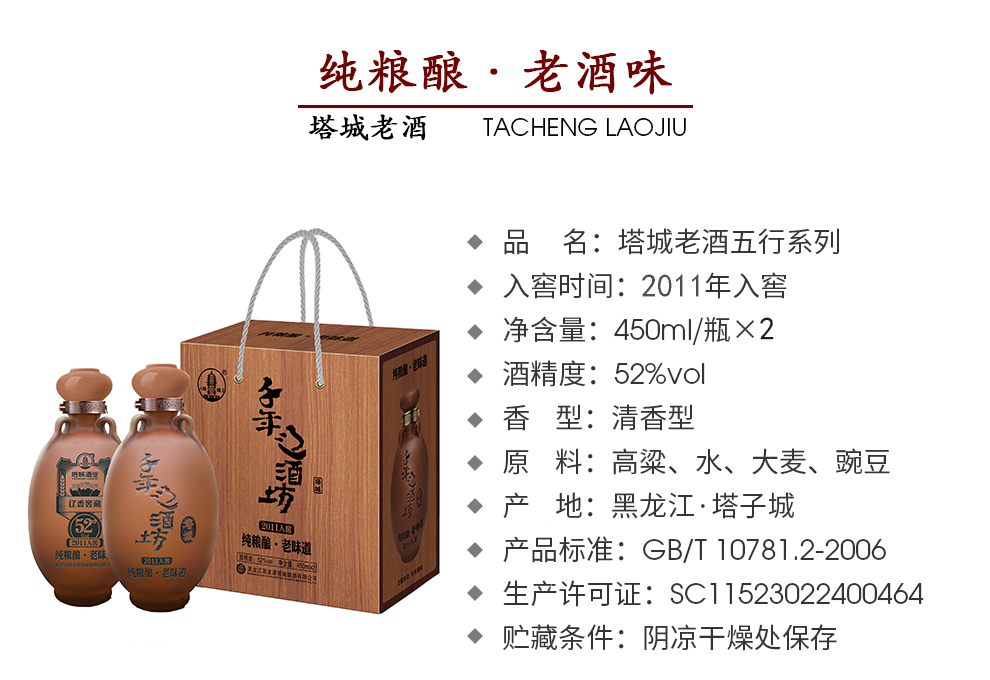 塔城老酒 千年辽酒坊高粱白酒清香型 450ml*2