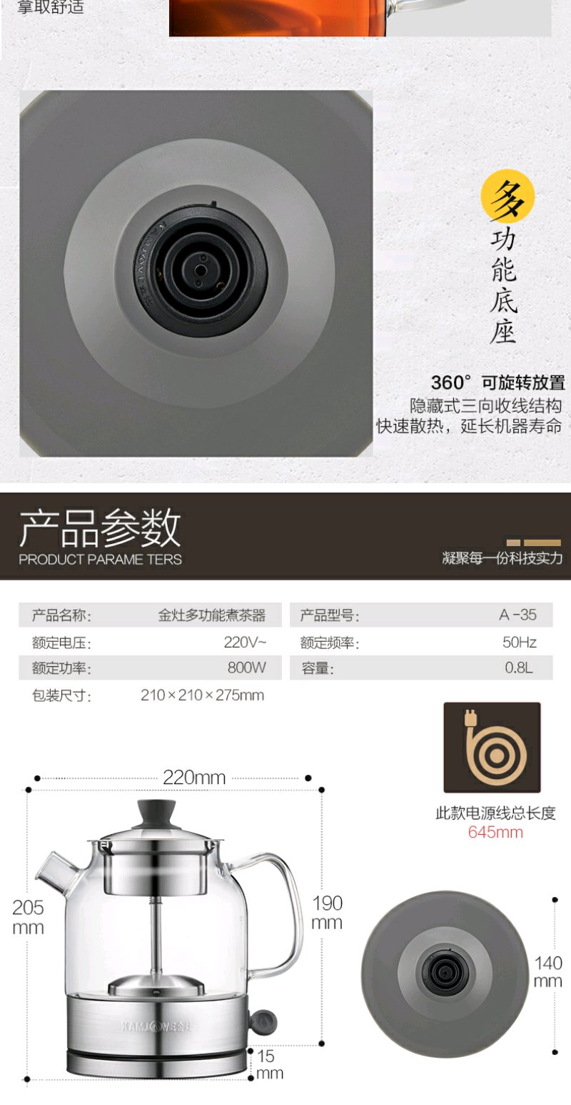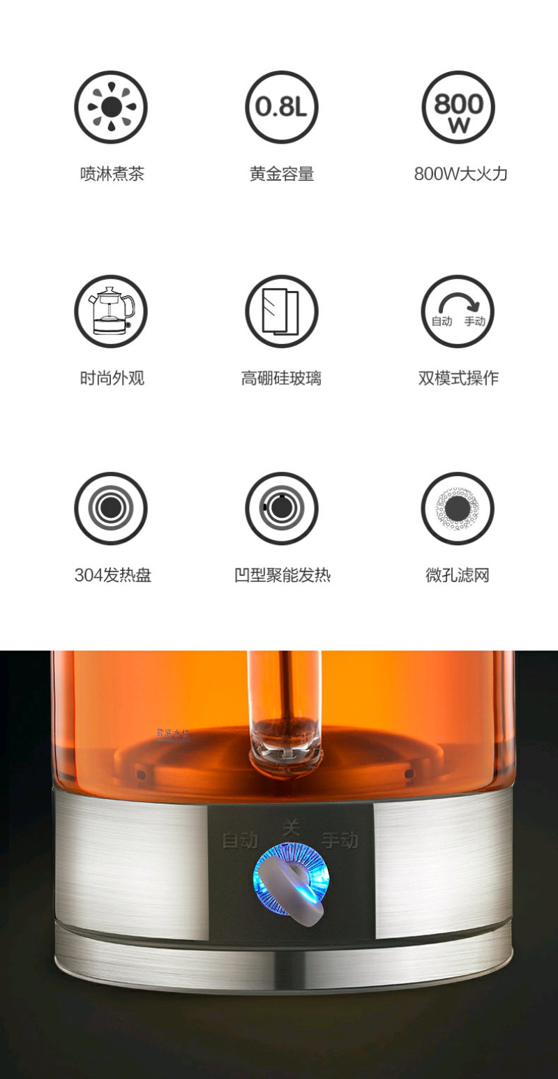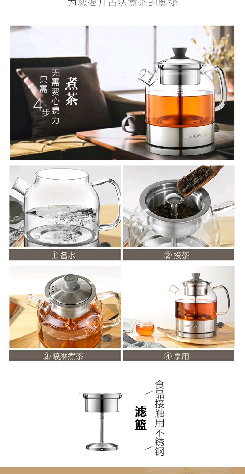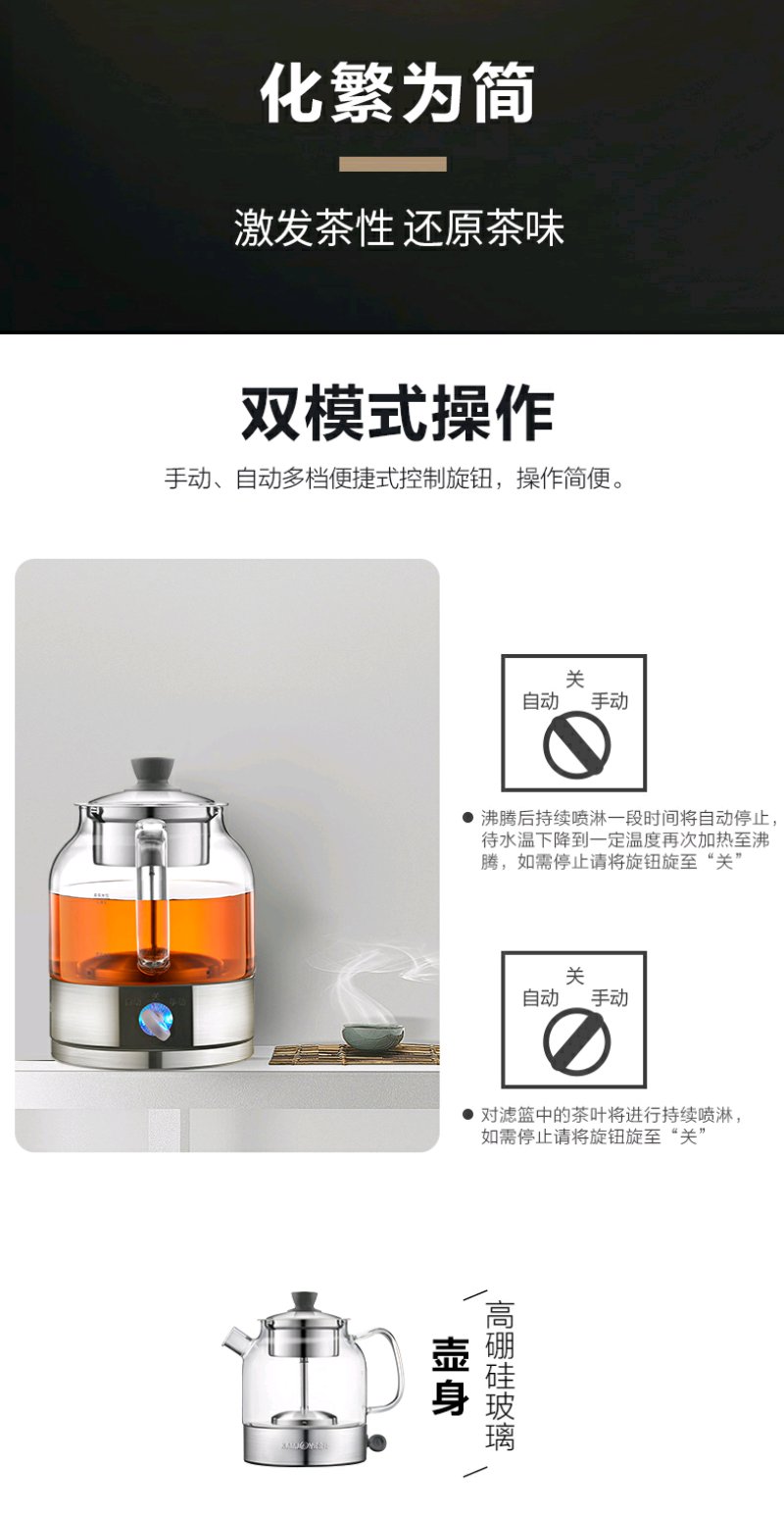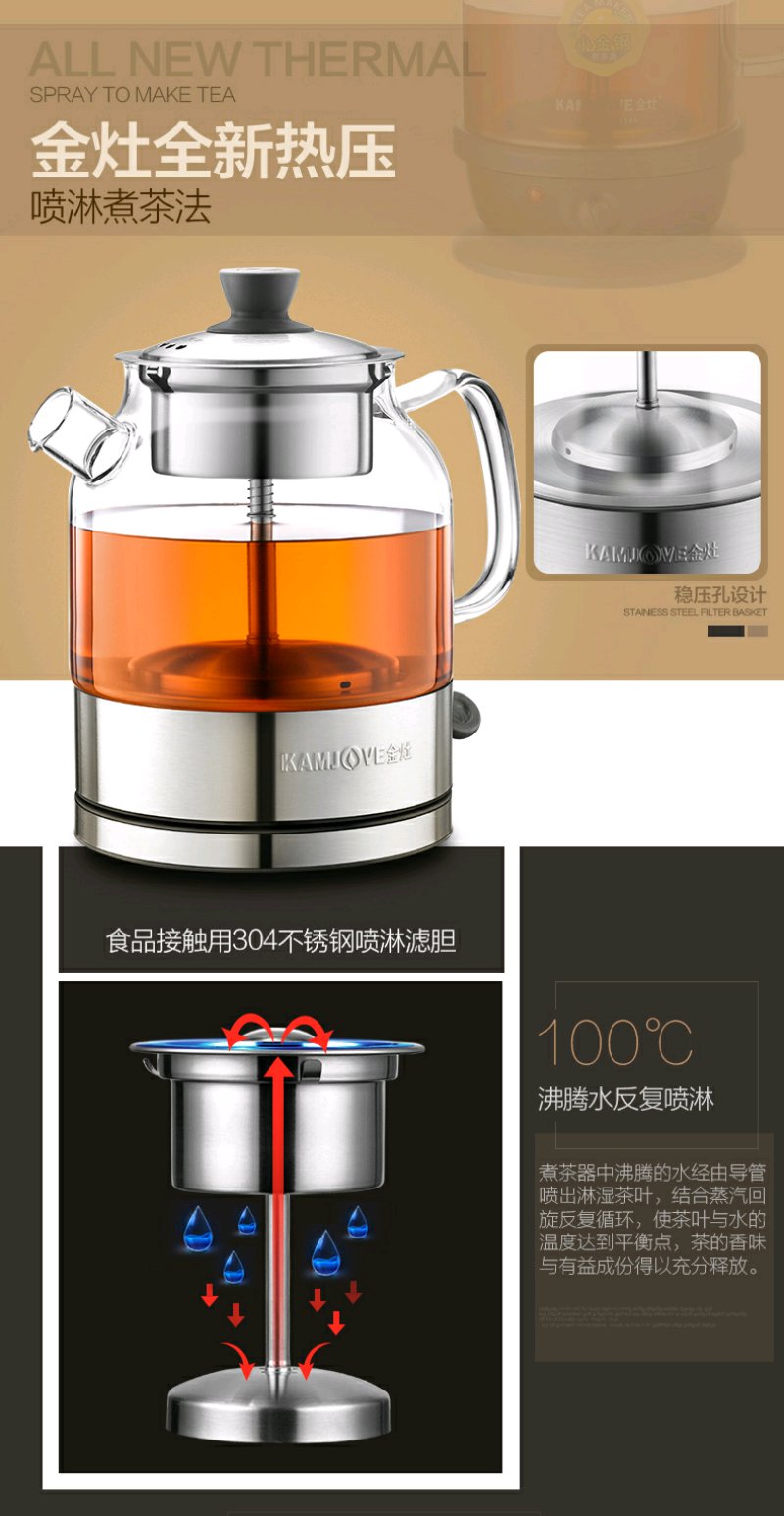 金灶 A-35 全自动煮茶器蒸汽喷淋煮茶壶玻璃黑茶小型迷你家用煮茶炉