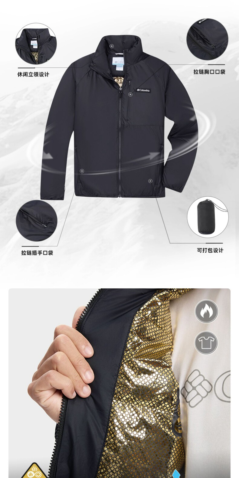 哥伦比亚男式休闲立领羽绒外套XE3482