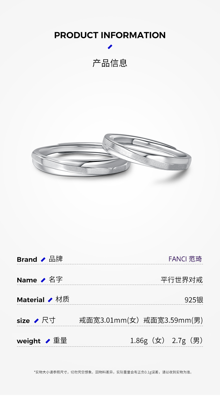 【日月山海对戒】Fanci范琦银饰轻奢情侣对戒 下单赠精美礼盒 顺丰空运+运费险