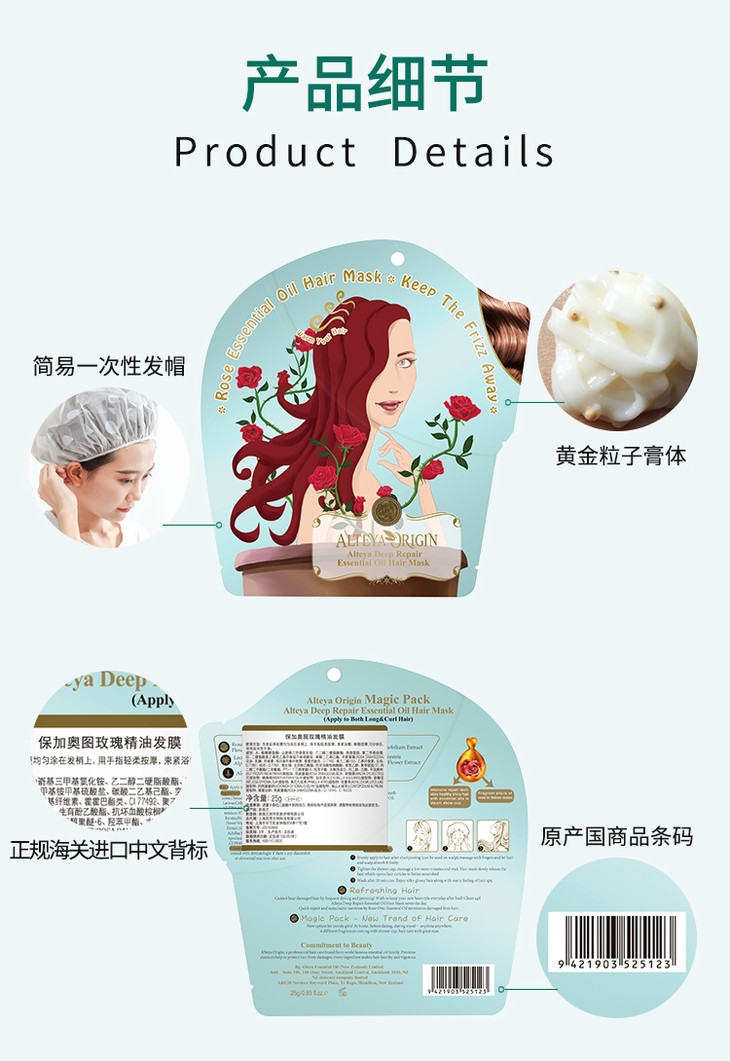 保加奥图 植物精油发膜 25g 单片装 免蒸水疗顺滑改善毛糙修复干枯