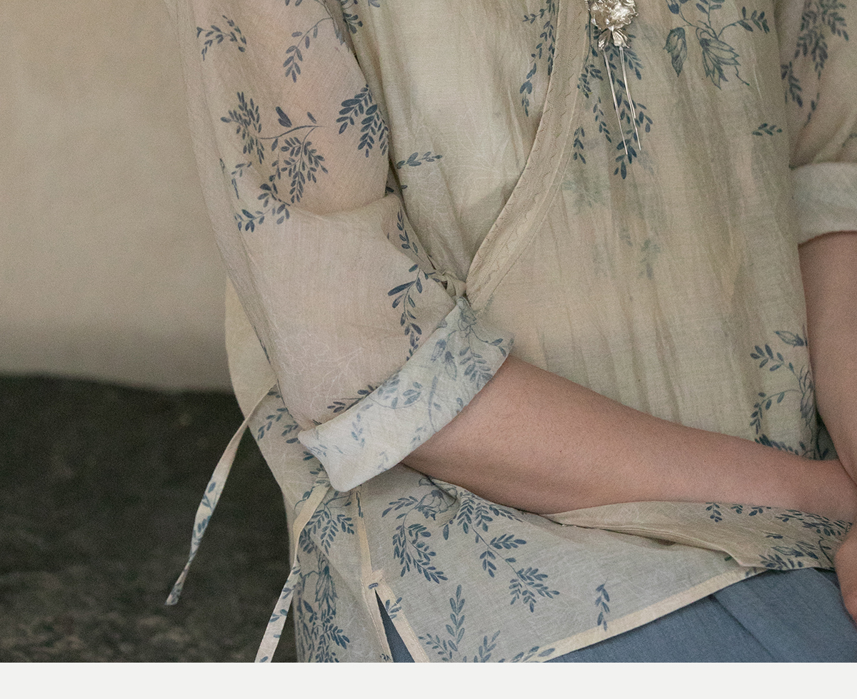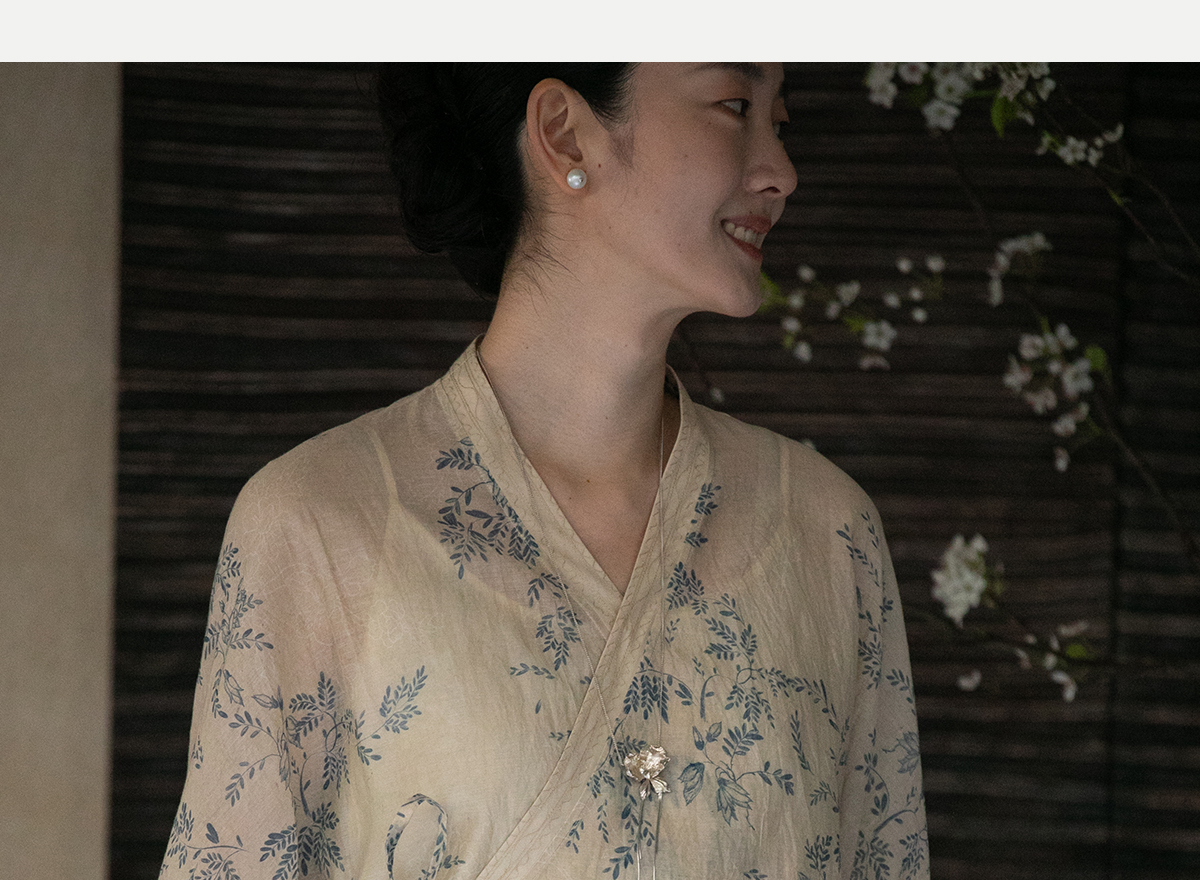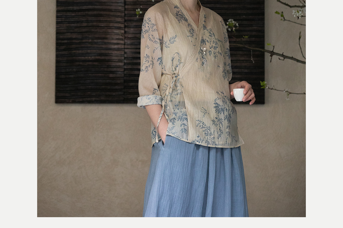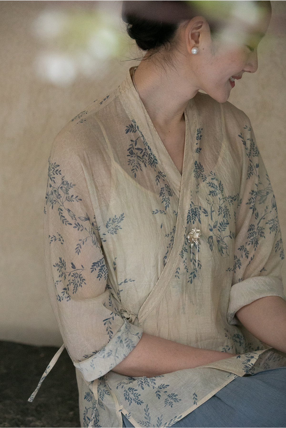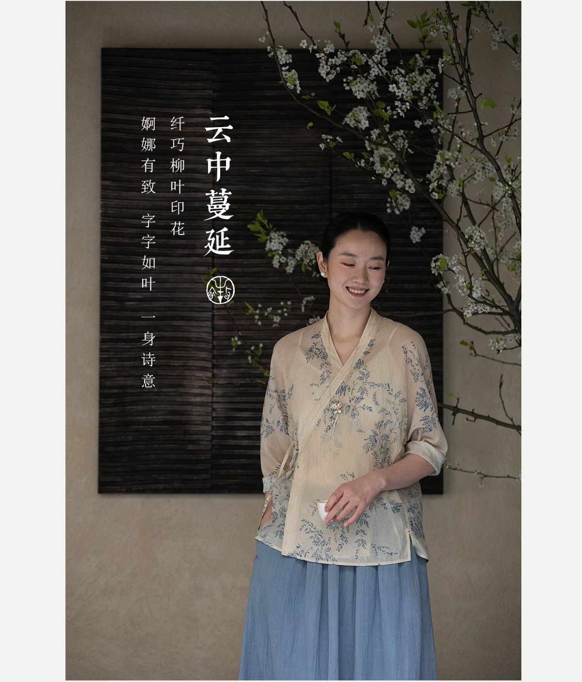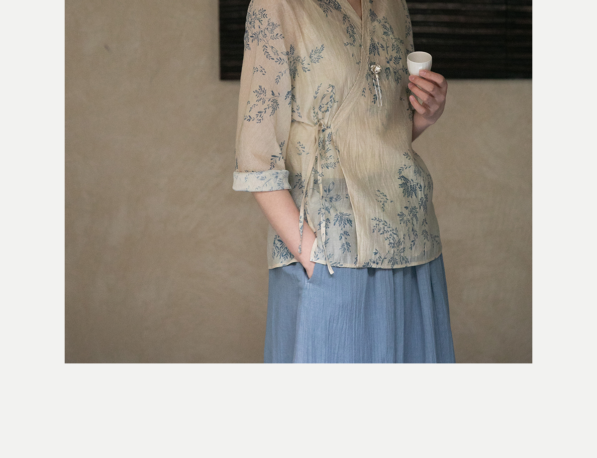 牧衣游原创 机绣印花丝棉短外套斜襟系带复古新中式开衫 茗茶香