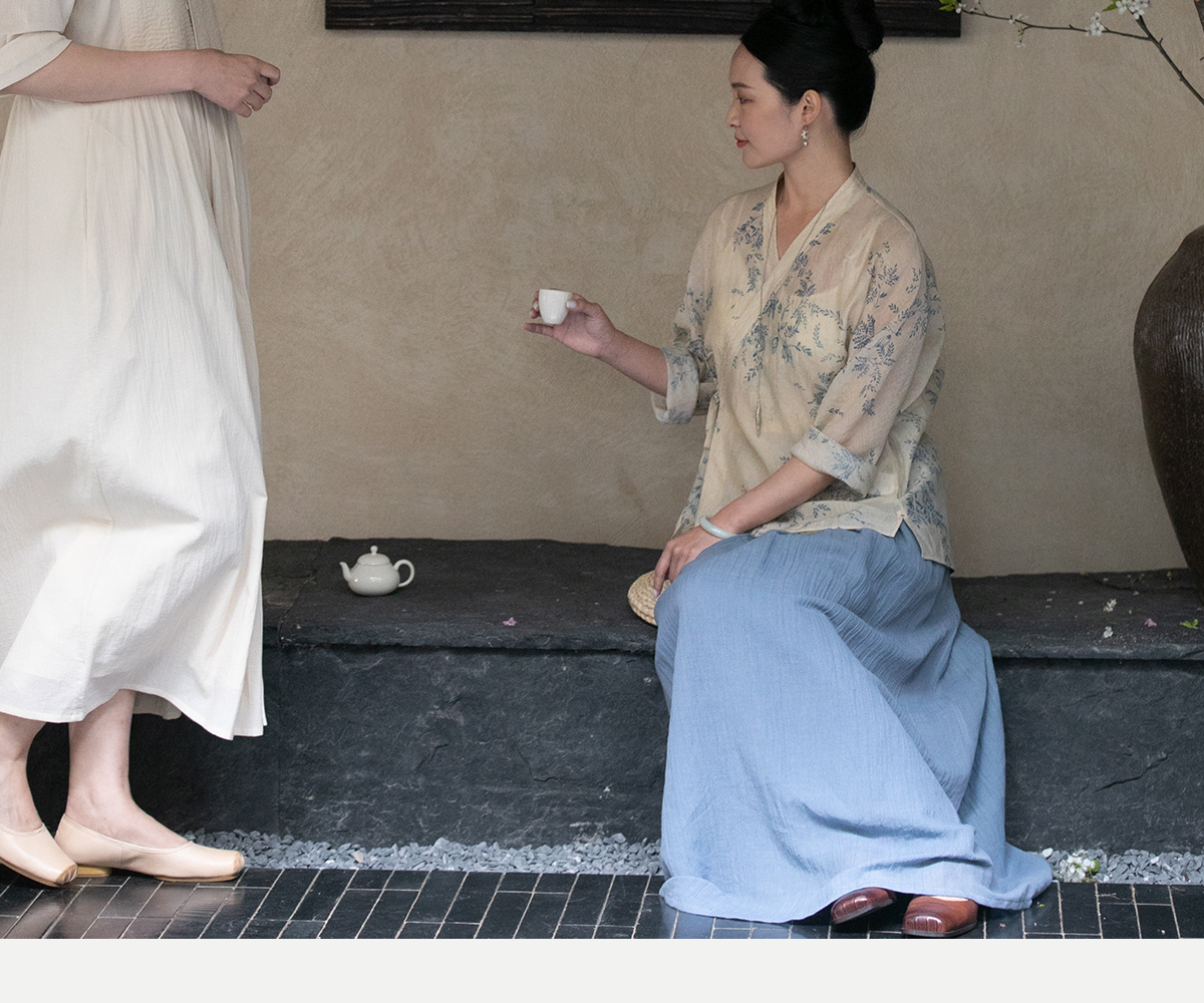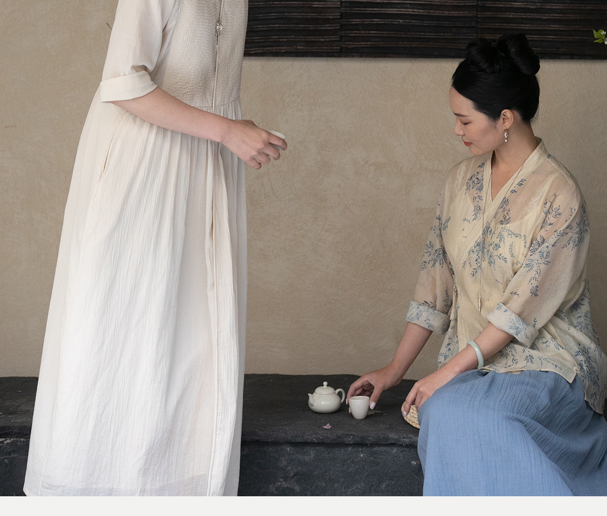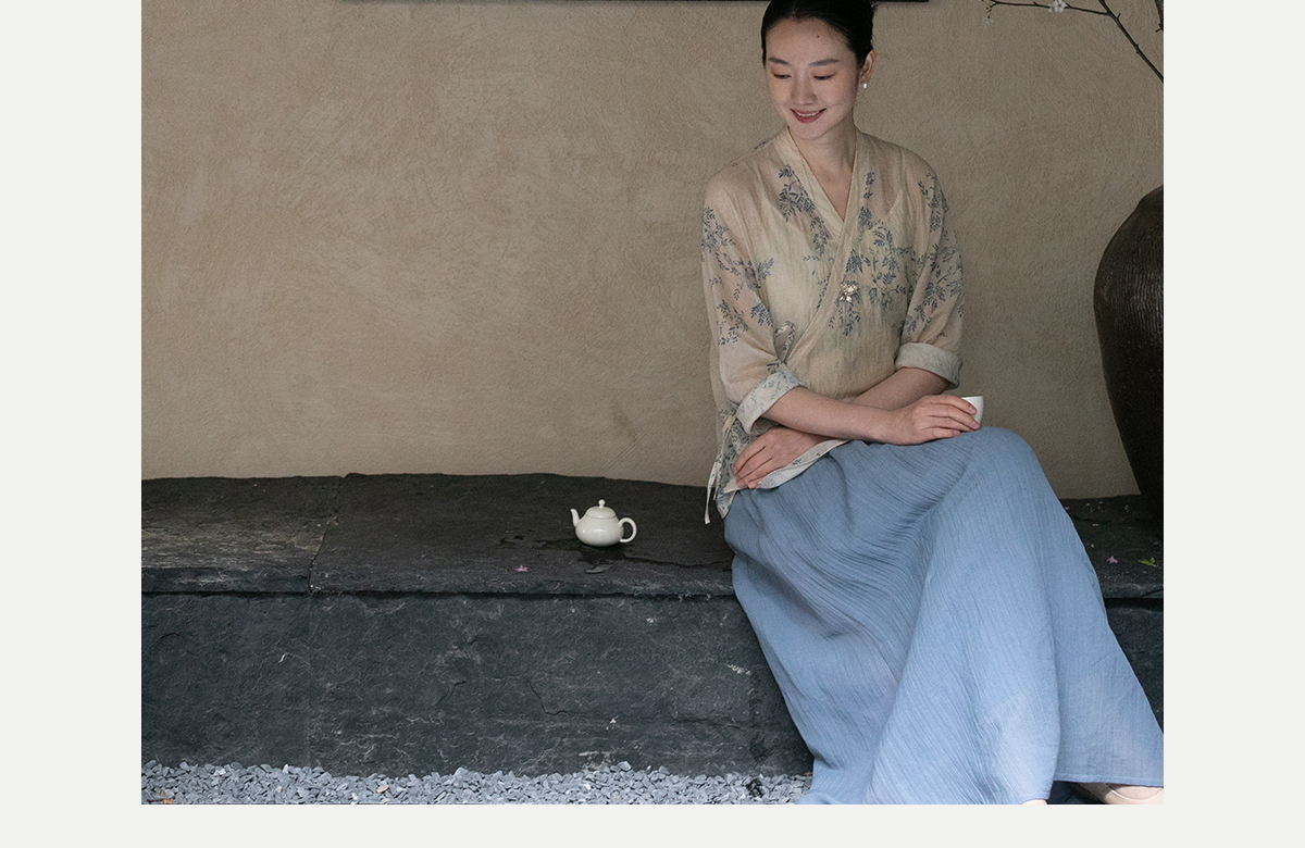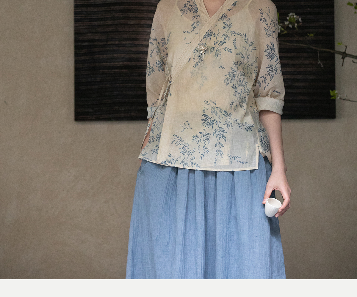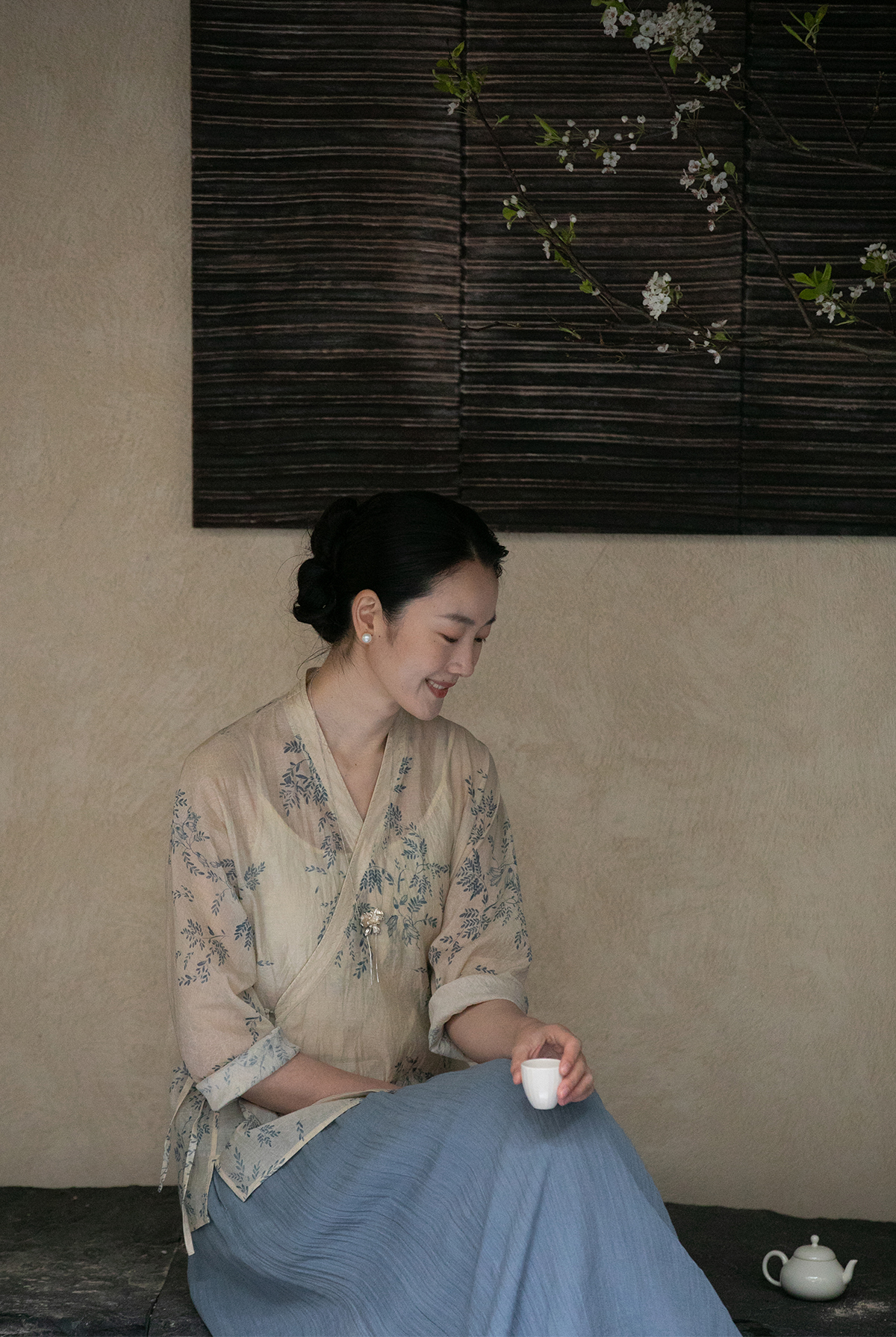 牧衣游原创 机绣印花丝棉短外套斜襟系带复古新中式开衫 茗茶香