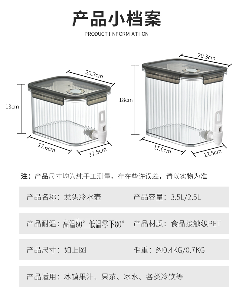 贤妈优选 |冷水壶带水龙头家用放冰箱凉水杯密封大容量耐高温水壶