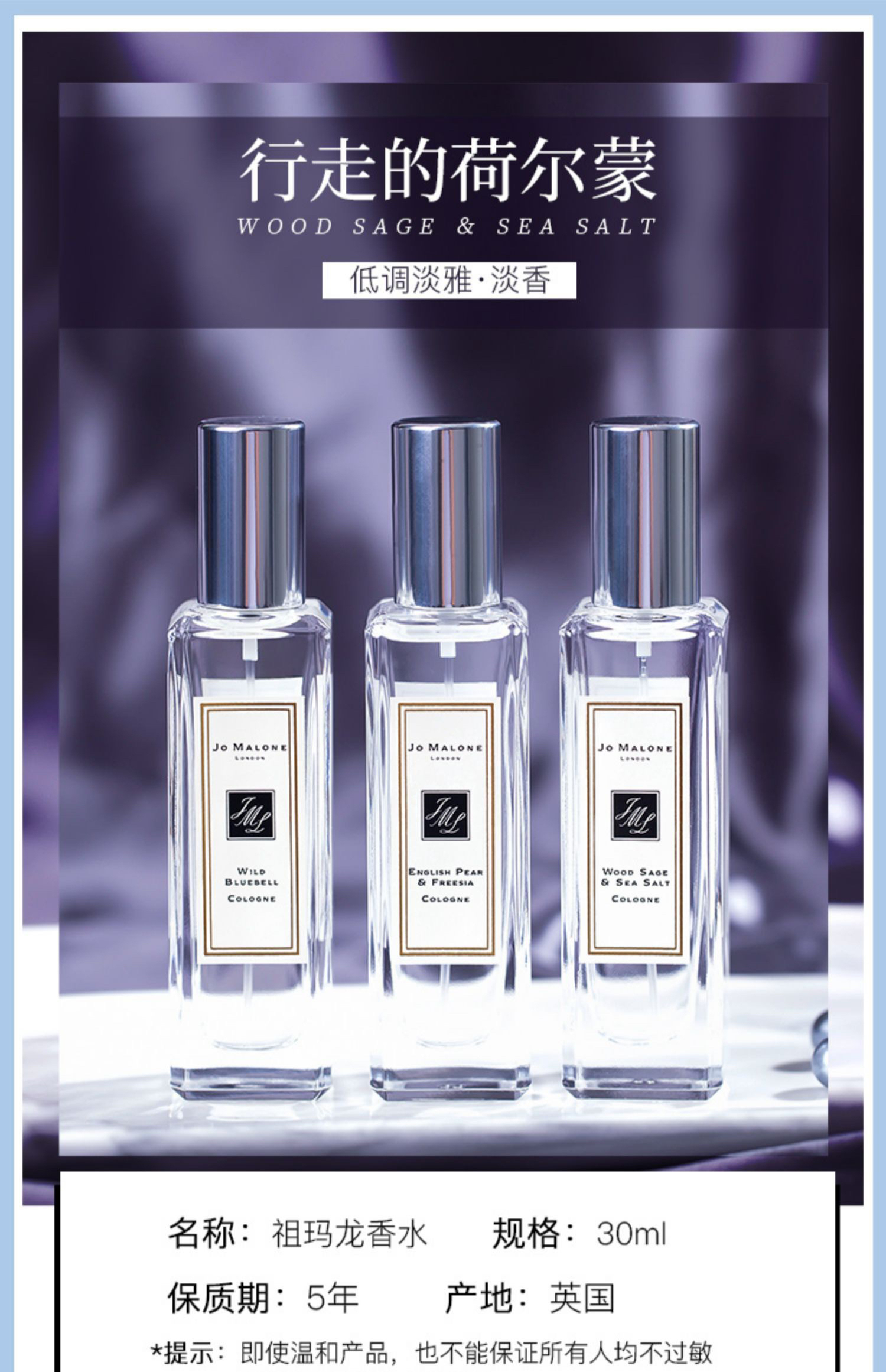 祖马龙淡香水30ml(蓝风铃鼠尾草海盐英国梨小苍兰)