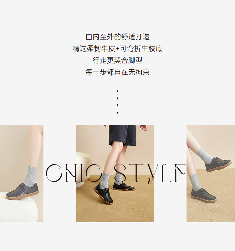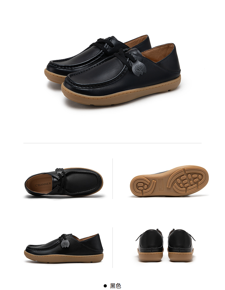 千百度两穿乐福鞋女秋季真皮豆豆鞋休闲平底舒适小皮鞋A23422160