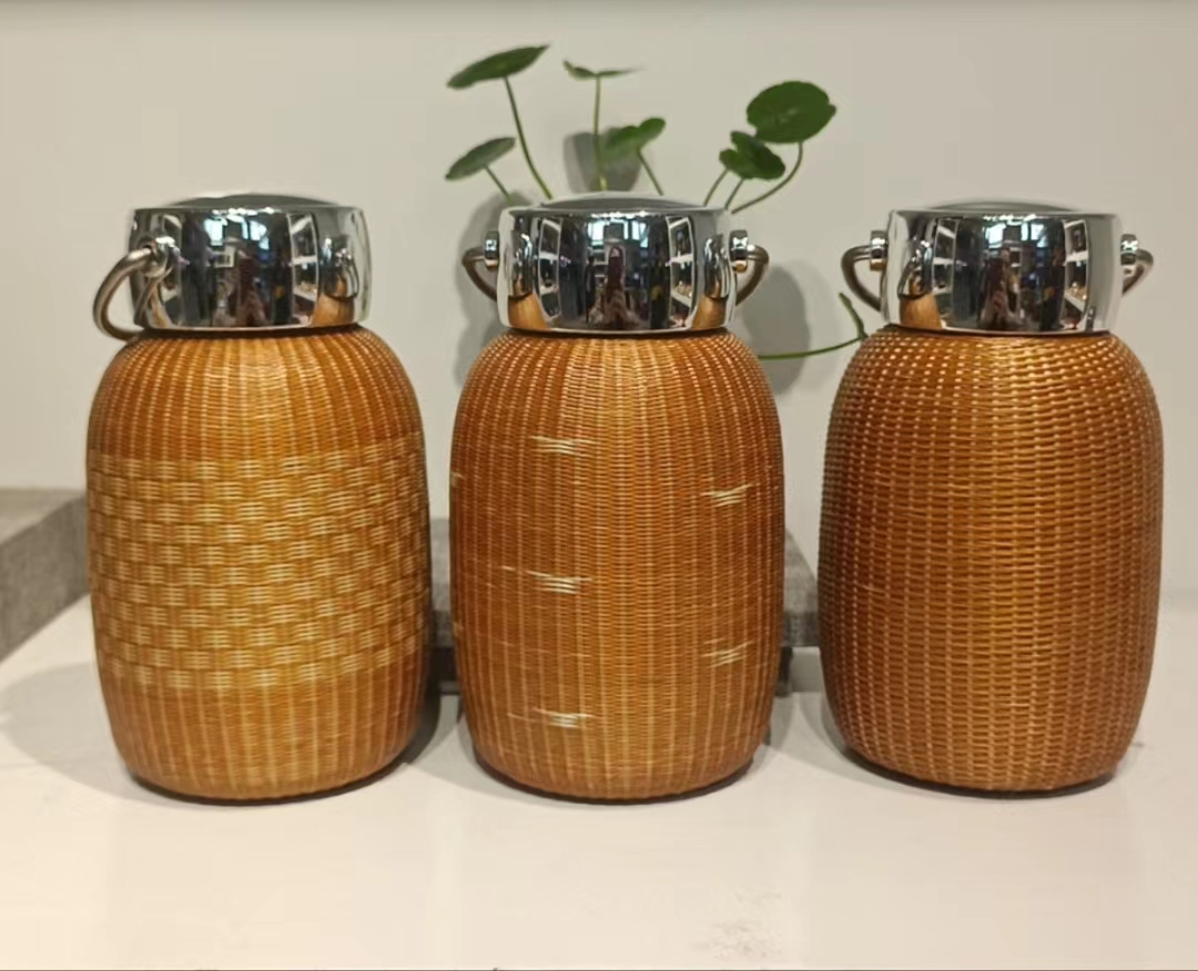 竹丝手提保温杯°本色&碳化色