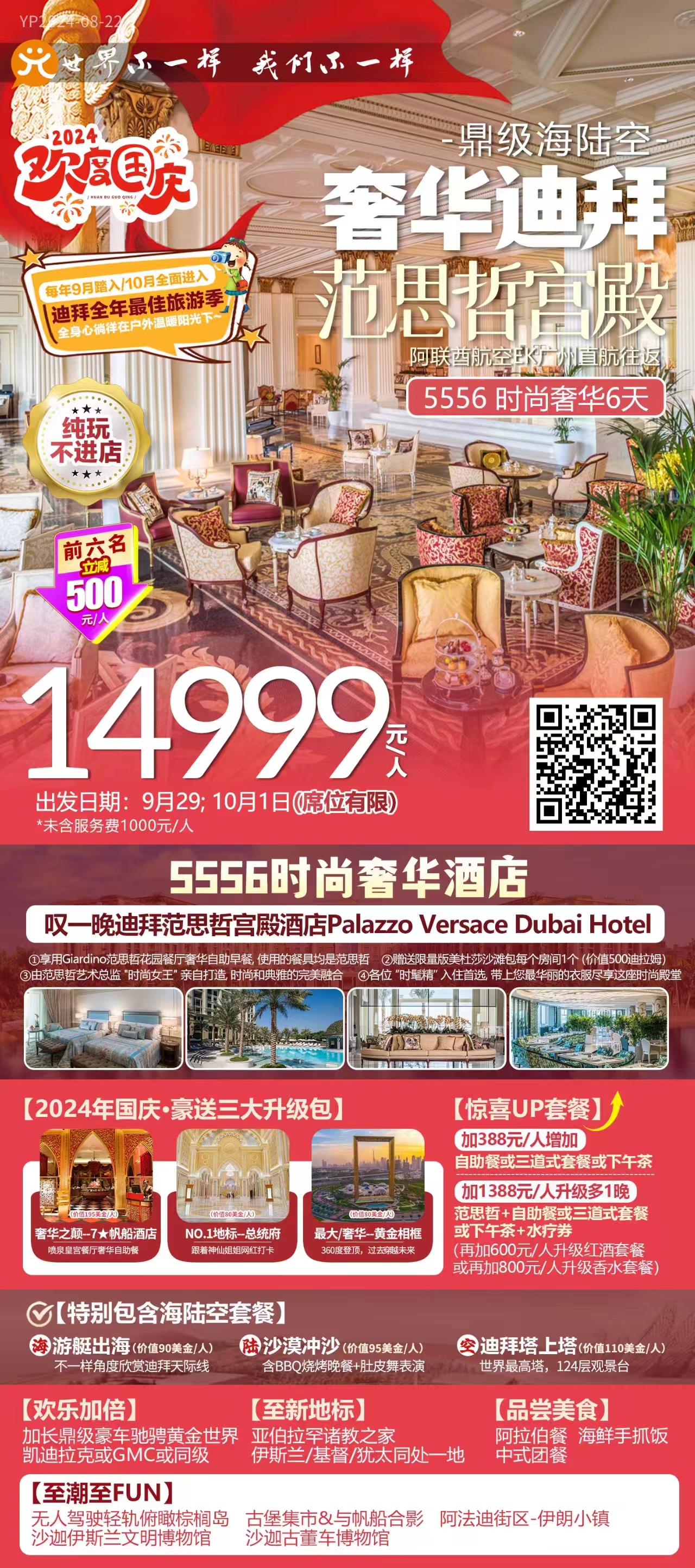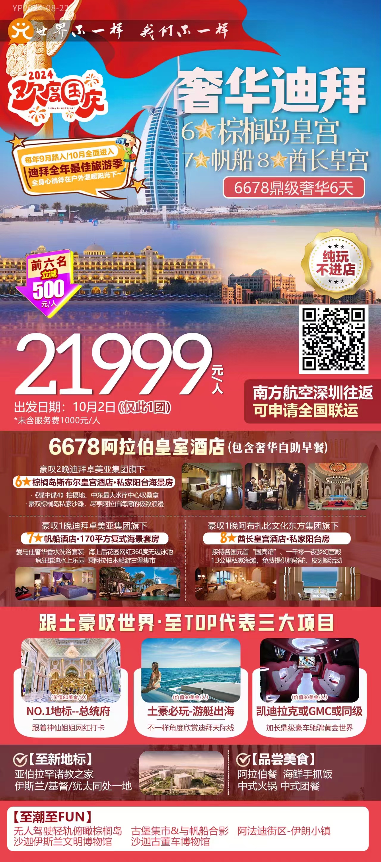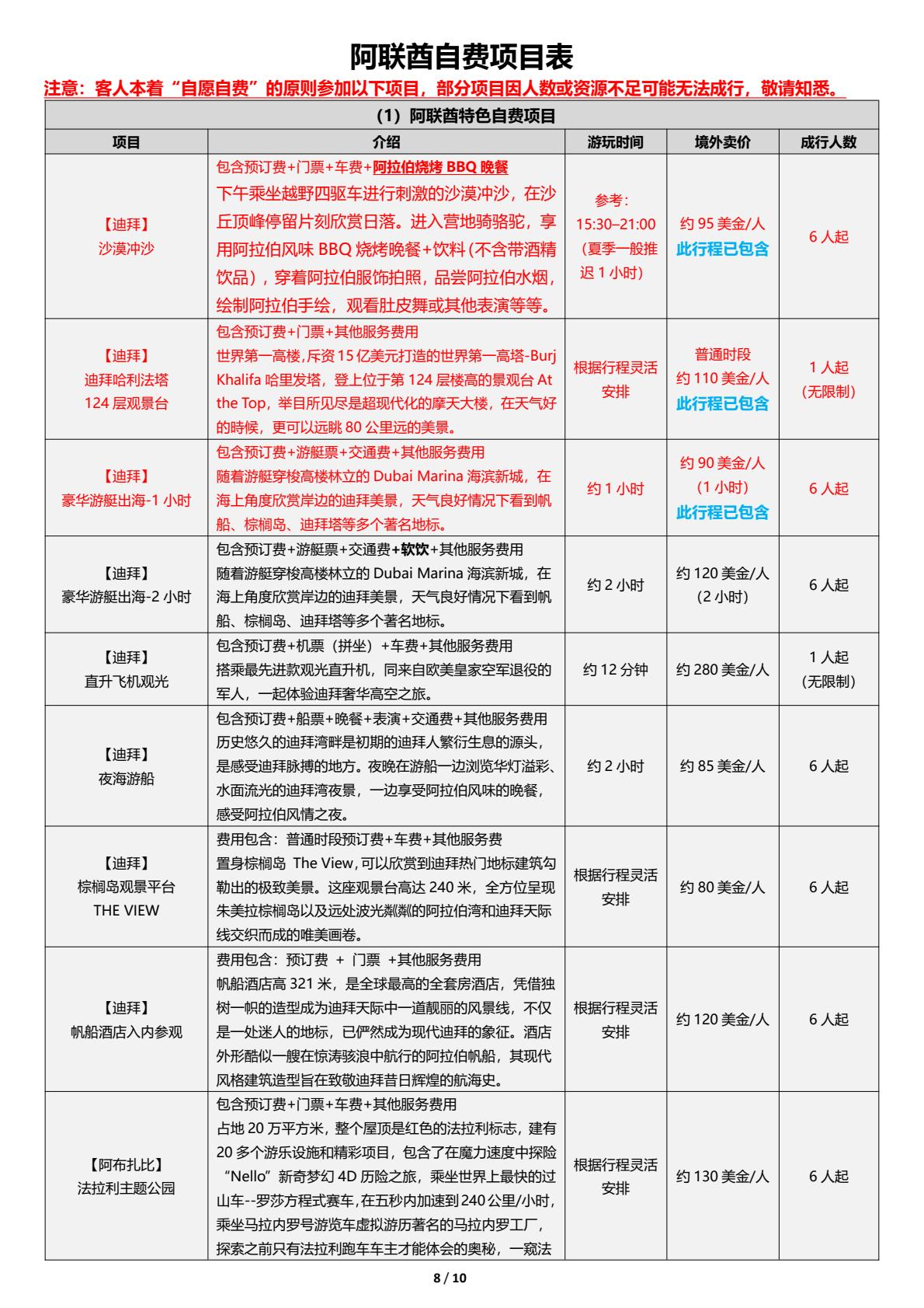 阿联酋迪拜6日游,游艇出海+沙漠冲沙+迪拜塔上塔+加长豪车体验