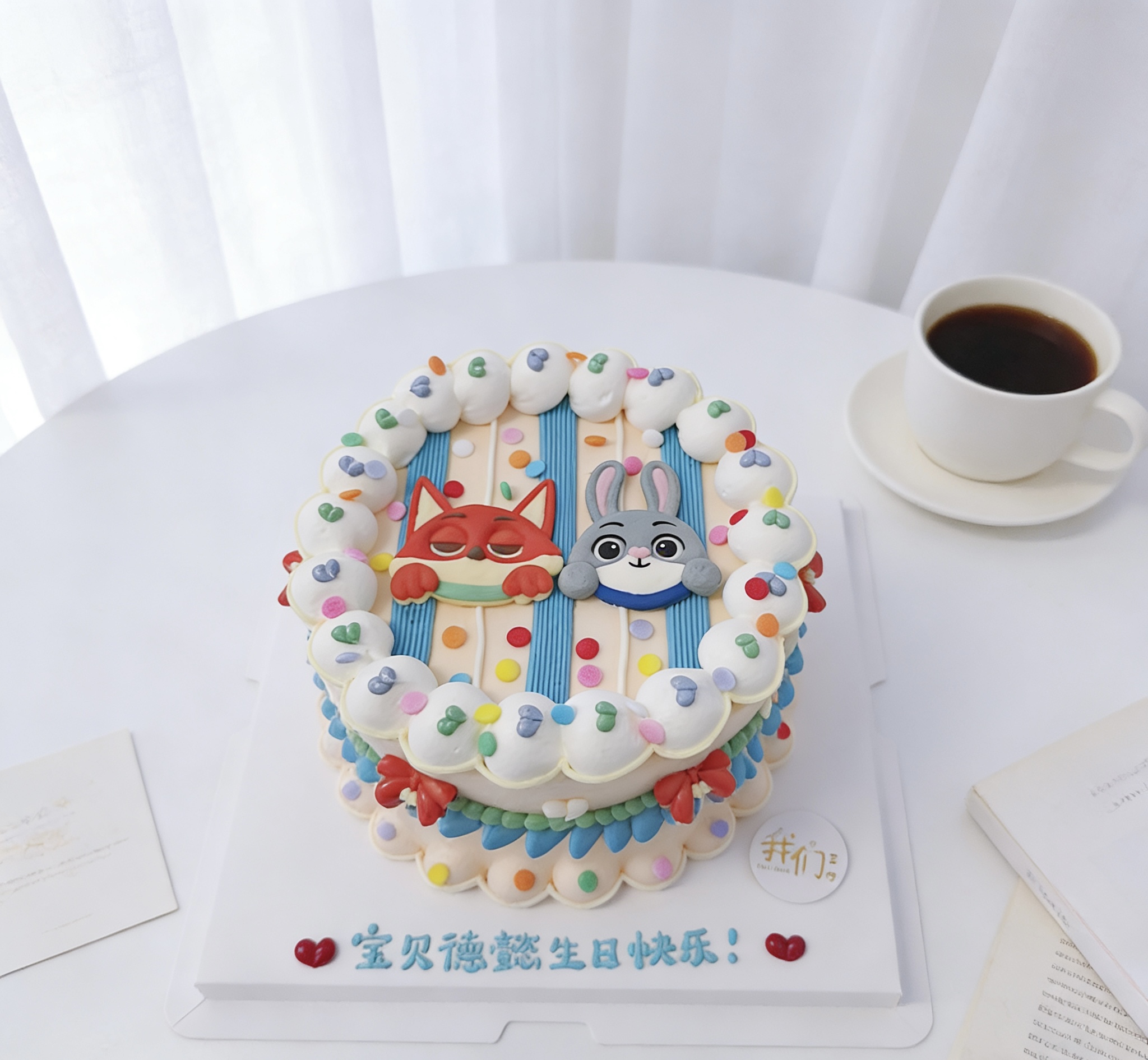 疯狂动物城尼克朱迪手绘卡通蛋糕-低糖处理无添加