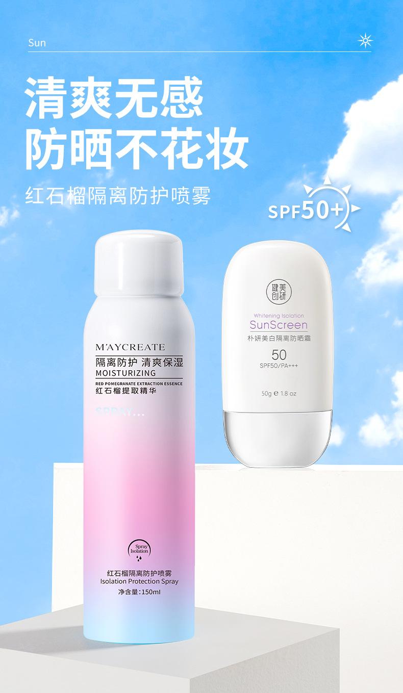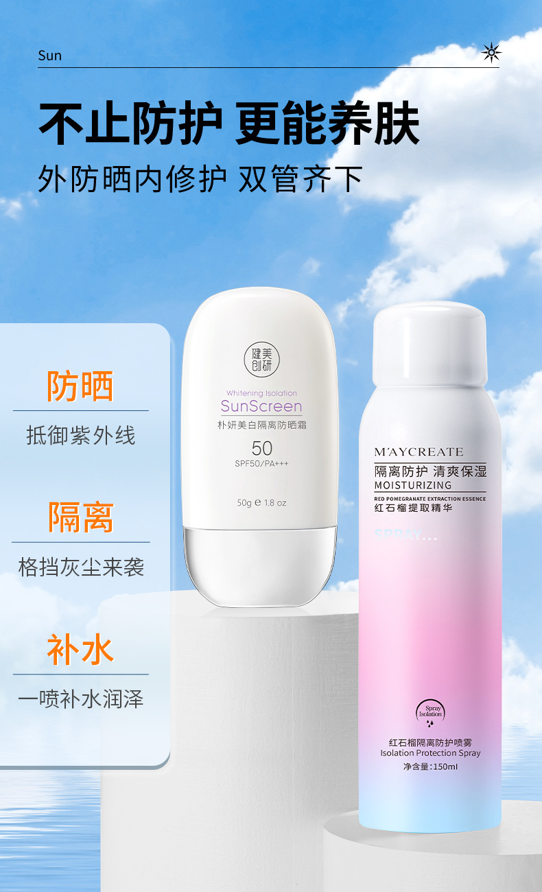 五一出游【现货秒发 抖音快手同款】健美创研红石榴防晒霜隔离喷雾 清爽细腻 美白防嗮 提亮肤色 隐形毛孔隔离霜