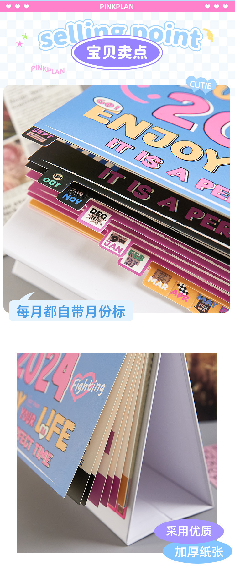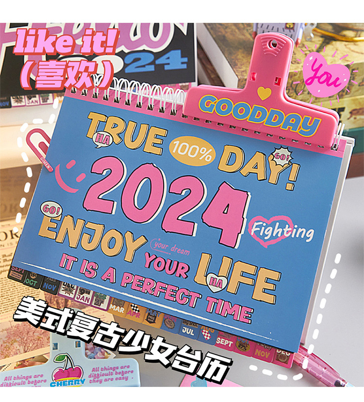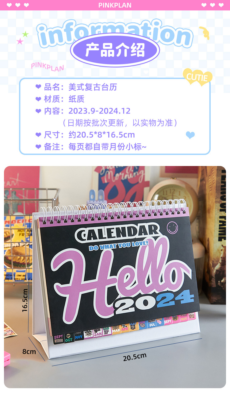 「数款可选!美式复古风」2024年台历创意简约办公计划本 居家日用家居饰品商务记事可爱桌面摆件日历