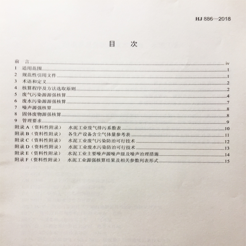 HJ886-2018污染源源强核算技术指南 水泥工业 中华人民共和国环境保护行业标准