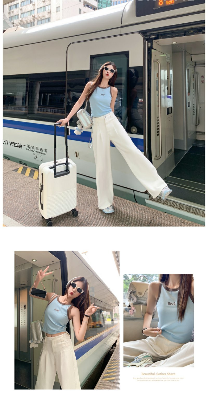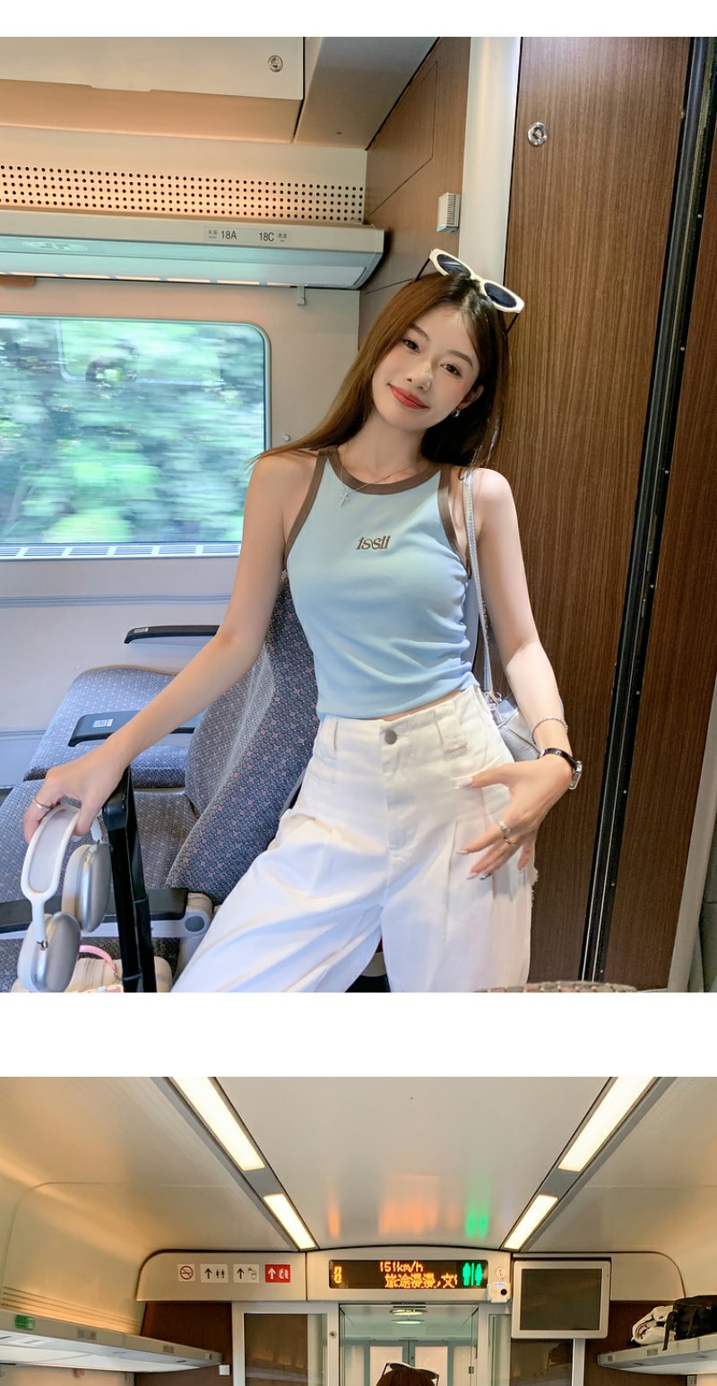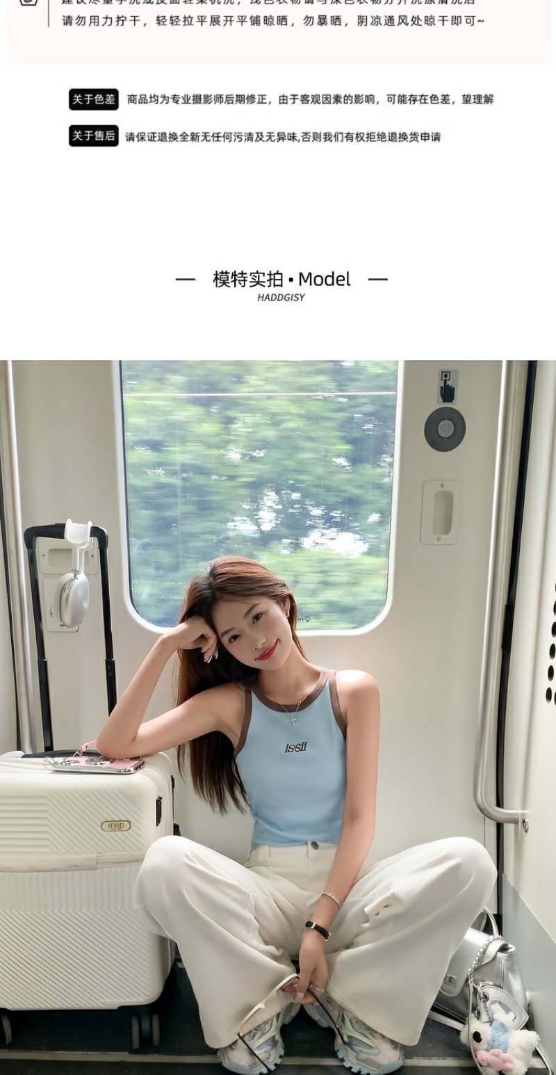 <曾小咸推荐>【韩范欧尼】蓝色撞棕色边背心
