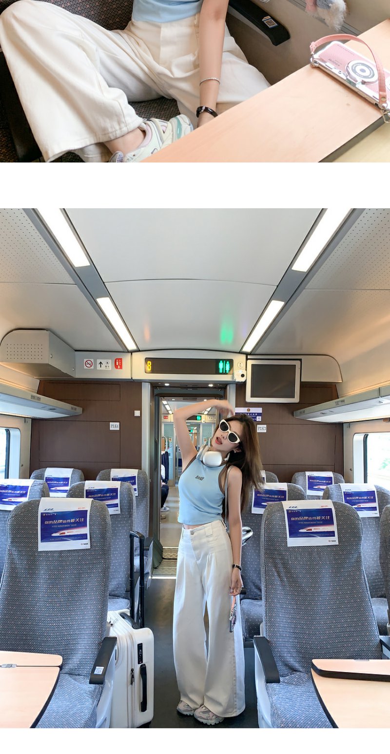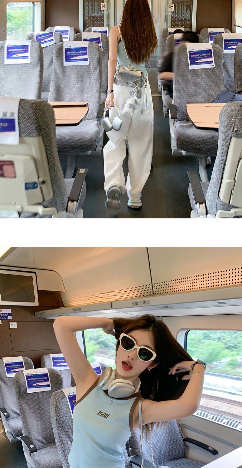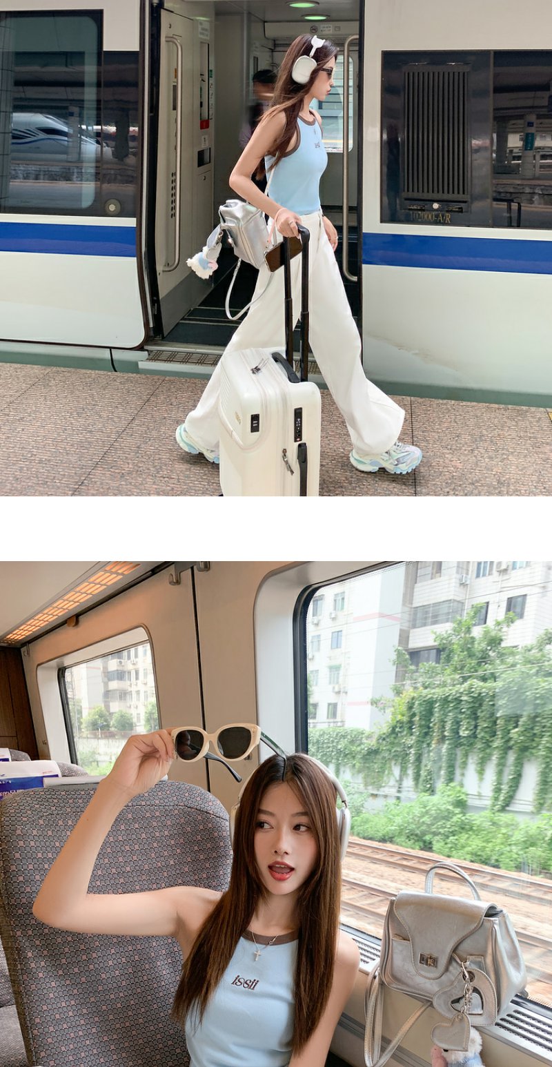 <曾小咸推荐>【韩范欧尼】蓝色撞棕色边背心