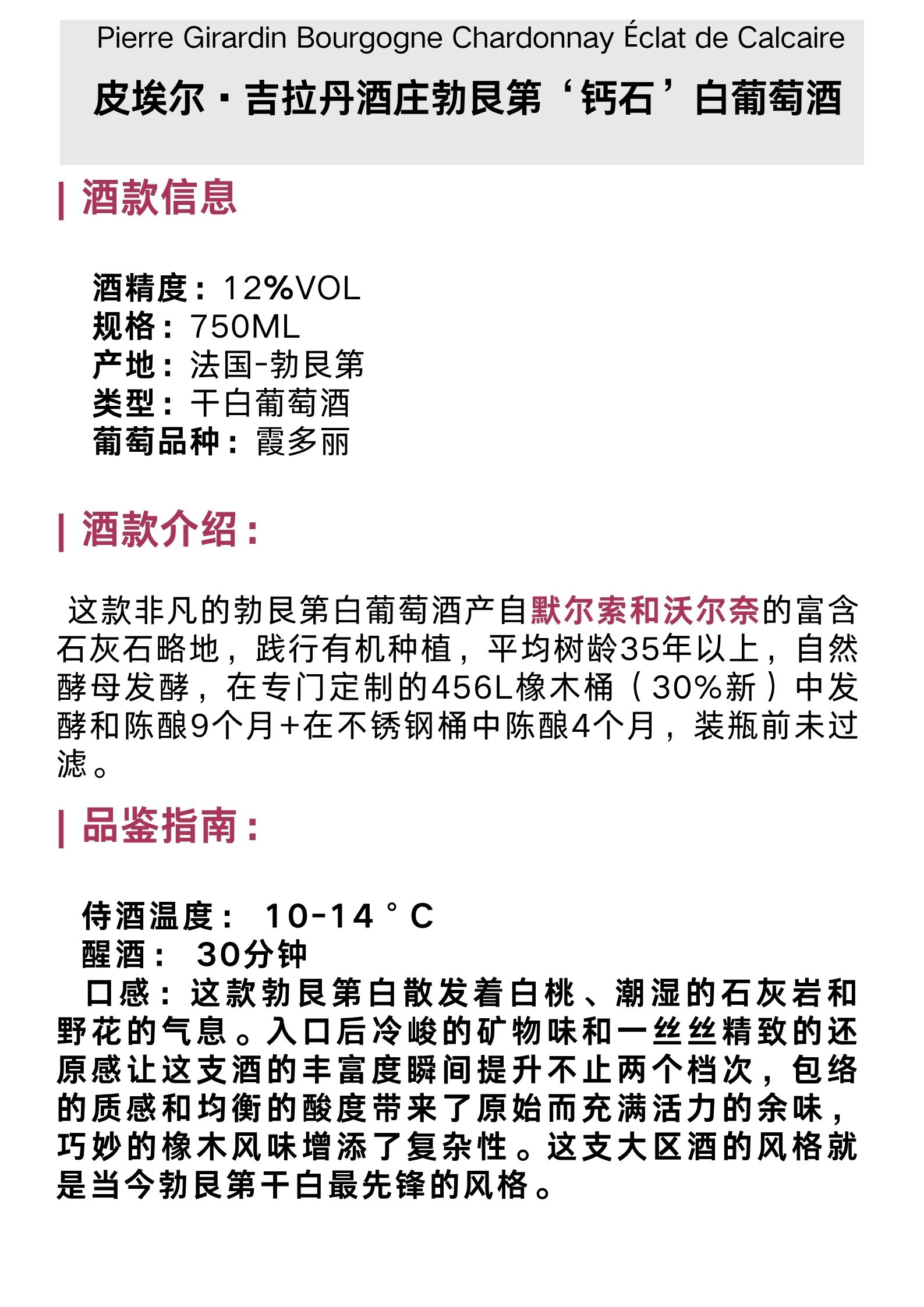 PVG钙石霞多丽大区白 Pierre Girardin Bourgogne Eclat De Calcaire