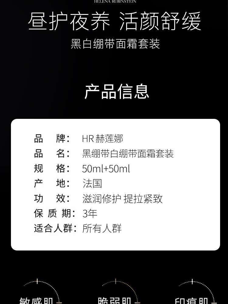 【保税仓】法国HR 赫莲娜黑绷带白绷带面霜套装 (黑绷带50ml+白绷带50ml)