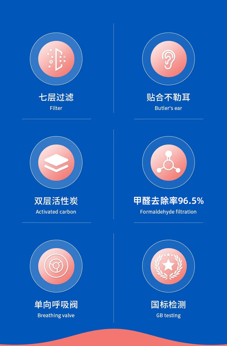 佳睦 防甲醛专用口罩双层活性炭口罩孕妇新办公室装修防二手烟异味防雾霾灰尘七层防护带呼吸阀独立包装5枚 100049086099
