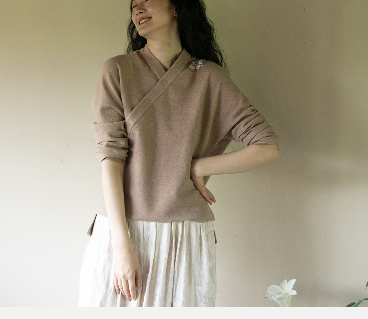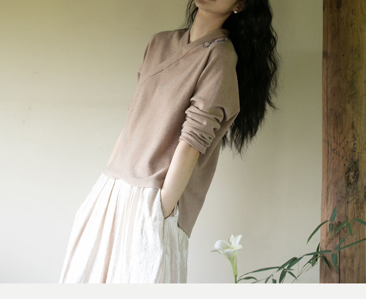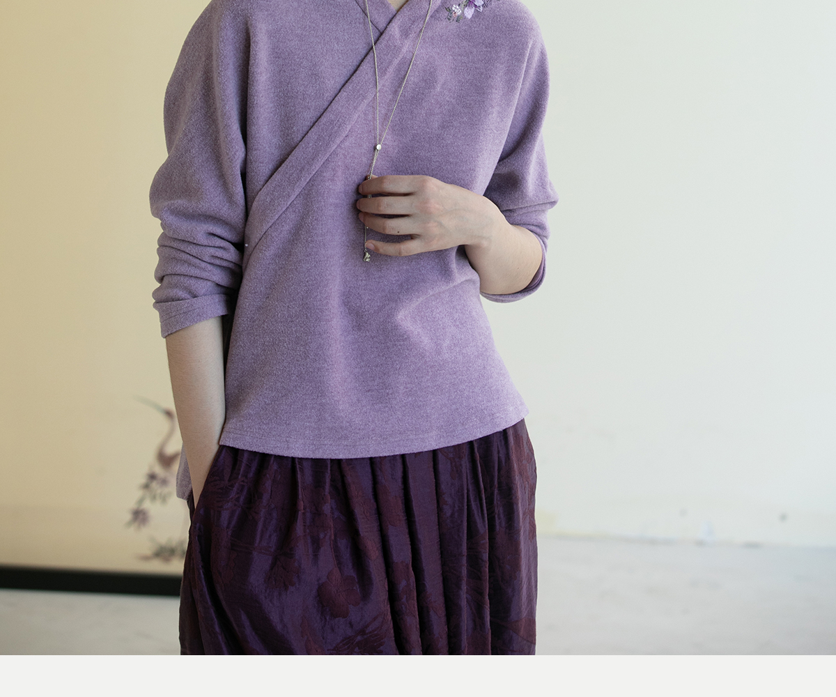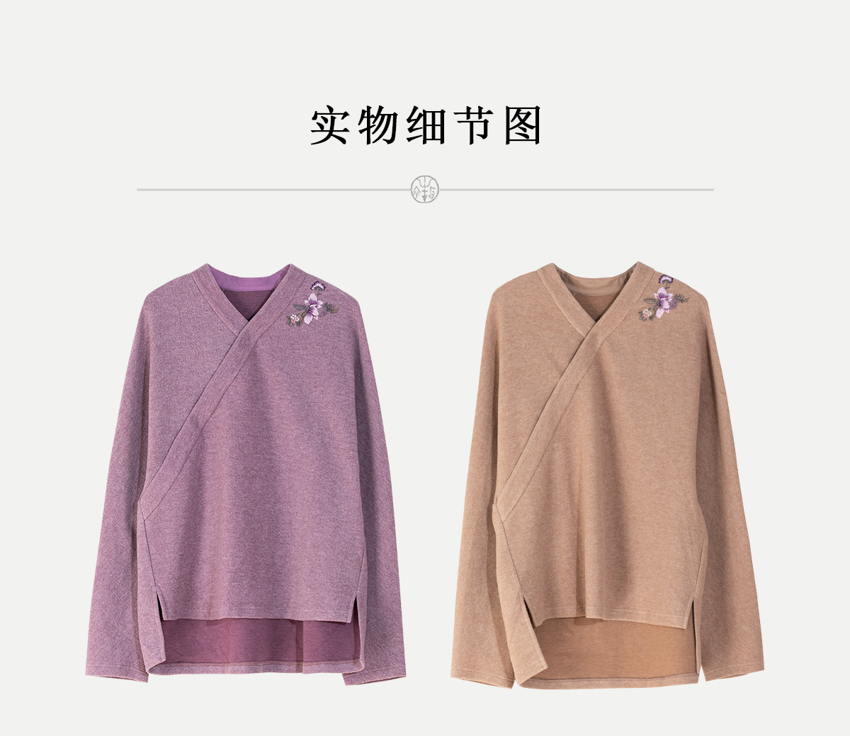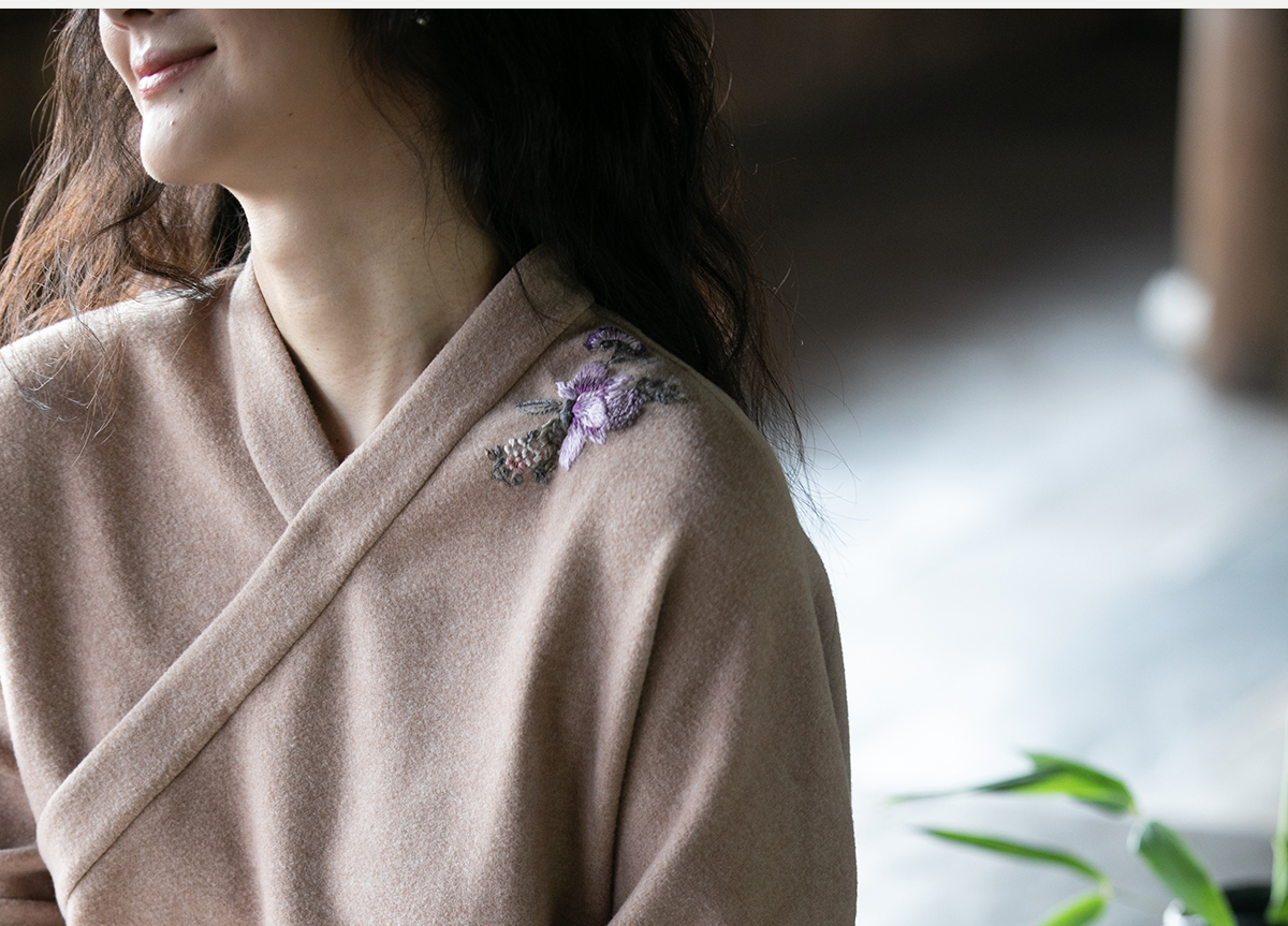 牧衣游原创 手工刺绣棉混纺绒感衬衫女新款禅意复古百搭上衣 云行