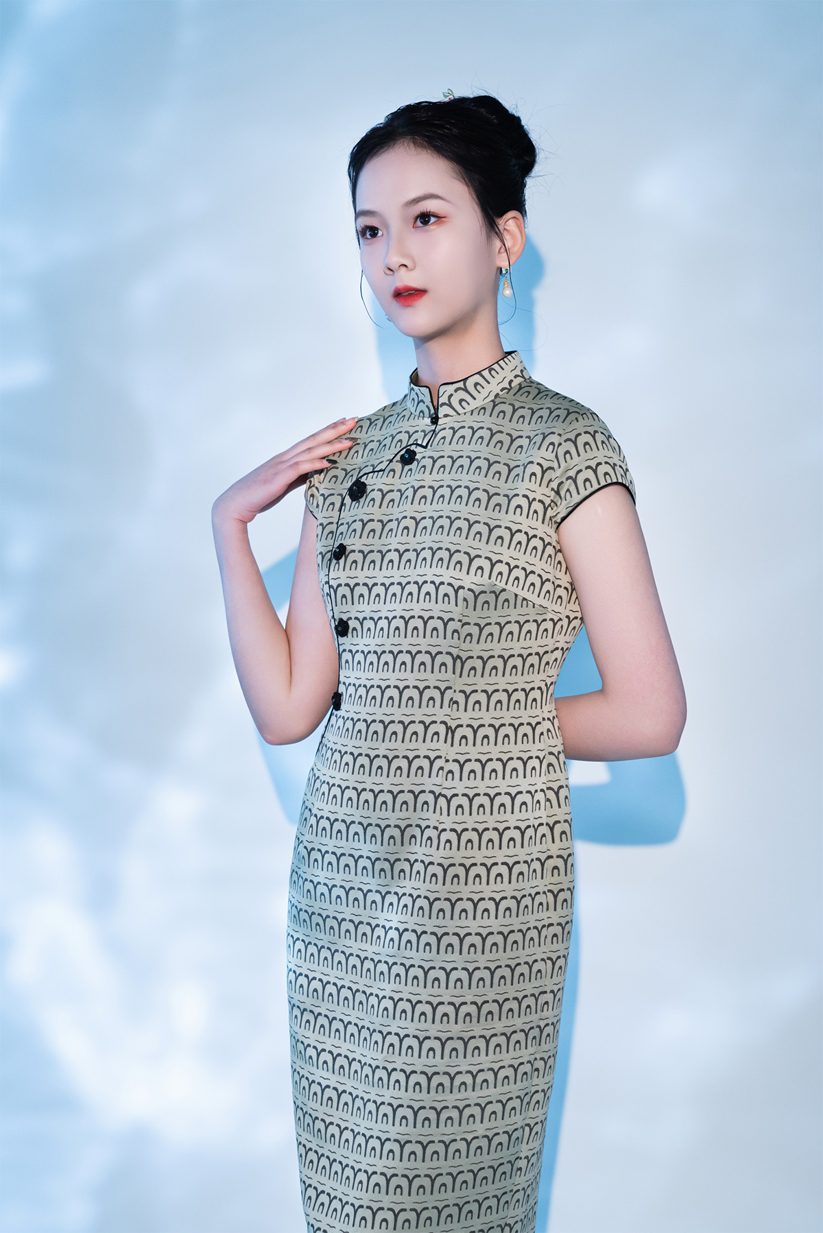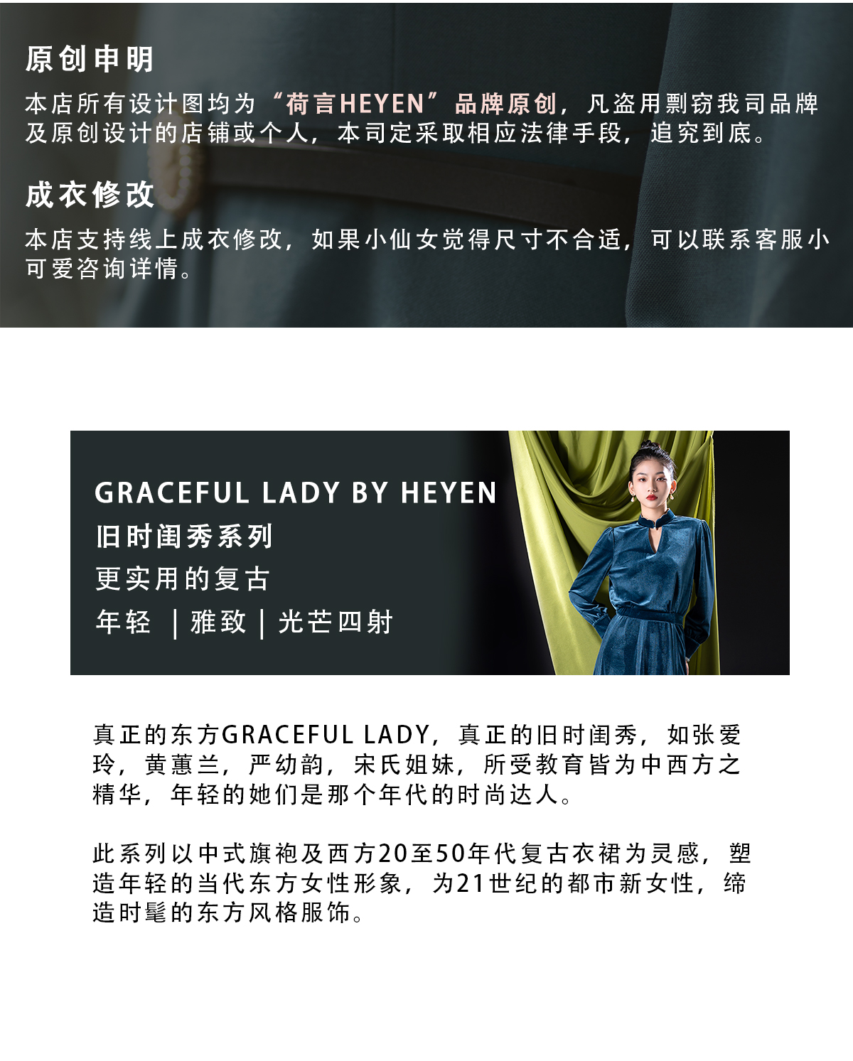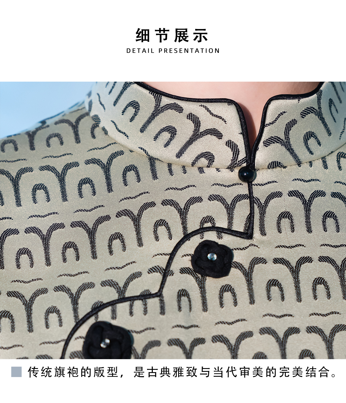 荷言GL旧时闺秀原创 帘幕重重 古文提花肌理人丝琵琶襟改良旗袍裙