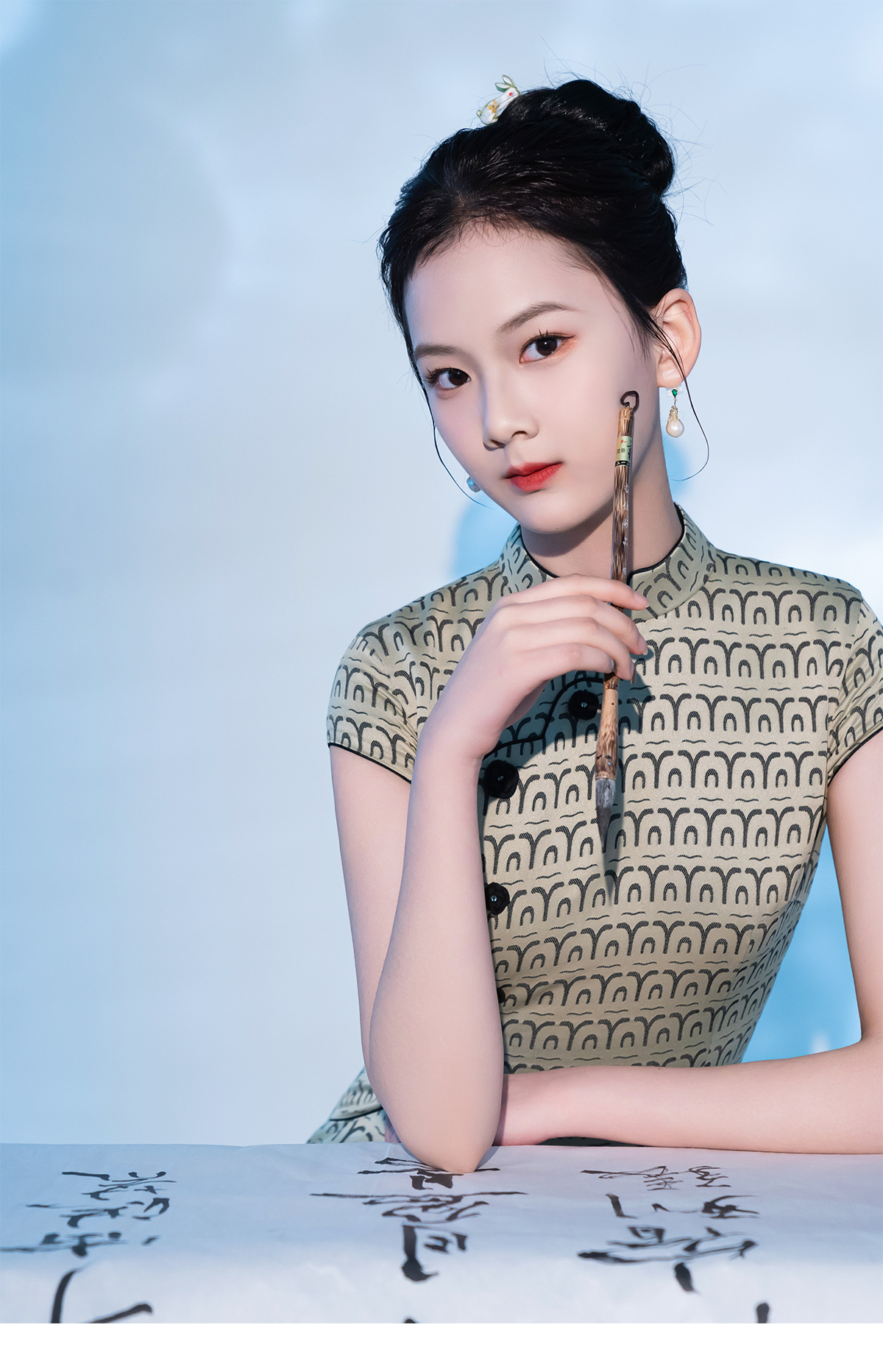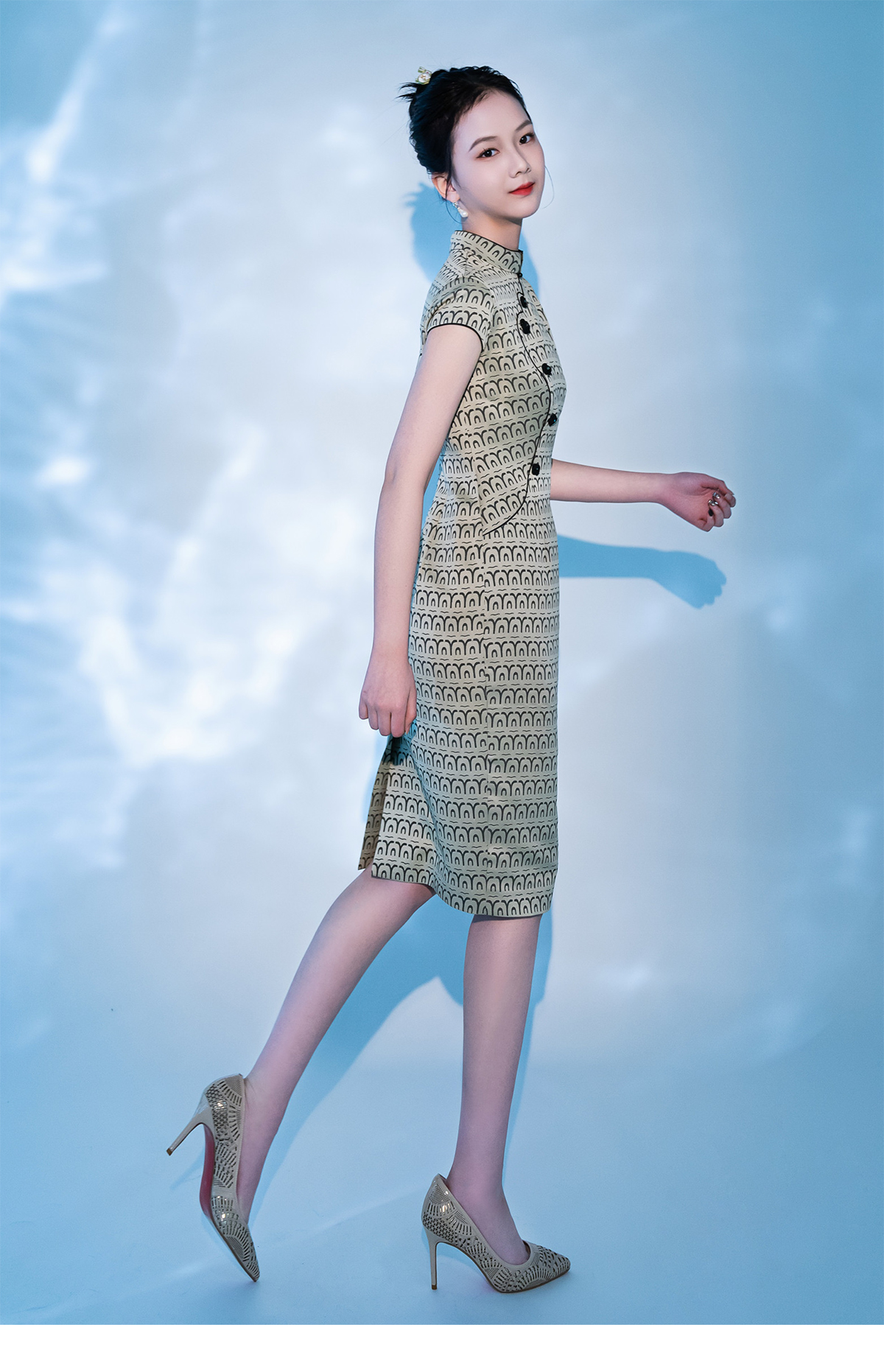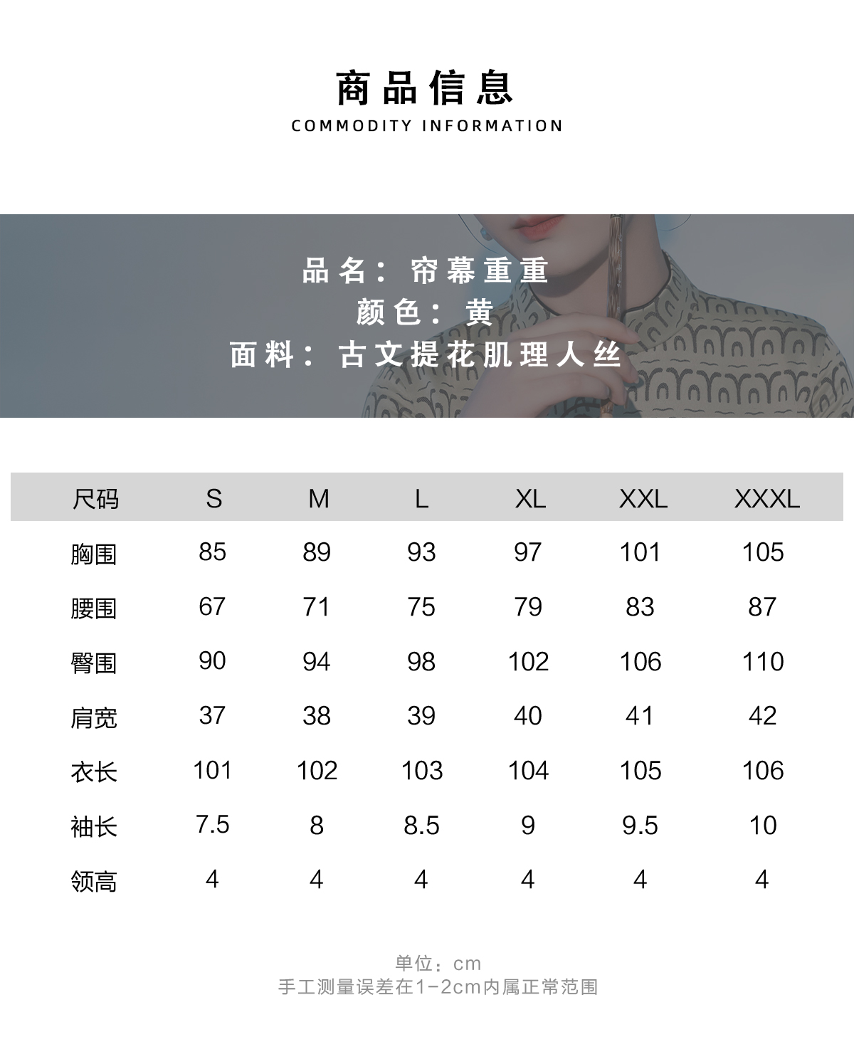 荷言GL旧时闺秀原创 帘幕重重 古文提花肌理人丝琵琶襟改良旗袍裙