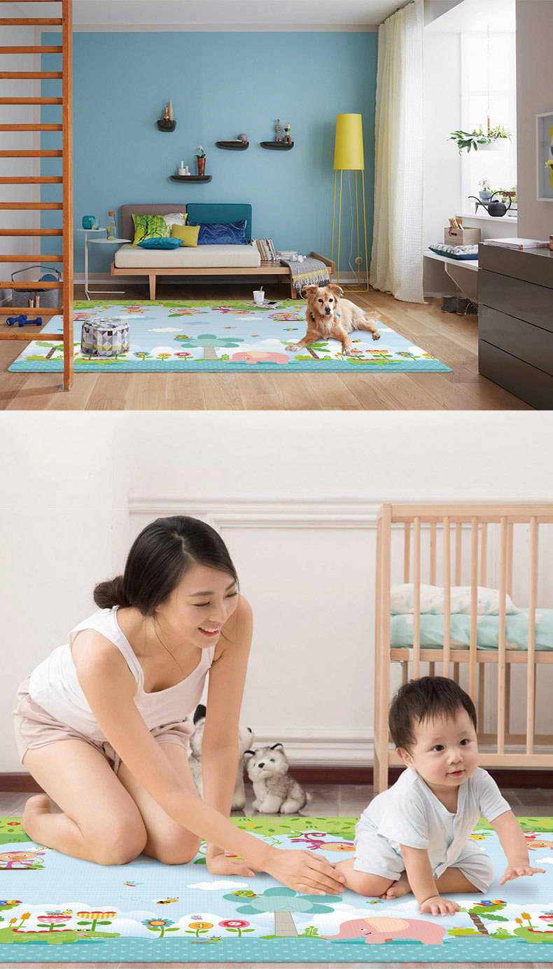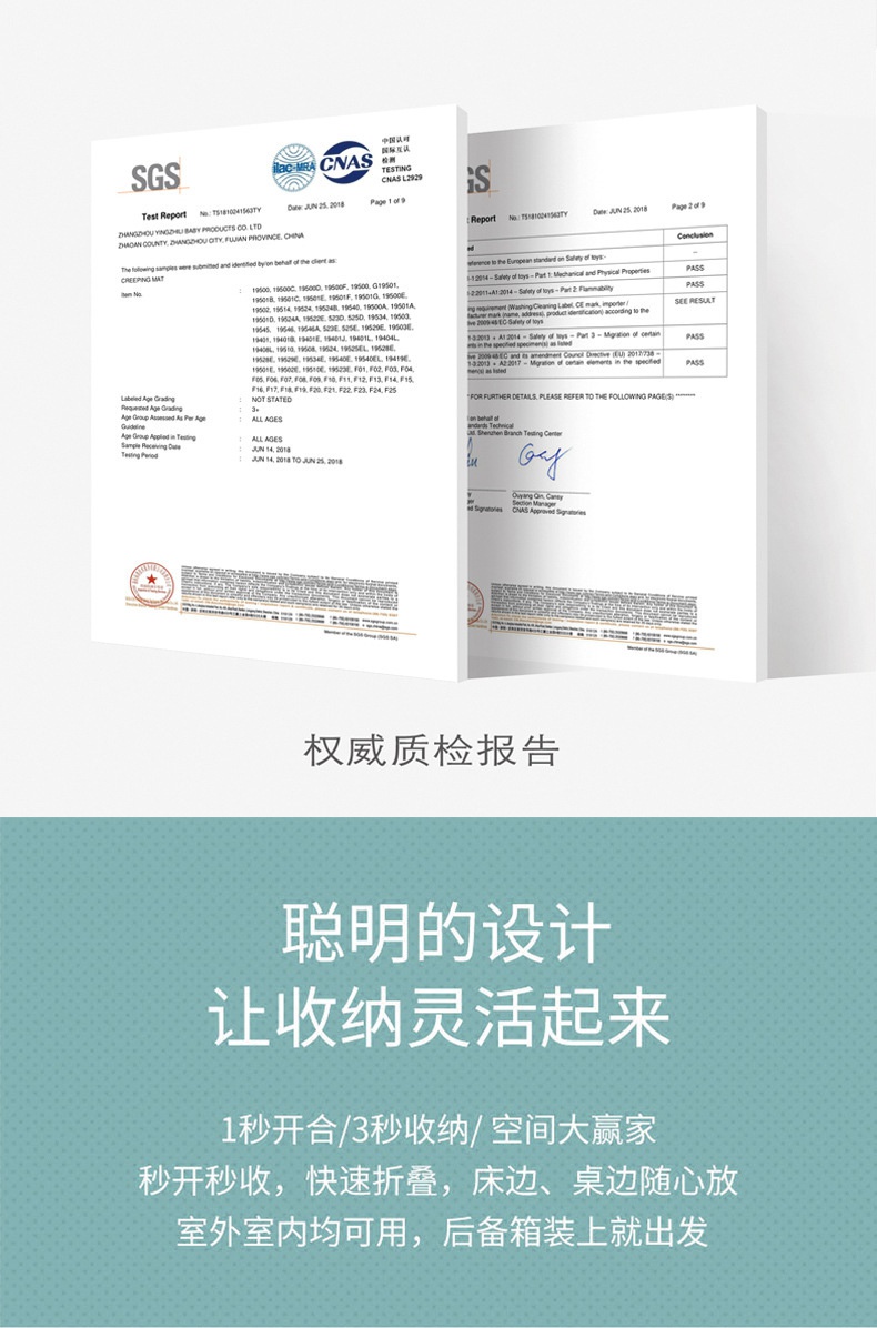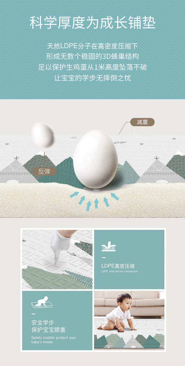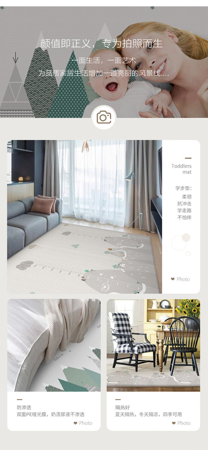 可折叠宝宝爬行垫200*180*1CM加厚婴儿客厅家用爬爬垫可折叠儿童无味泡沫地垫子送手提袋【包边】