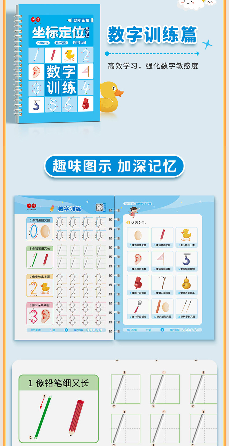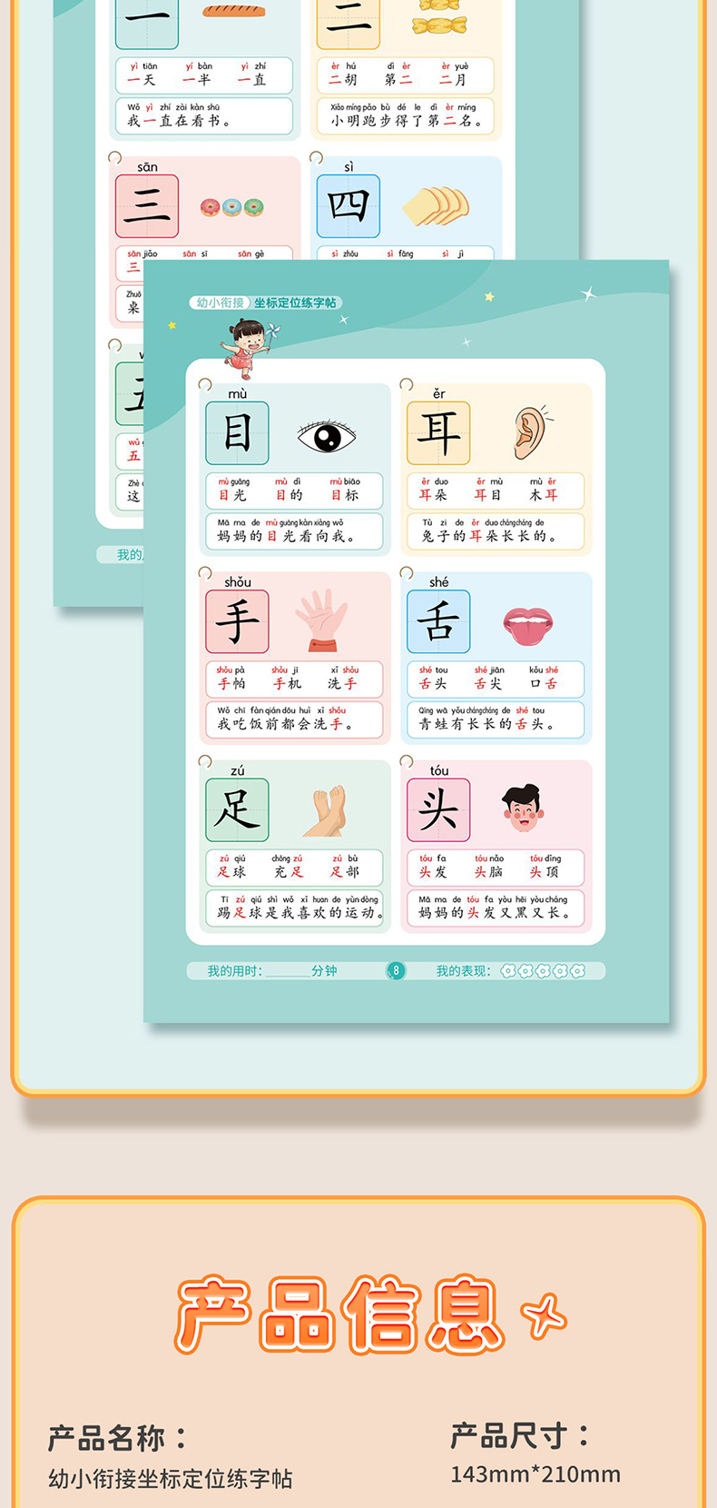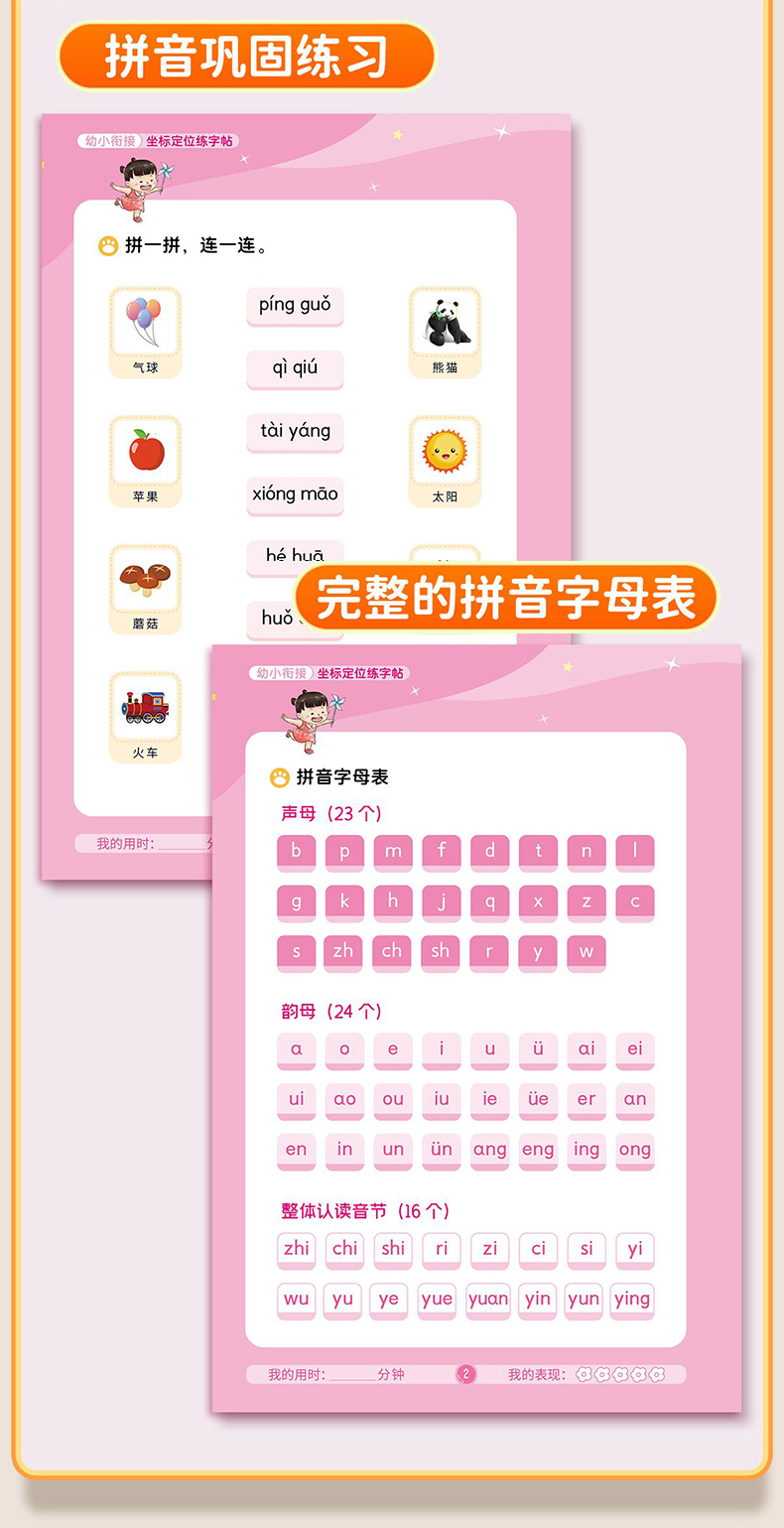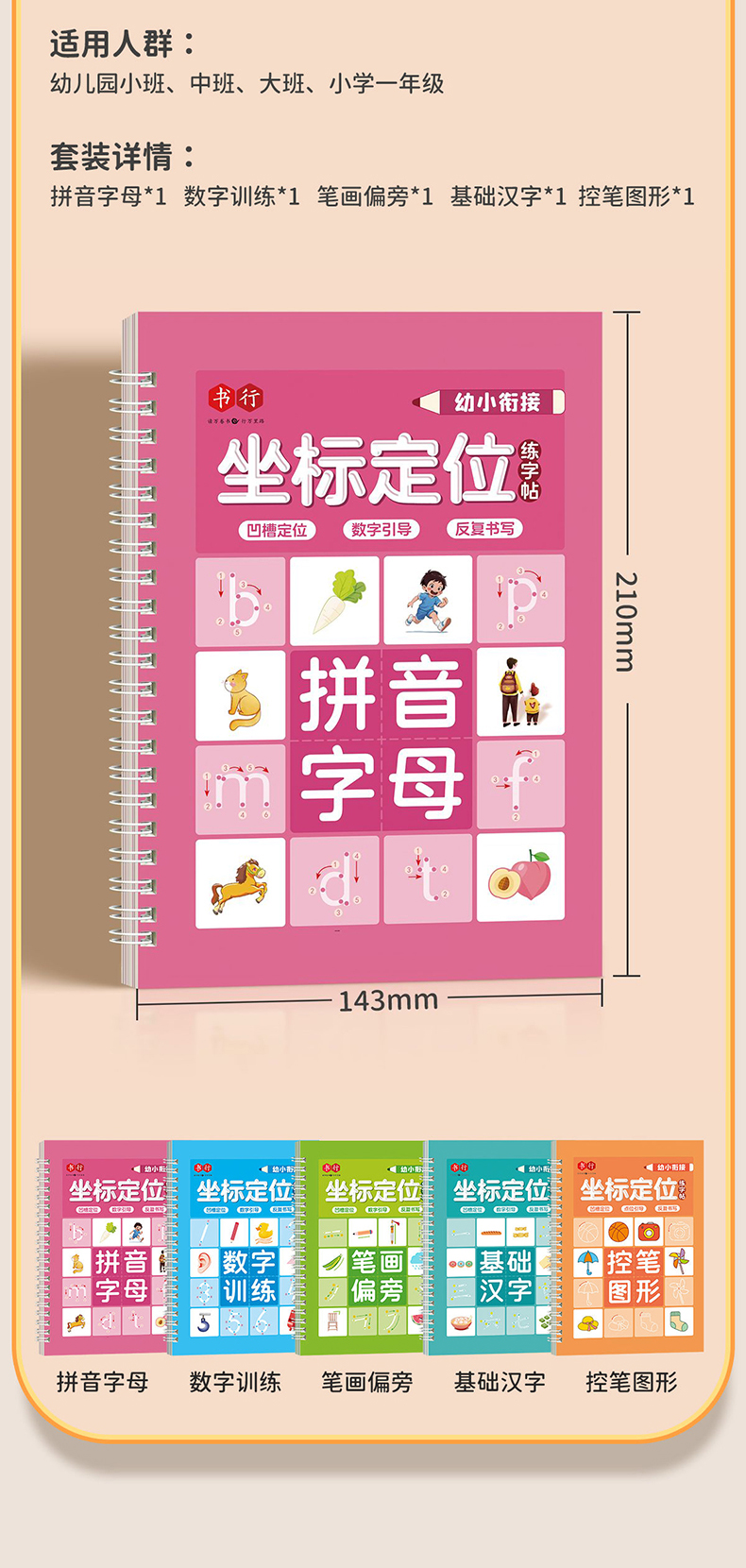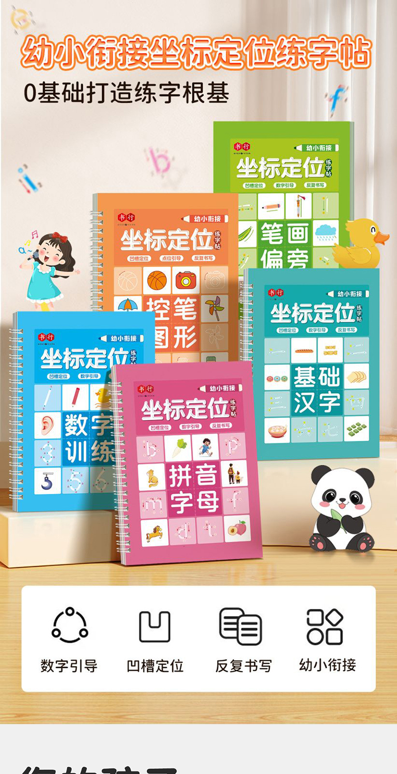 坐位定位凹槽练字帖幼小启蒙练字拼音字母数字训练汉字启蒙坐标幼小衔接描红本