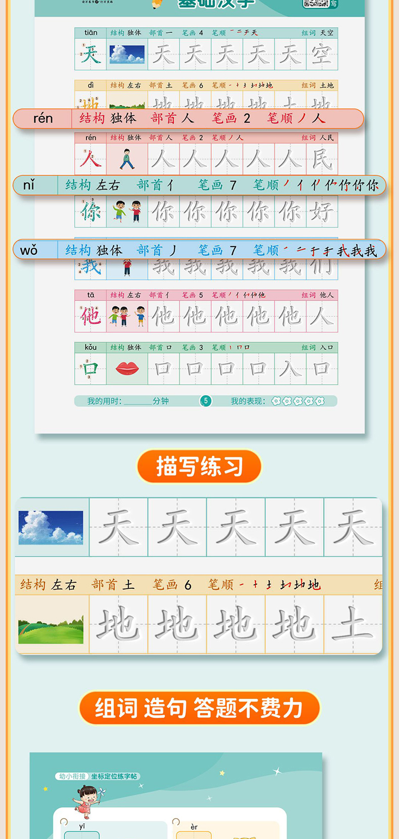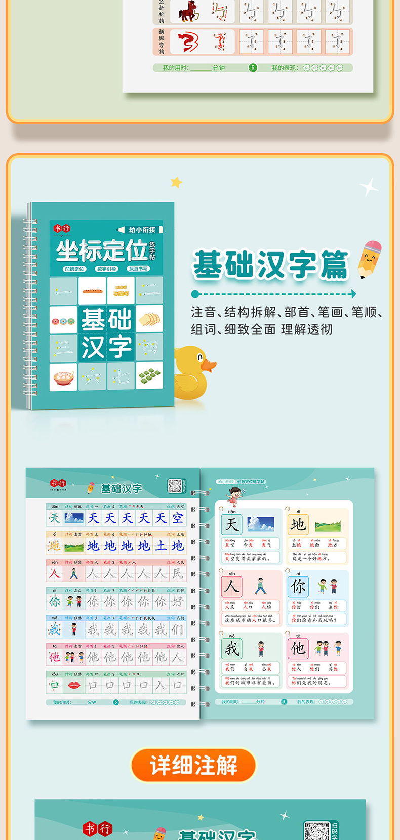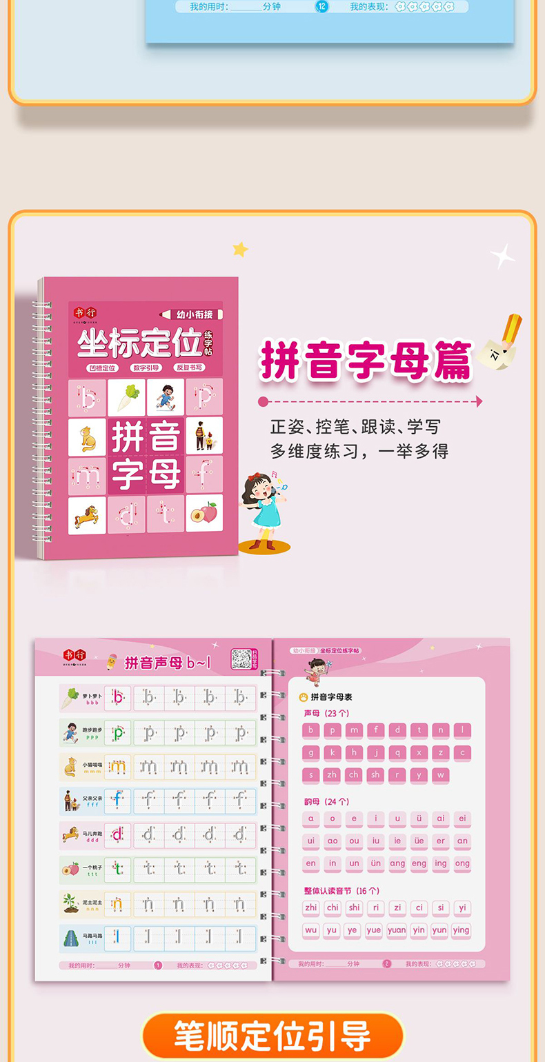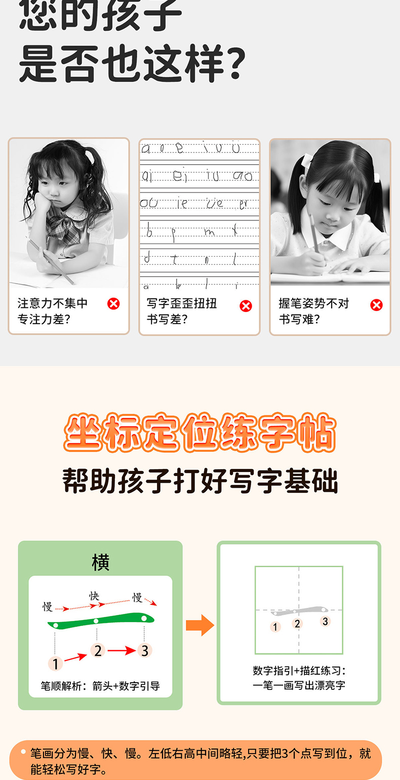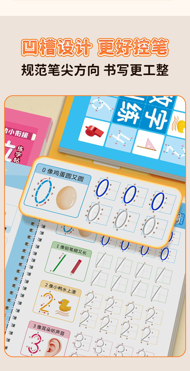 坐位定位凹槽练字帖幼小启蒙练字拼音字母数字训练汉字启蒙坐标幼小衔接描红本