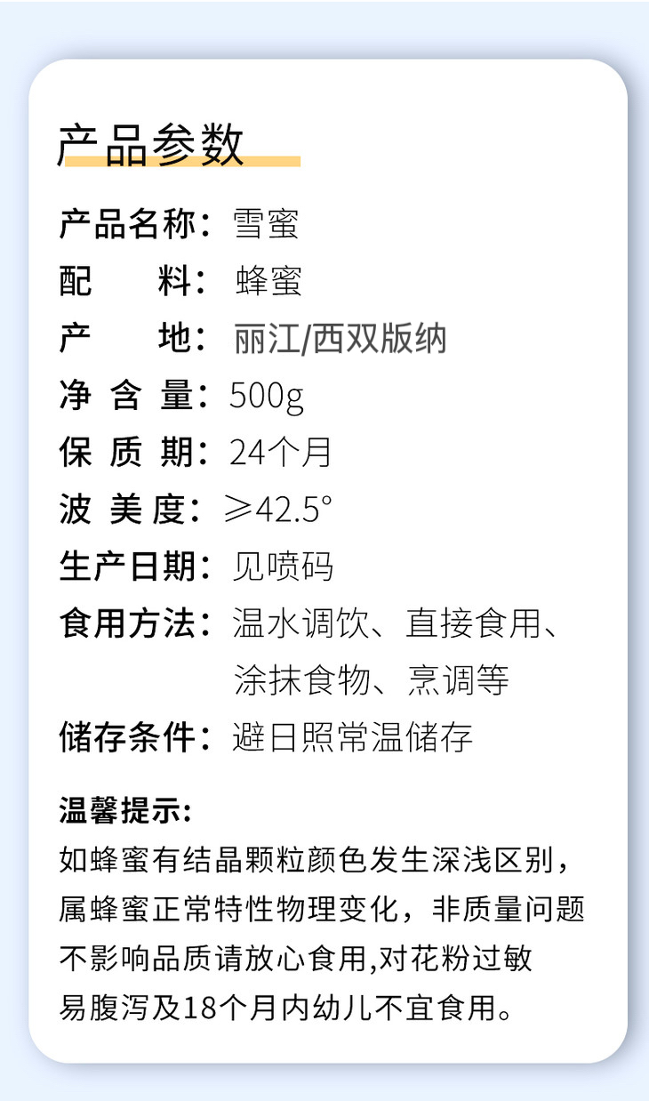 【云蜜典范 云南雪蜜】500G一瓶,天然蜜源,雪山气候独特,质地稠厚,晶莹润泽,口感绵柔丝滑,甜而不腻,香气四溢~