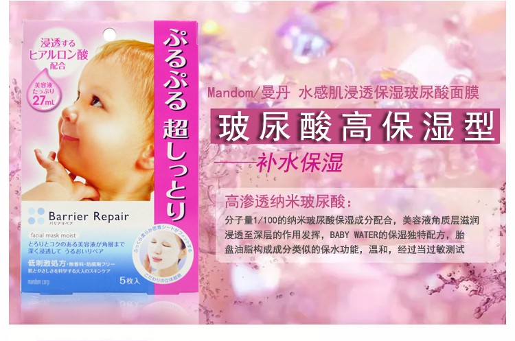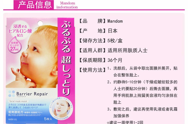 MANDOM曼丹 16版超滋润玻尿酸面膜 5片 粉色 日本