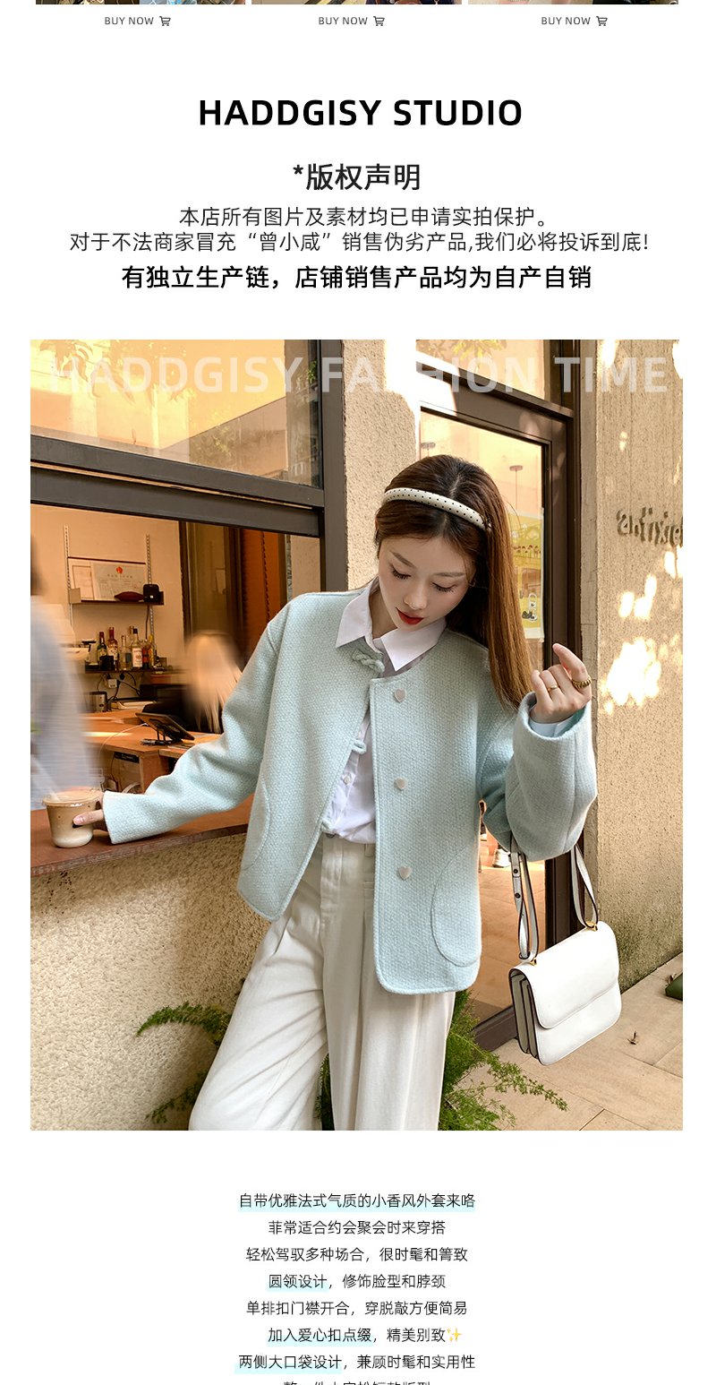 【269元任选2件】现货!成本巨贵,拍下包赚!法式蓝色爱心扣小香风短外套