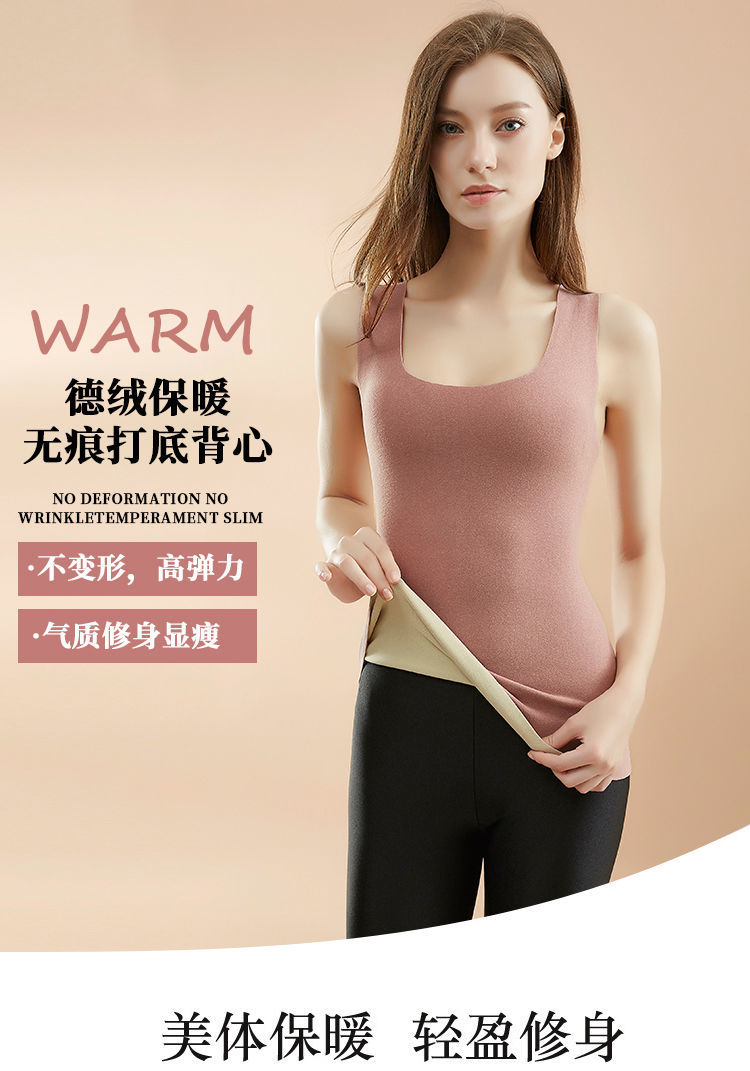 保暖背心女恒温自发热德绒无痕内穿打底衫防寒加绒加厚秋衣秋冬季