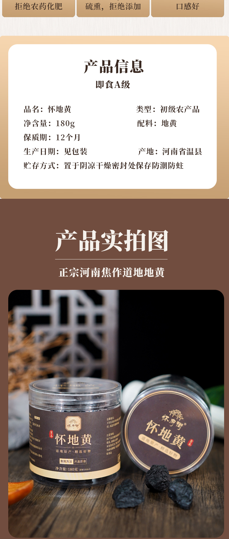 【真一粉丝专享】正宗温县熟地黄180g*2罐