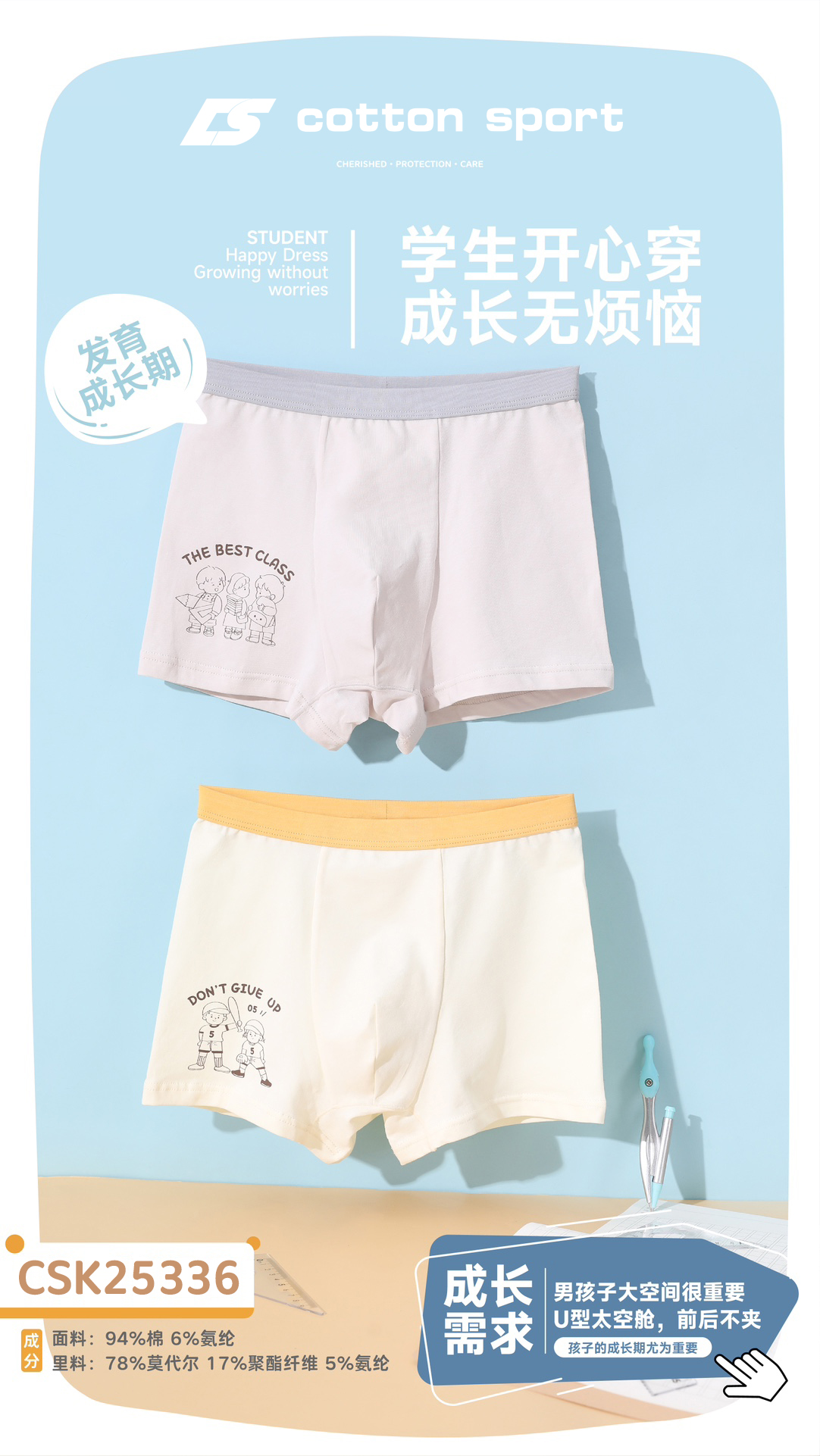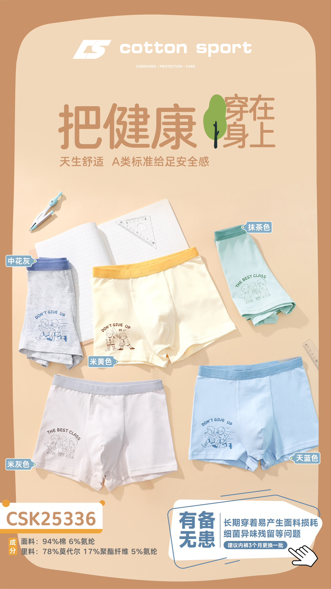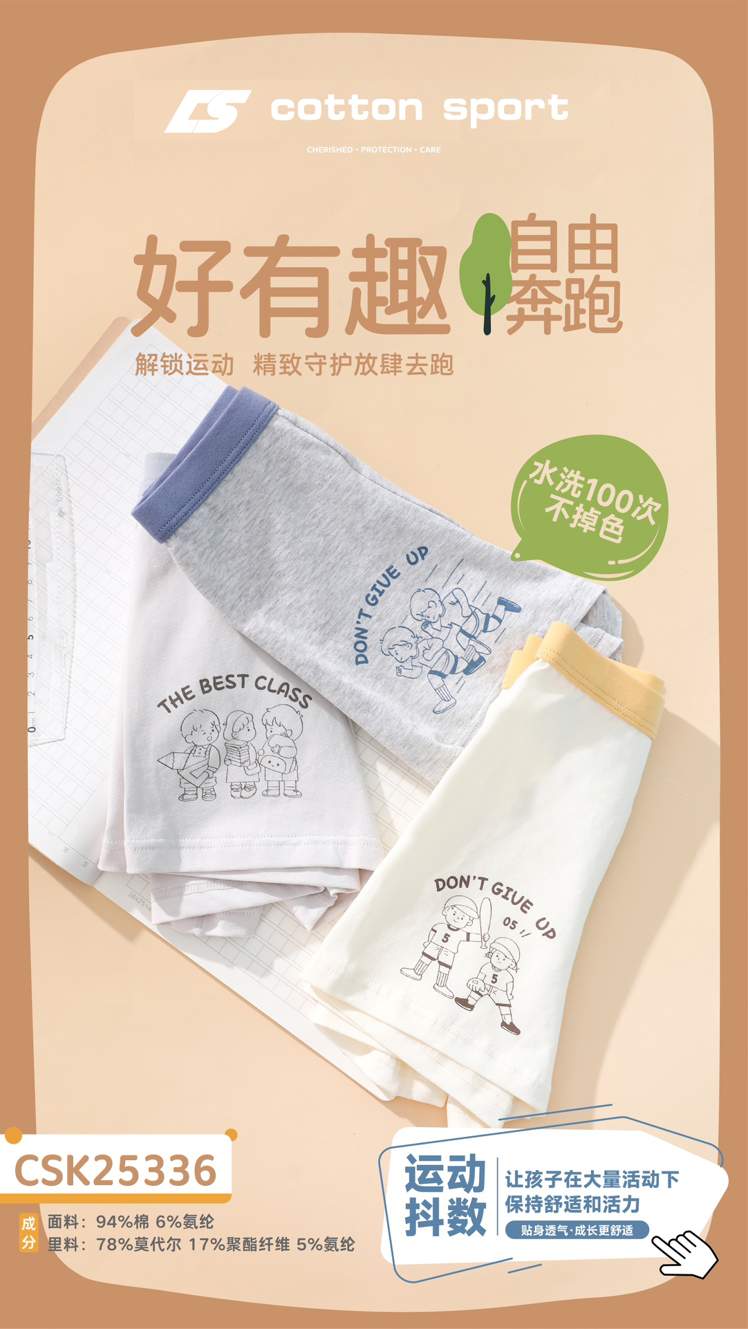 【3条装】男童平角内裤混色儿童棉底裤男宝内裤【CSK25336】