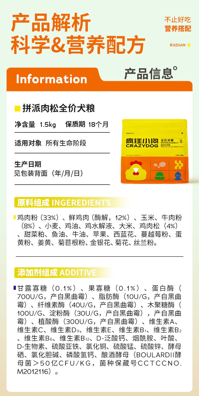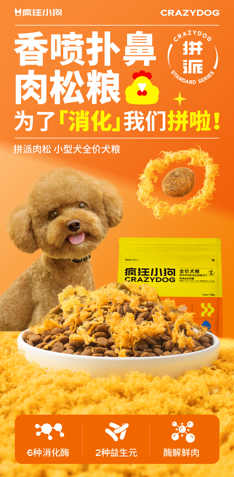 【双12囤粮热卖】疯狂小狗 拼派肉松粮狗粮1.5kg*7包 泰迪比熊博美小型犬专用通用