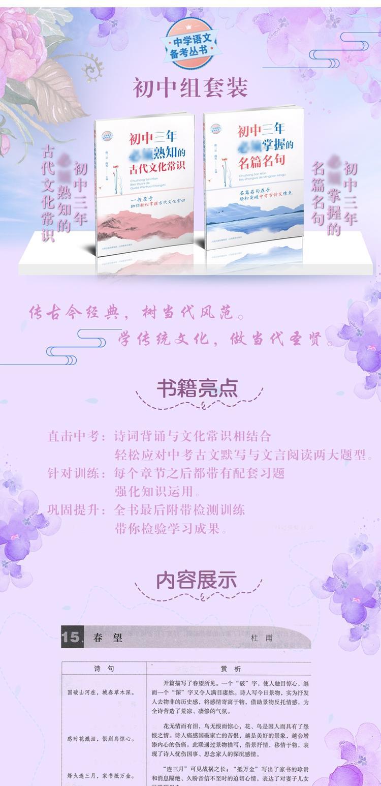 初中三年熟知的古代文化常识 初中三年掌握的名篇名句 套装 语文知识 诗词文化