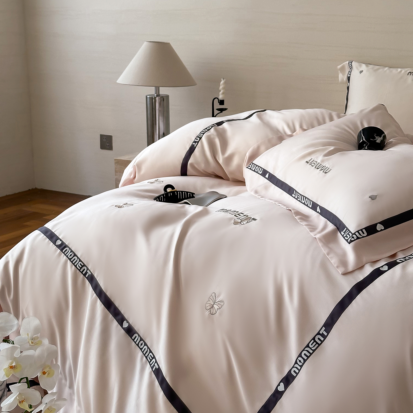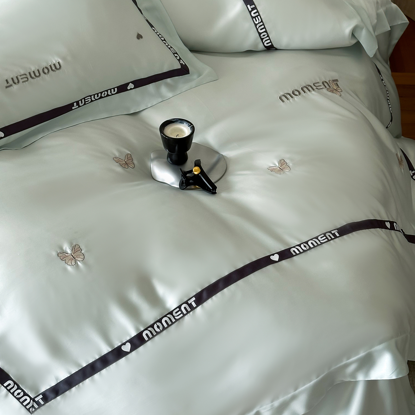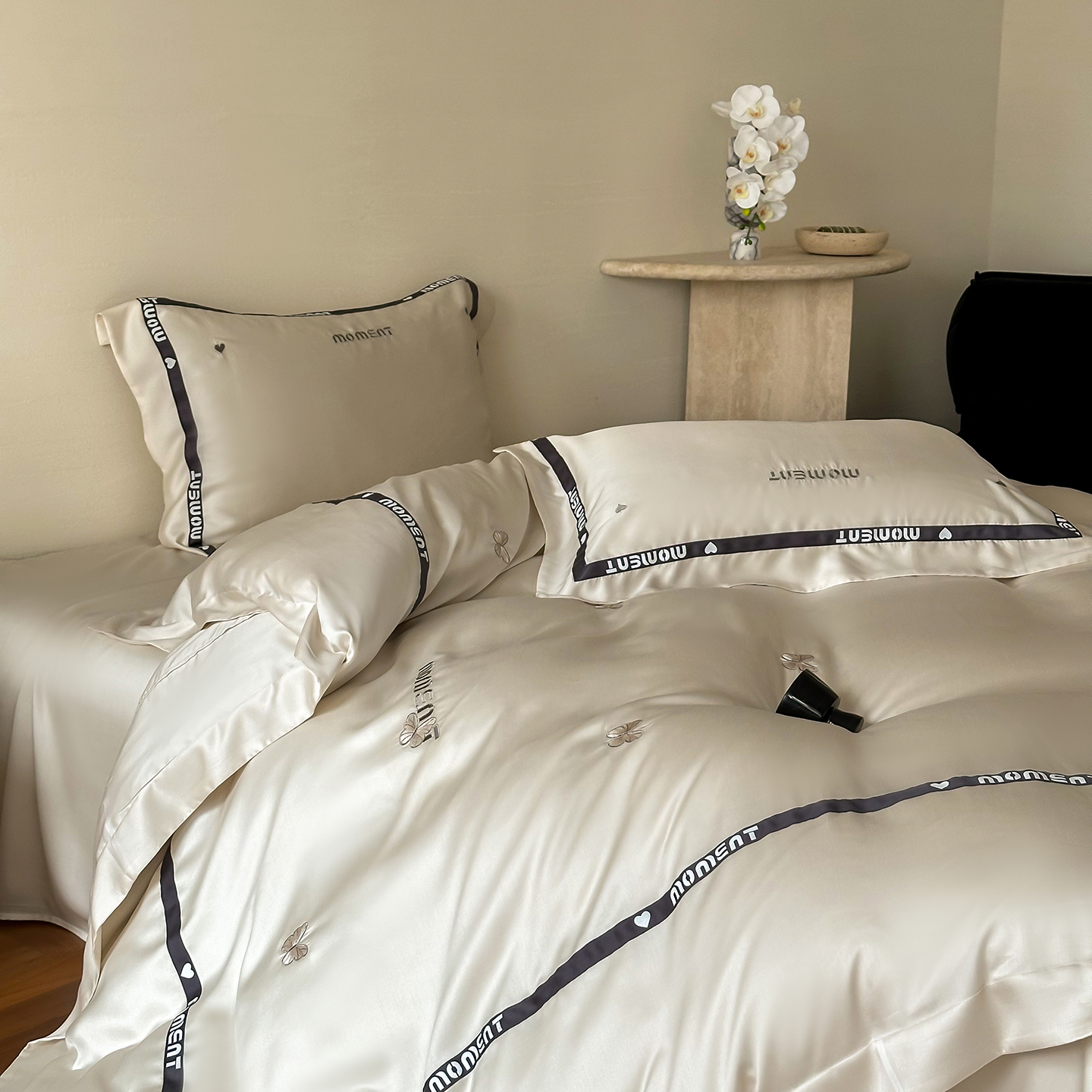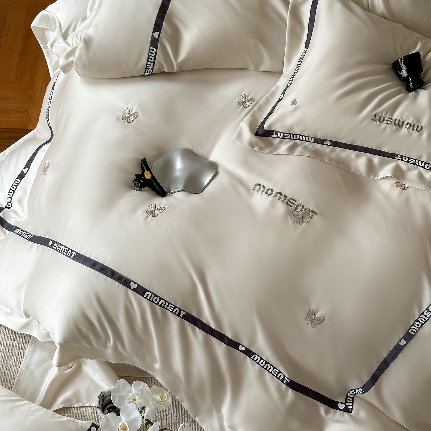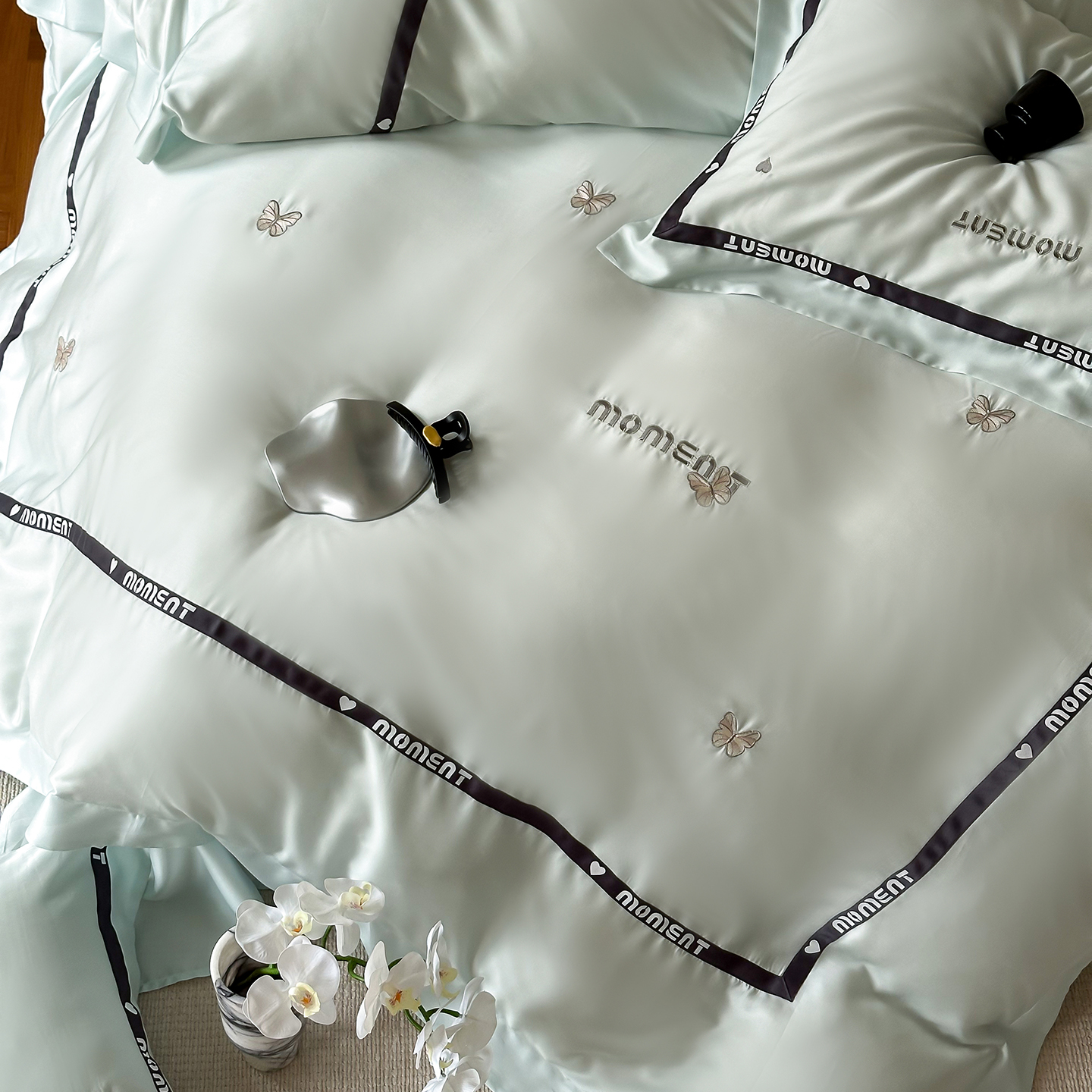 60S奥地利进口兰精天丝绣花黑边四件套