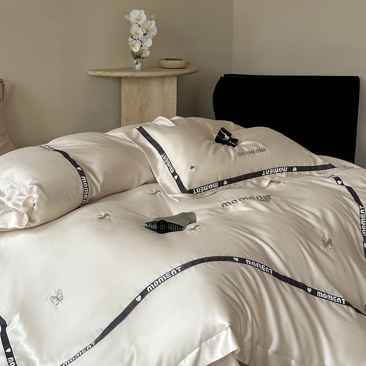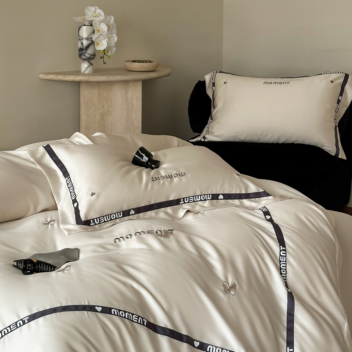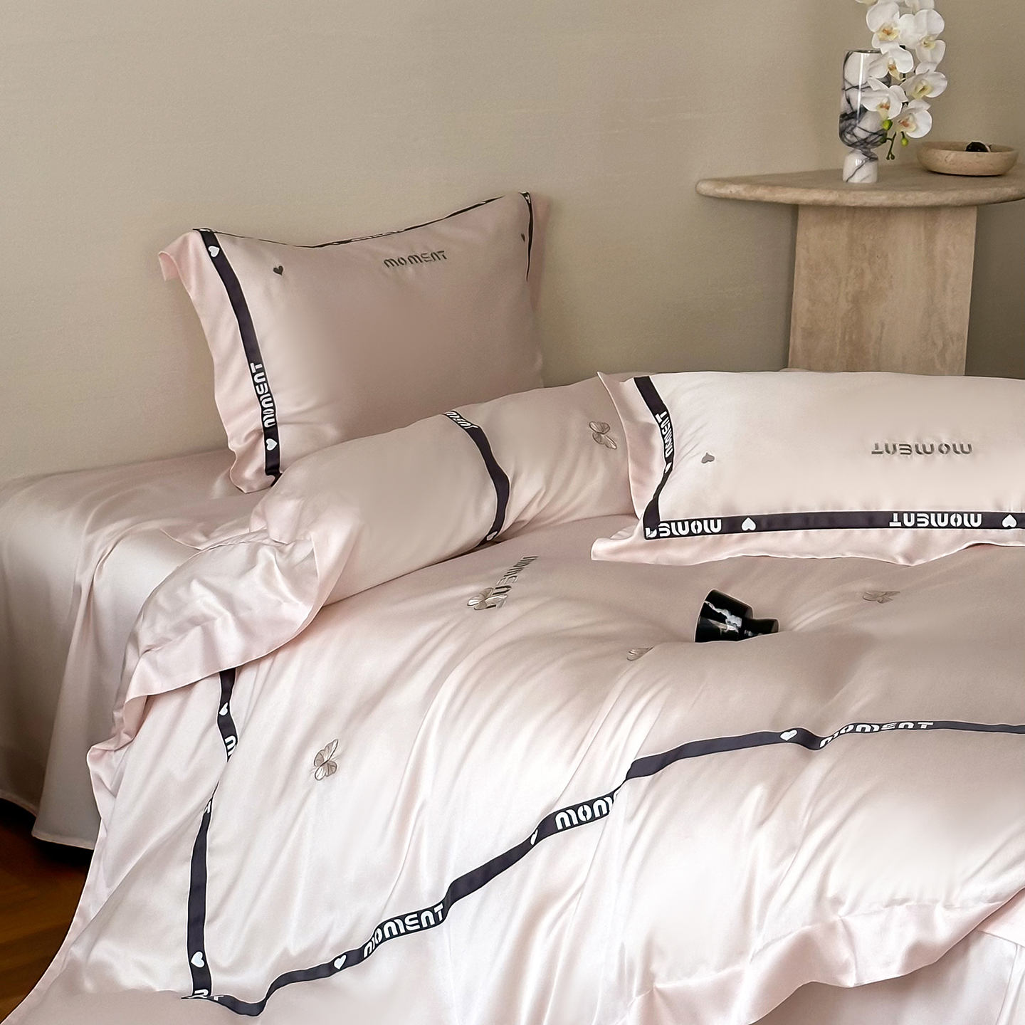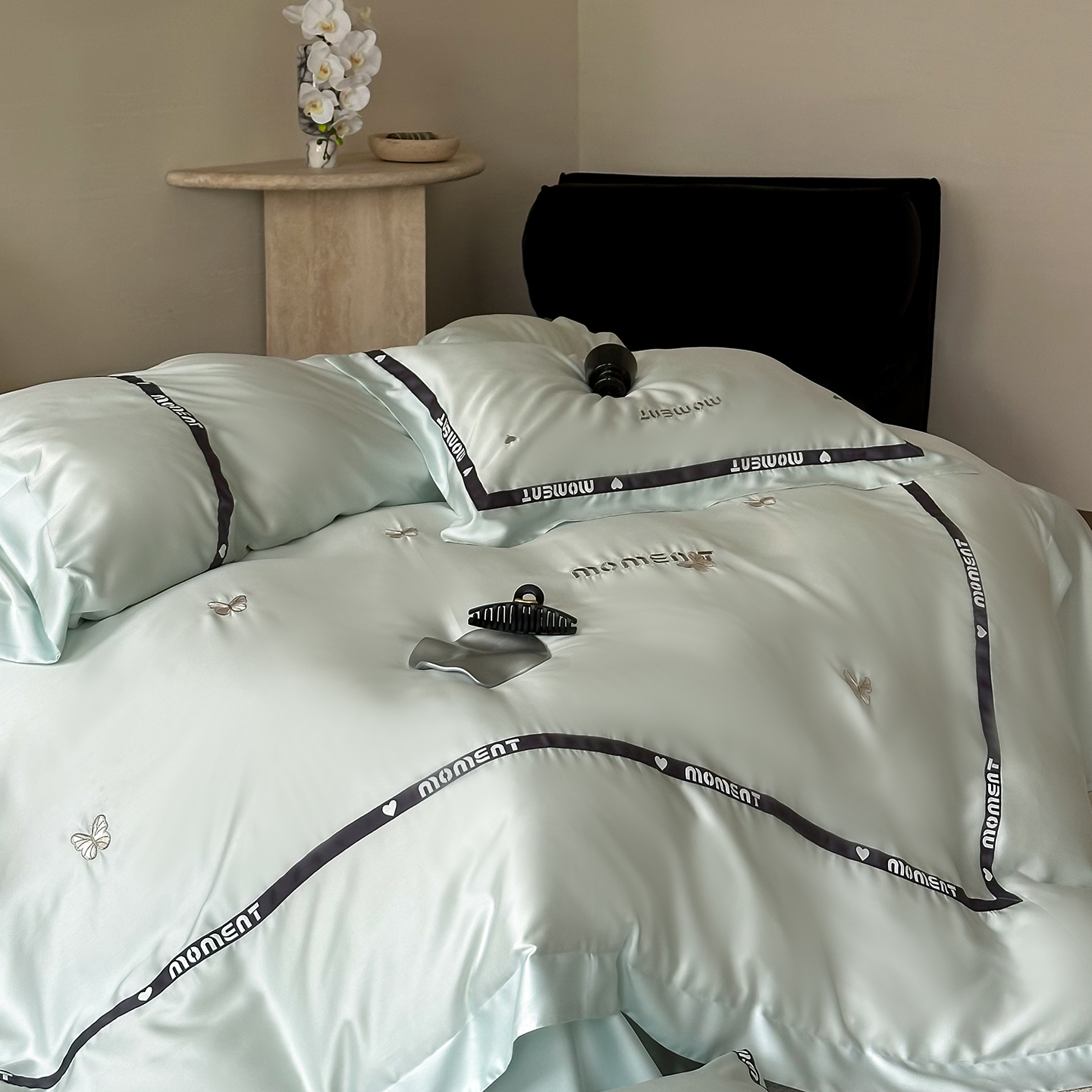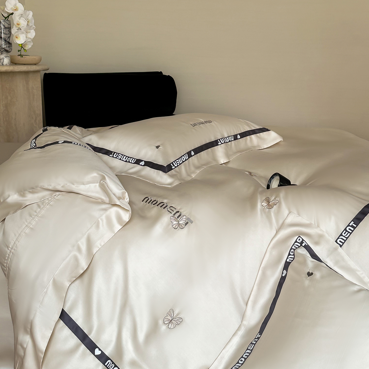 60S奥地利进口兰精天丝绣花黑边四件套