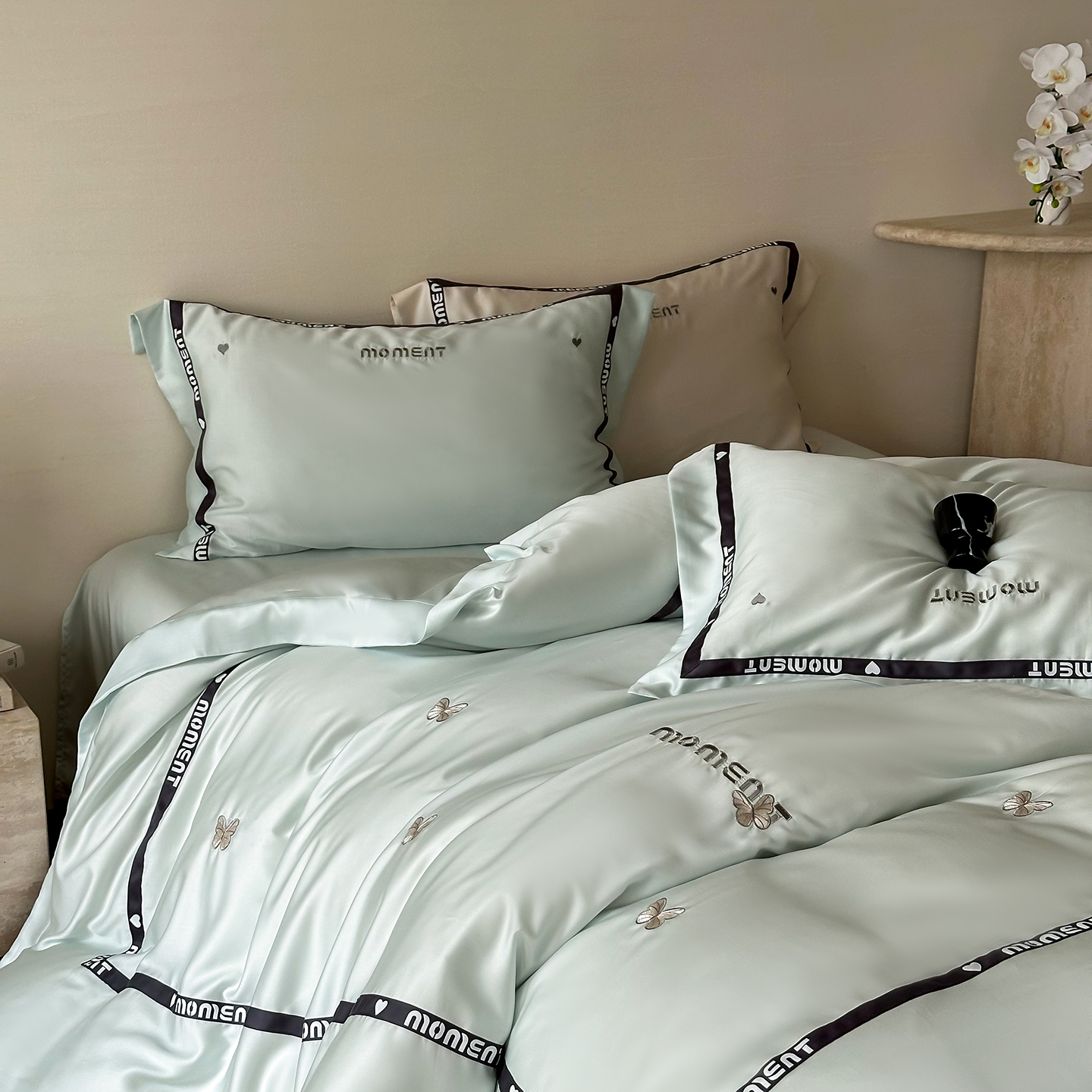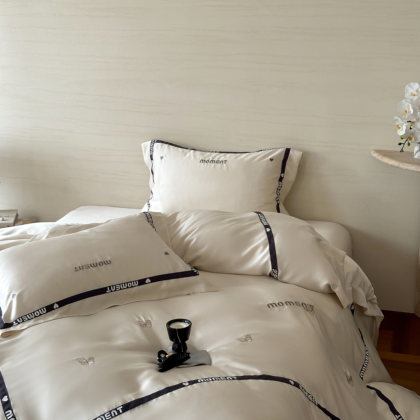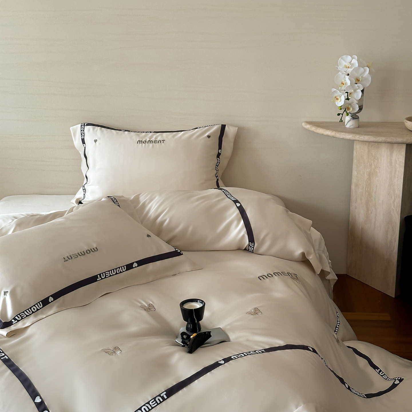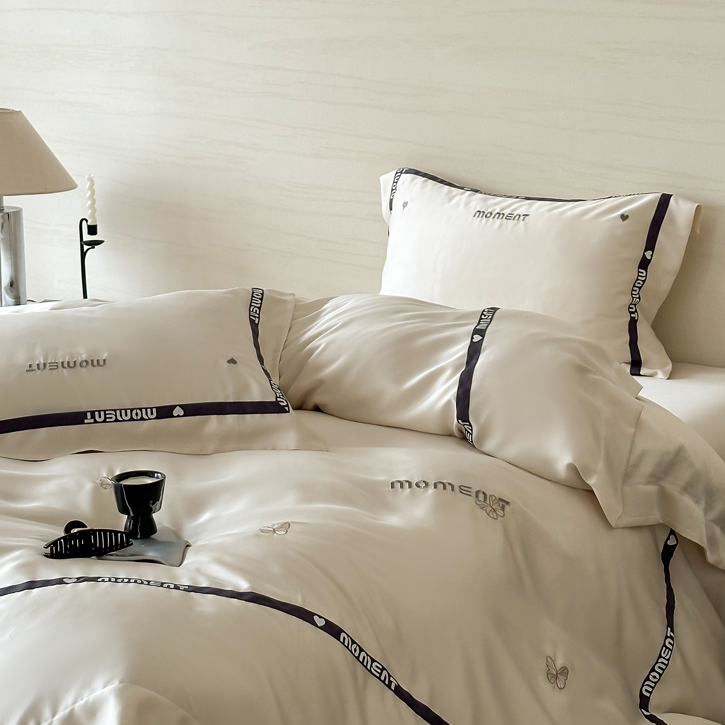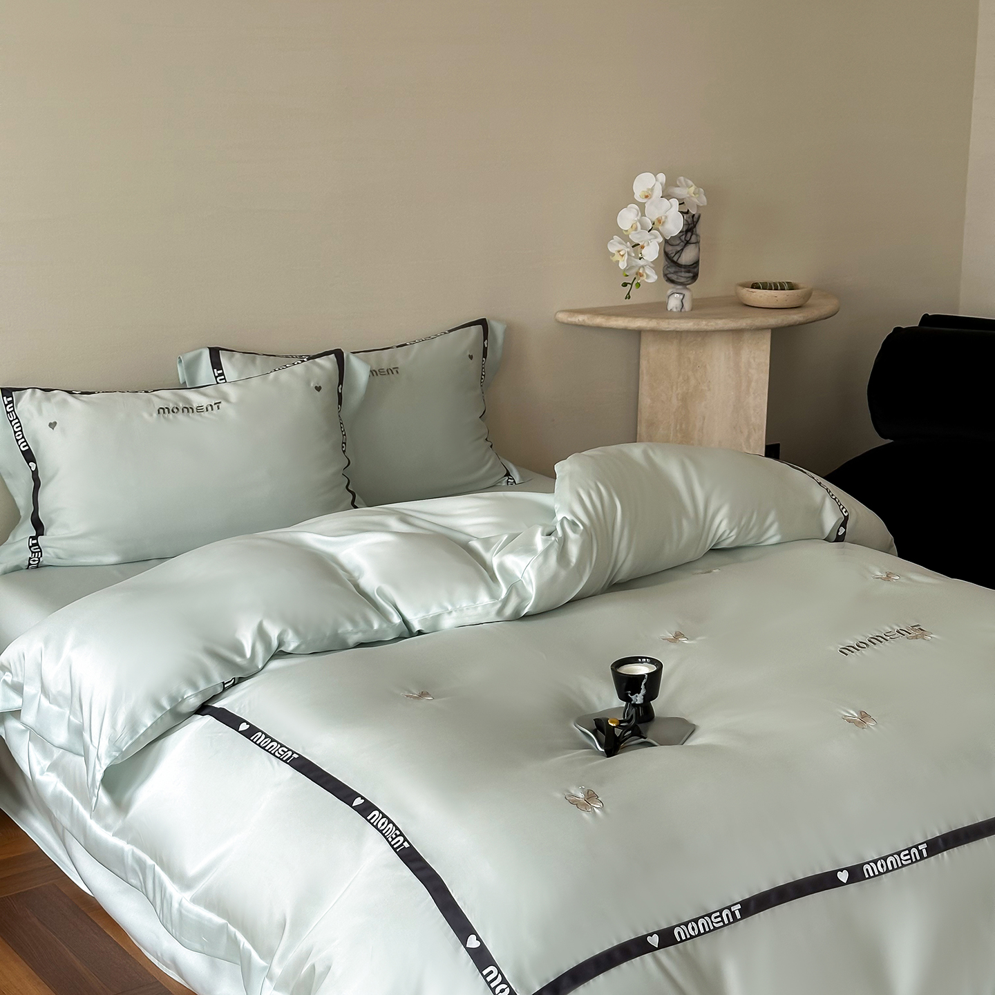 60S奥地利进口兰精天丝绣花黑边四件套