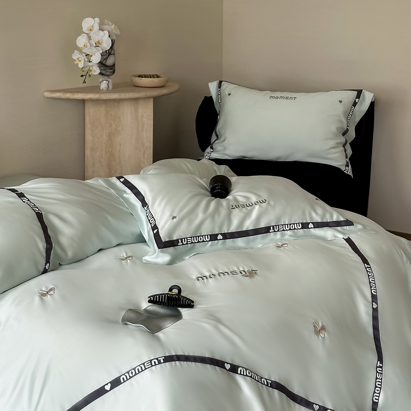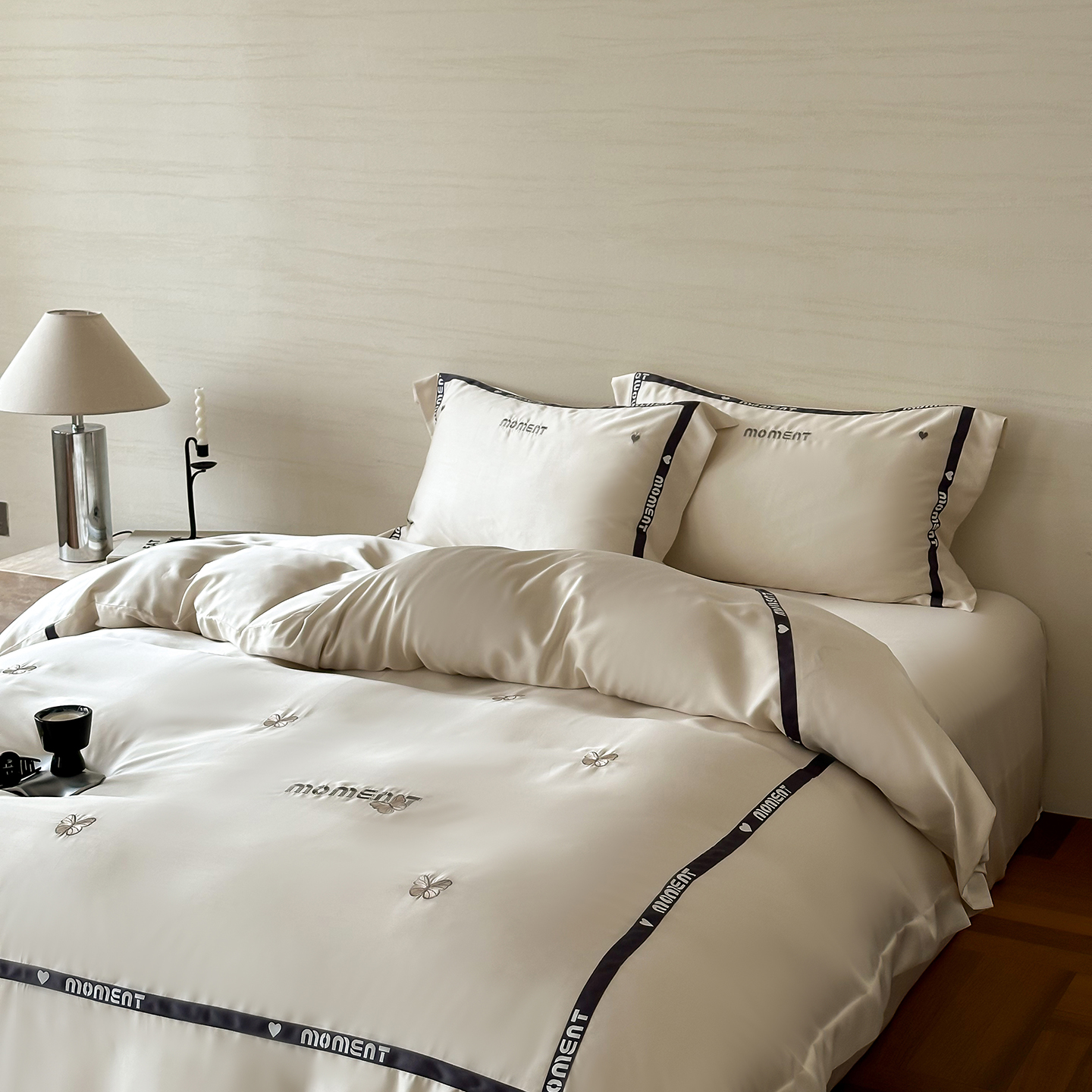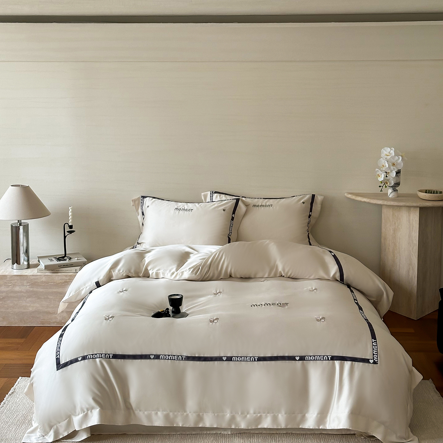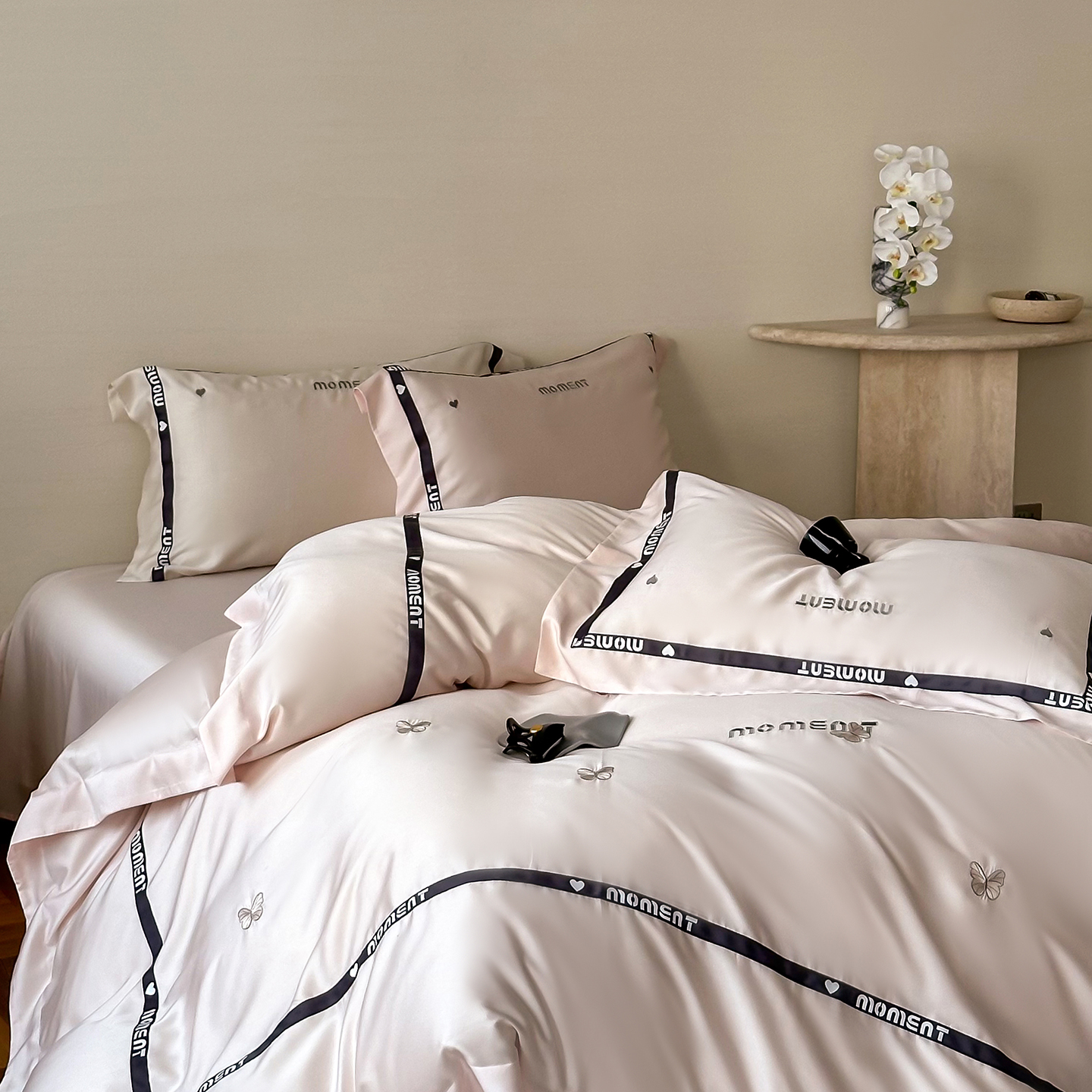60S奥地利进口兰精天丝绣花黑边四件套