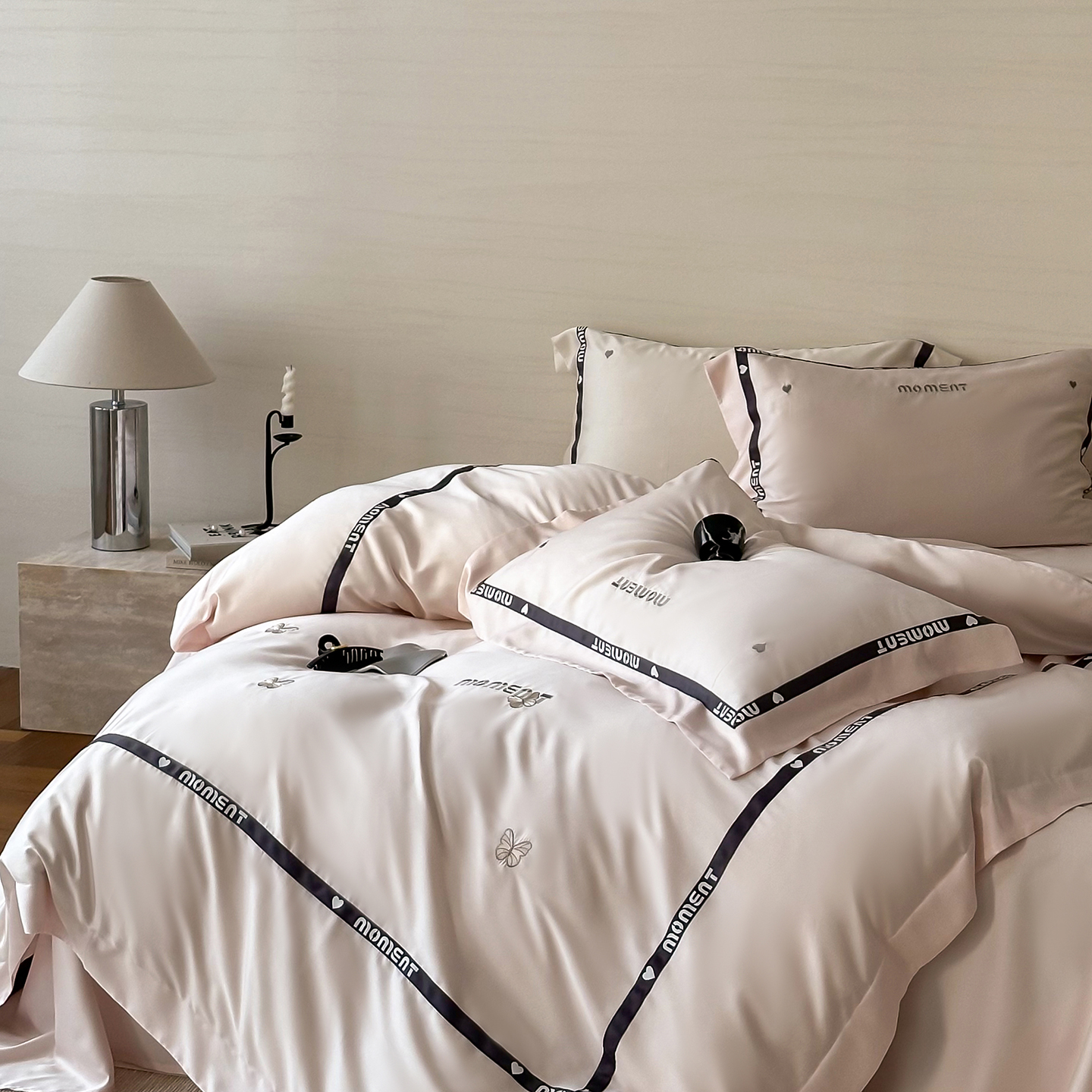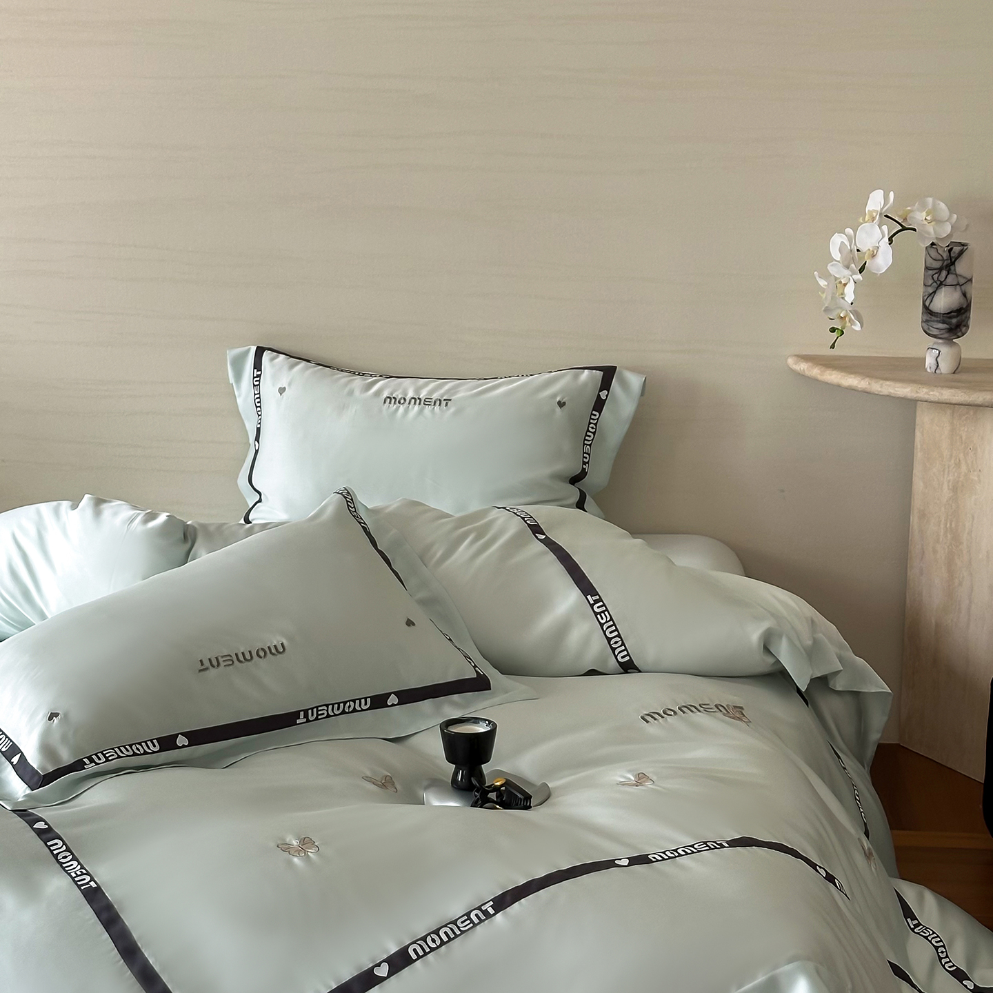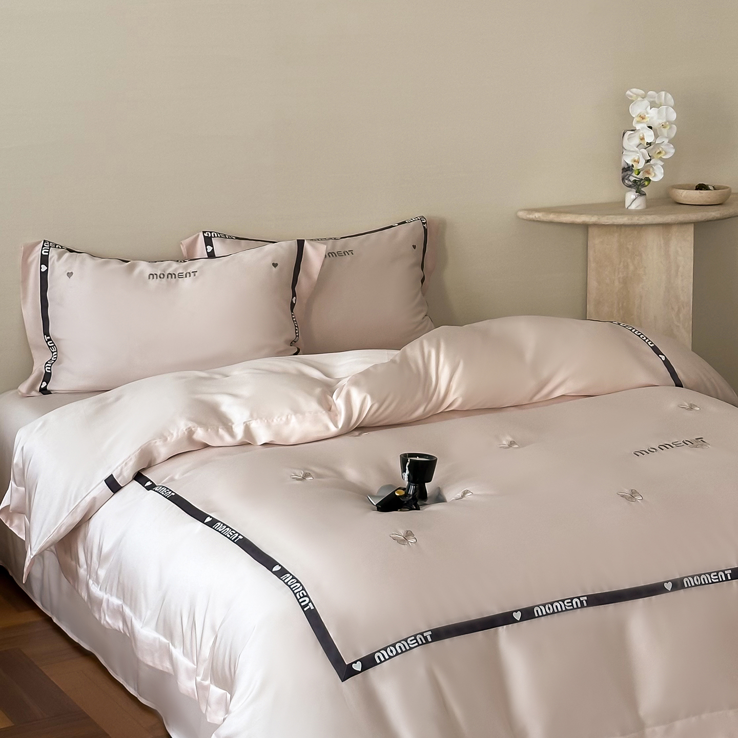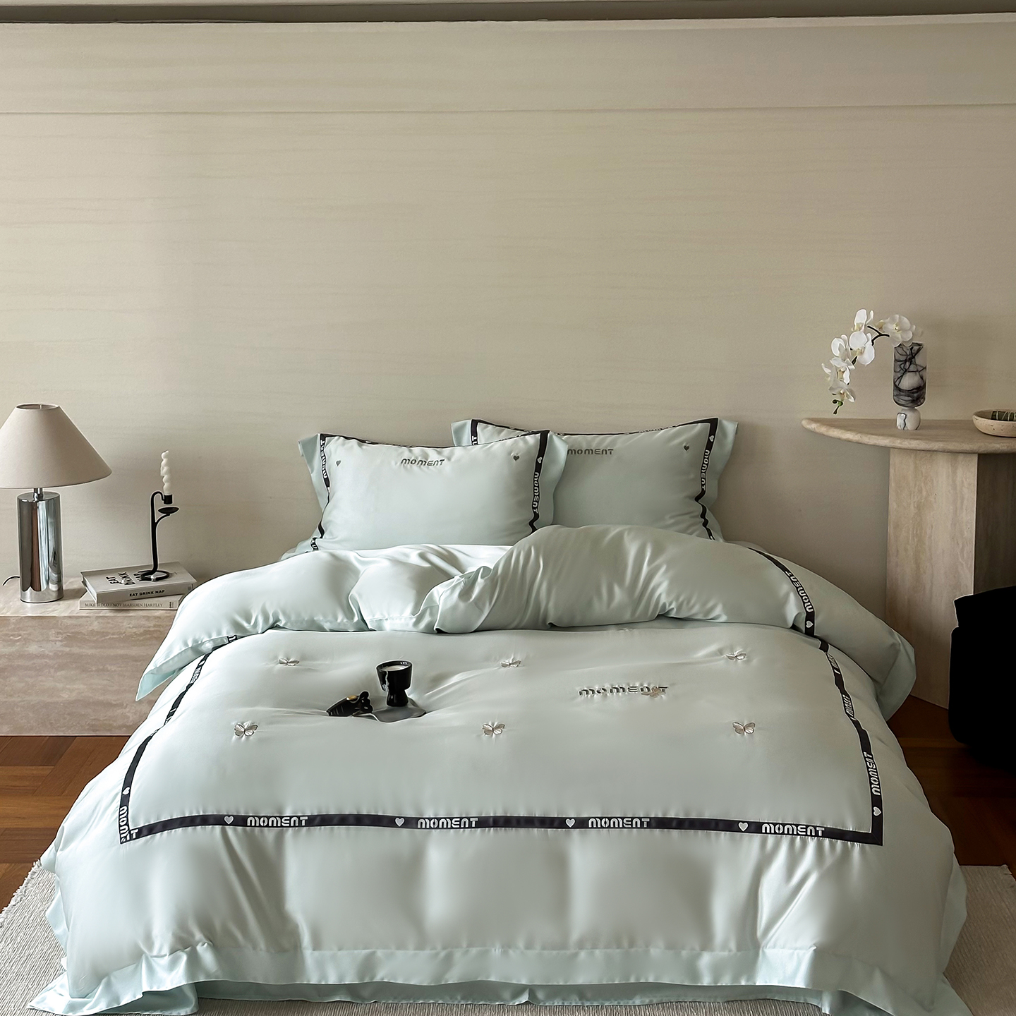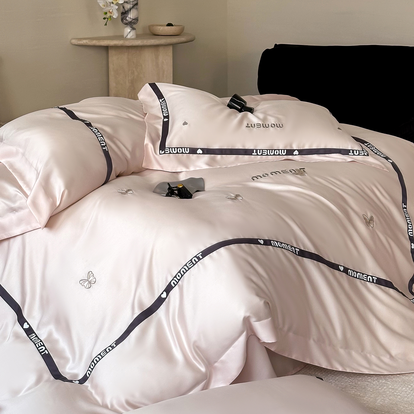 60S奥地利进口兰精天丝绣花黑边四件套